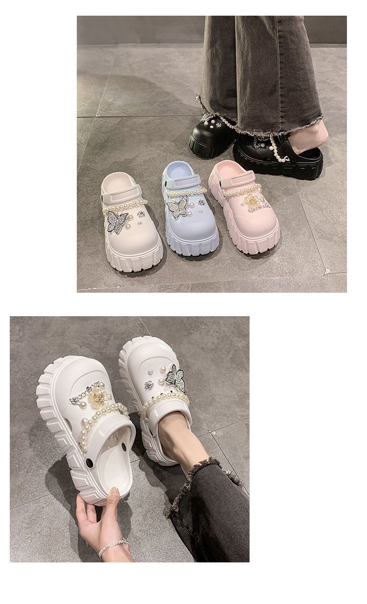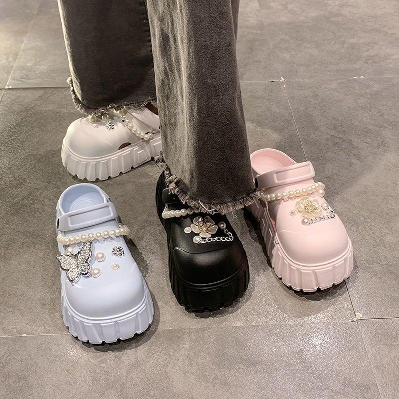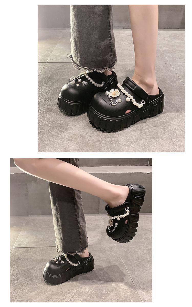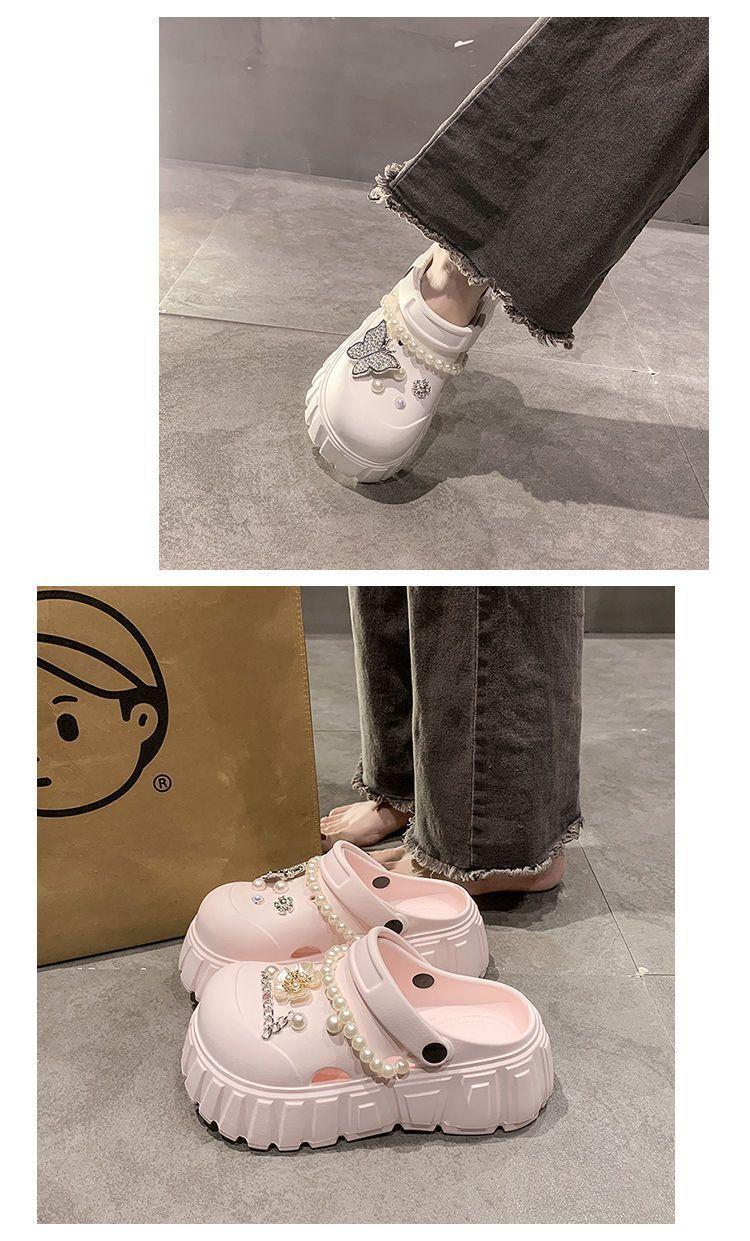 Sandalias de Suela Gruesa, Antideslizantes, Zuecos de Plataforma Alta, Ropa Exterior de Verano Nueva 2025, Medias Pantuflas de Playa Baotou para Mujer
