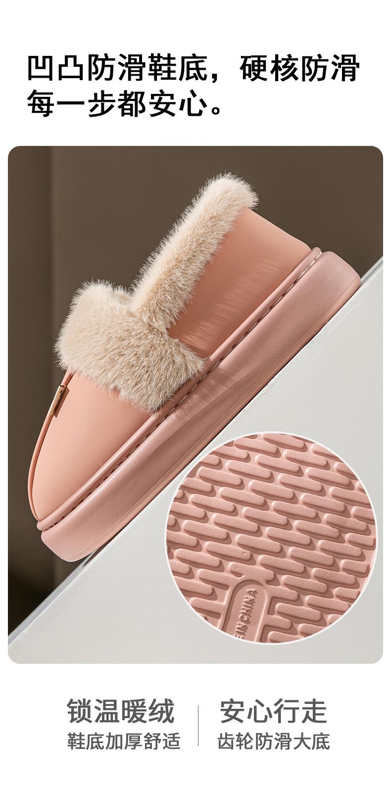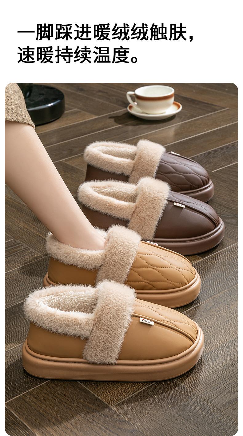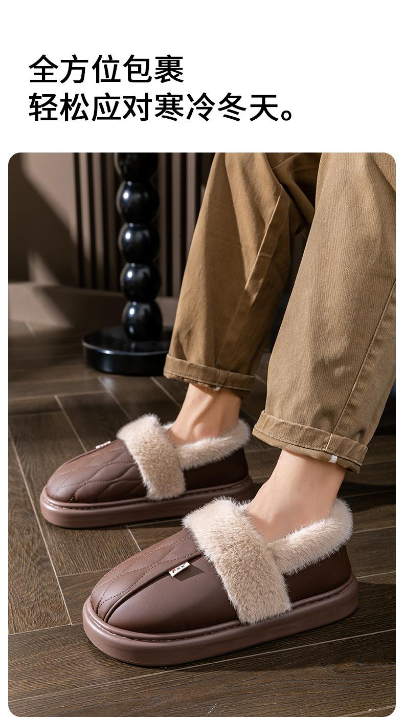 Pantuflas de algodón impermeables para hombre invierno 2025 nuevo estilo para interior hogar antideslizantes suela gruesa más terciopelo cálidas para pareja con tacón pantuflas de algodón