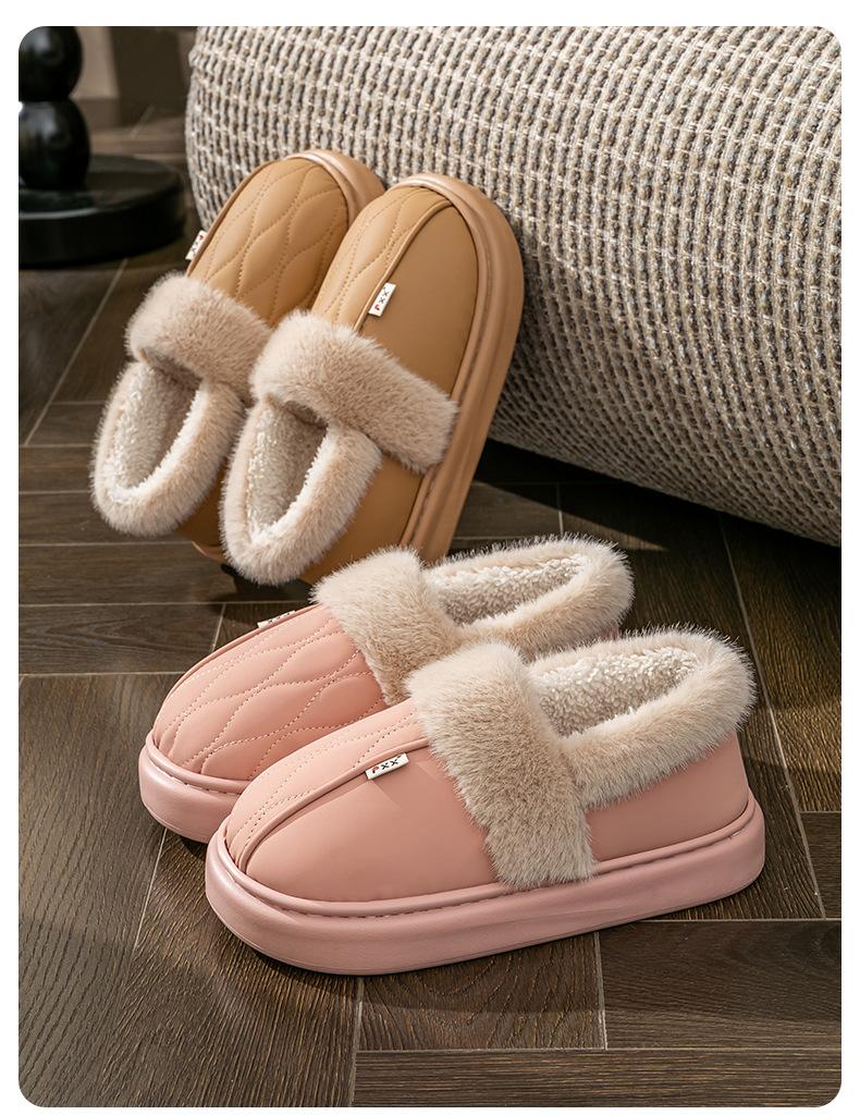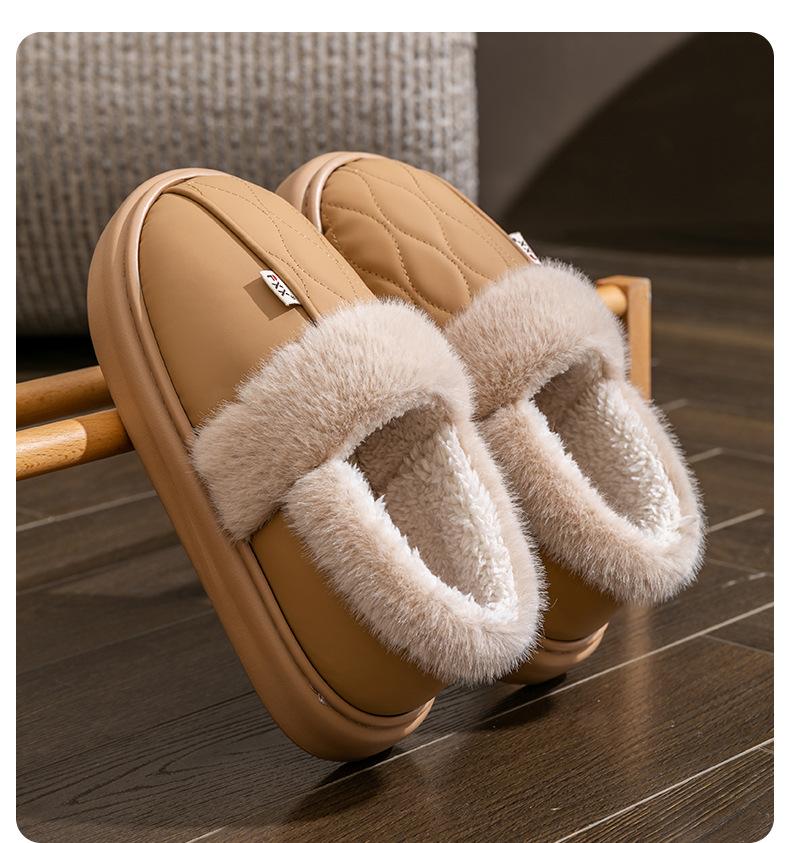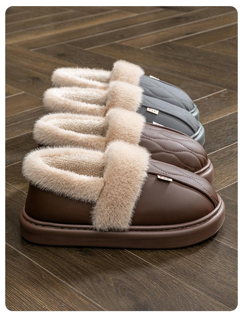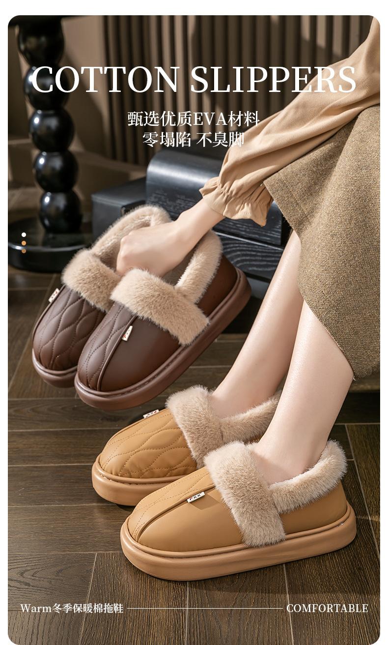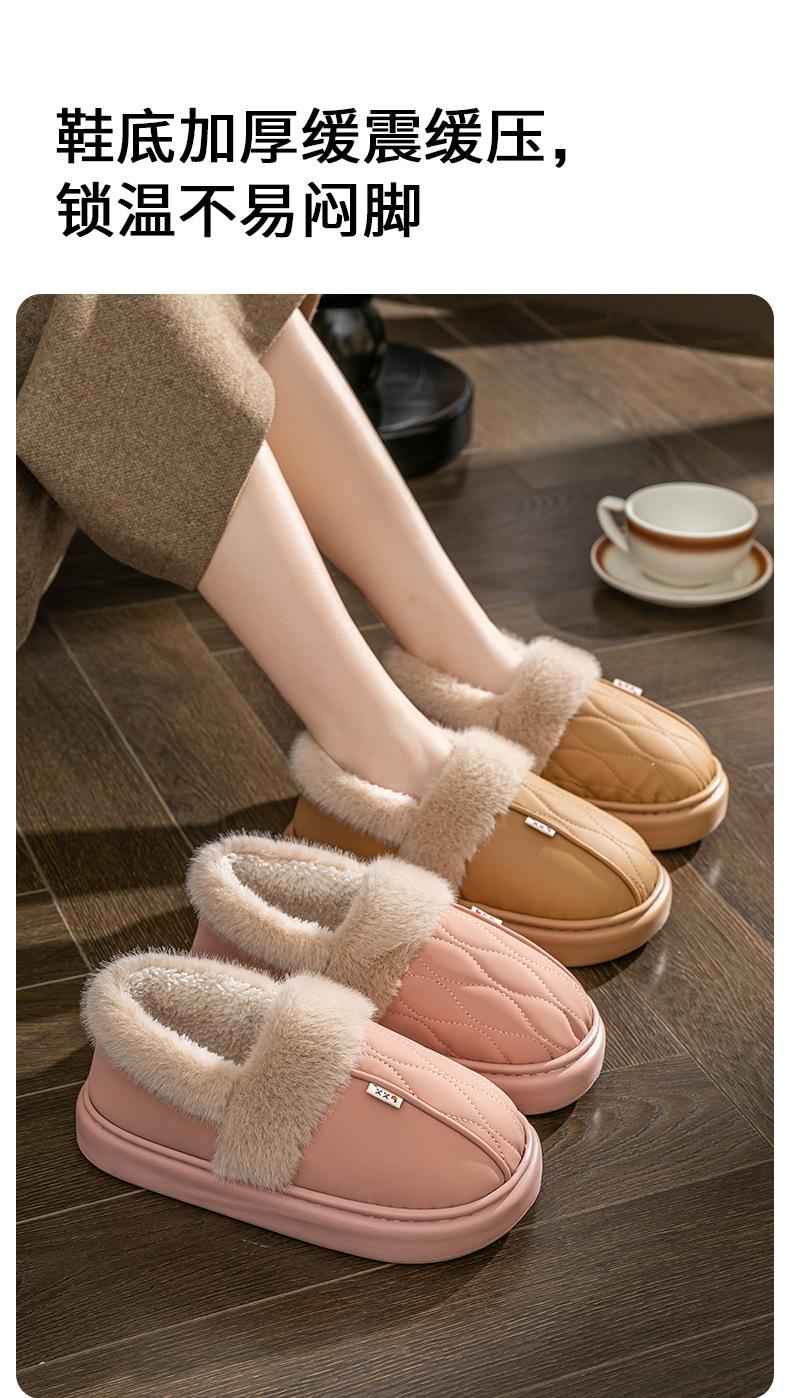 Pantuflas de algodón impermeables para hombre invierno 2025 nuevo estilo para interior hogar antideslizantes suela gruesa más terciopelo cálidas para pareja con tacón pantuflas de algodón
