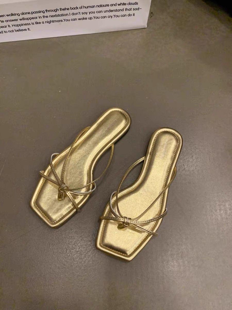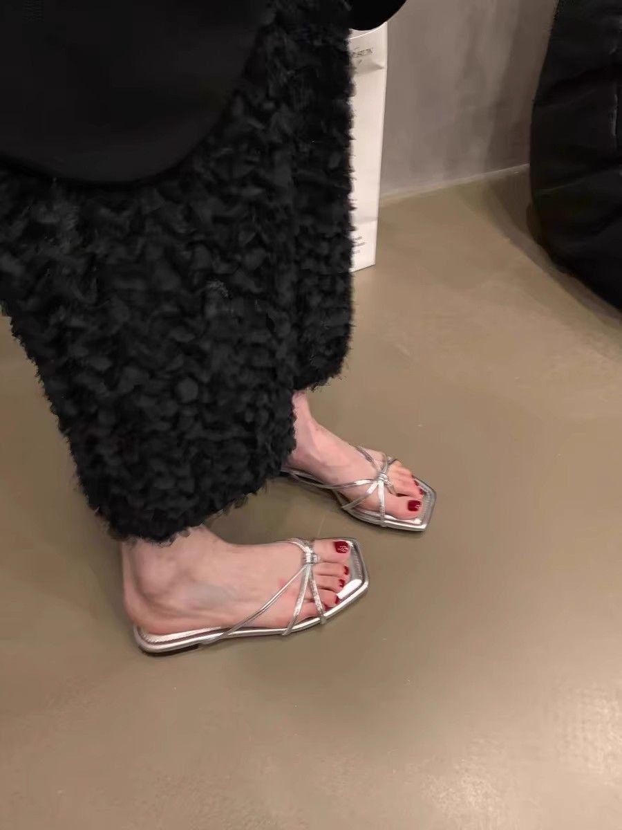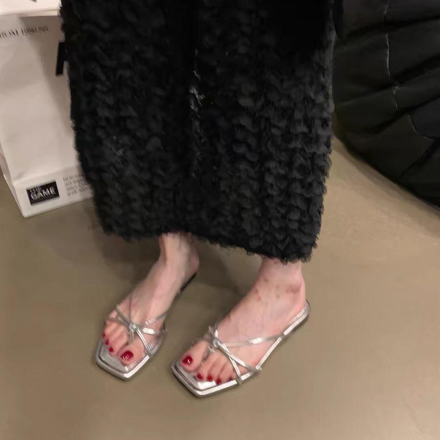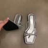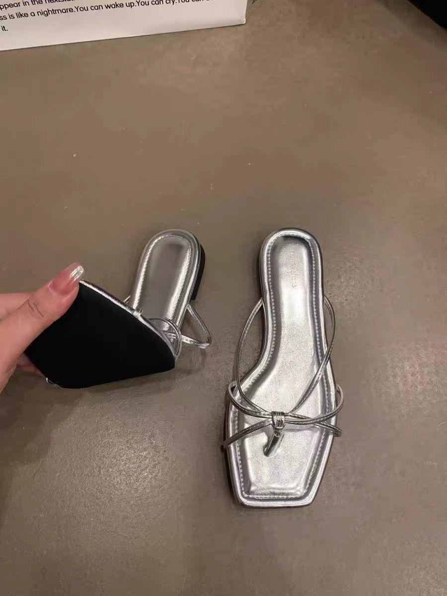 2025 Nuevas Chanclas Francesas de Dedo Plano Zapatos de Hada para Mujer Verano Playa Uso Exterior Pantuflas Frescas Sandalias Plateadas