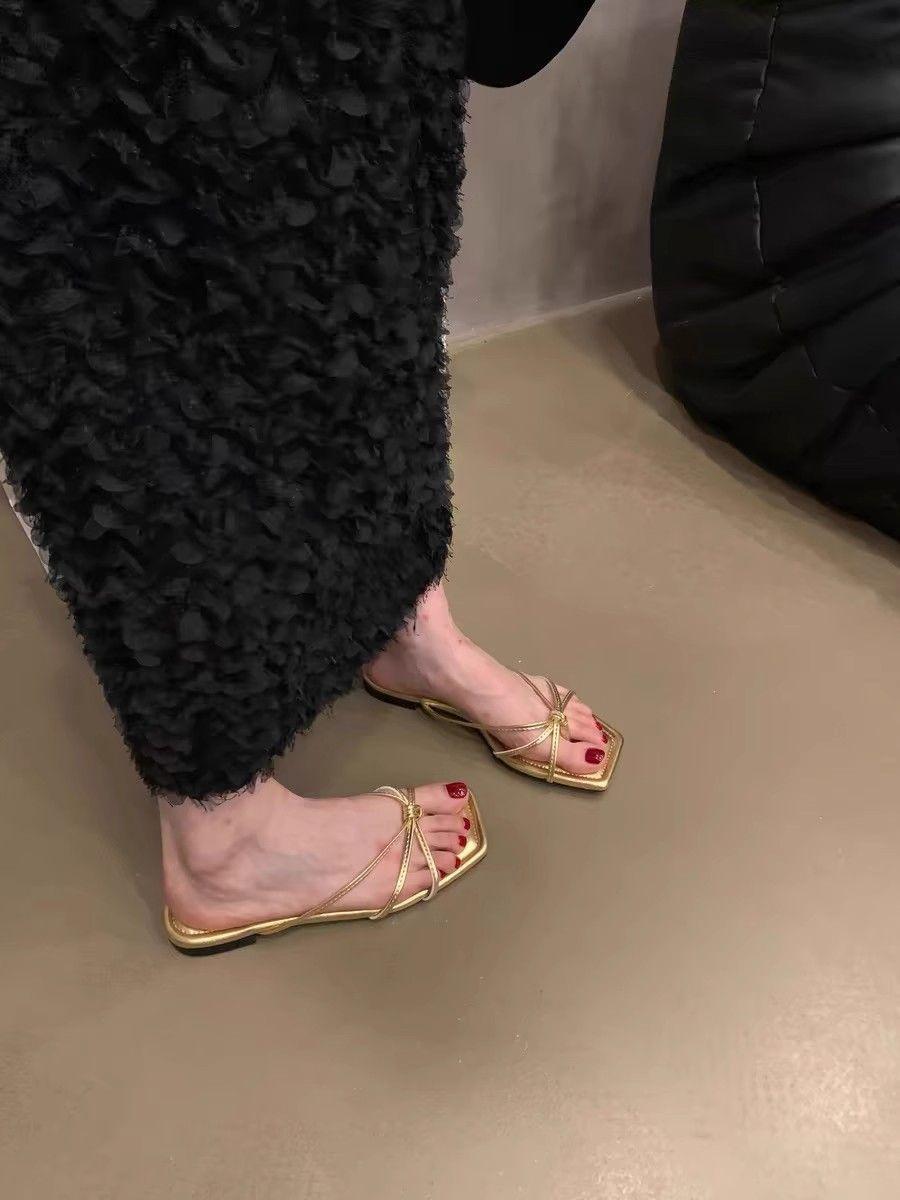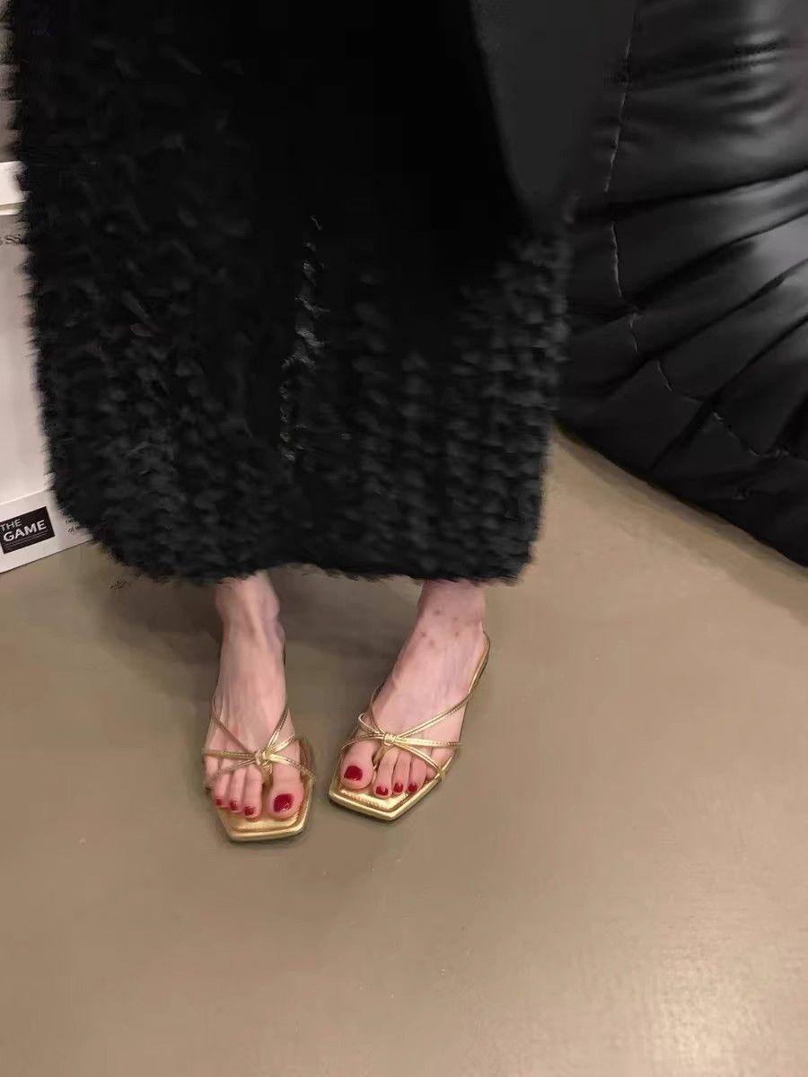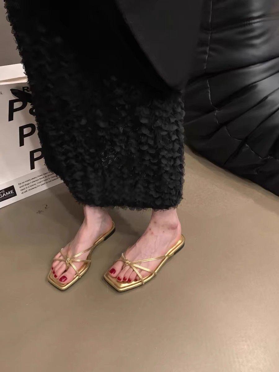 2025 Nuevas Chanclas Francesas de Dedo Plano Zapatos de Hada para Mujer Verano Playa Uso Exterior Pantuflas Frescas Sandalias Plateadas