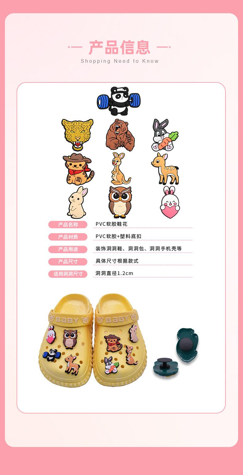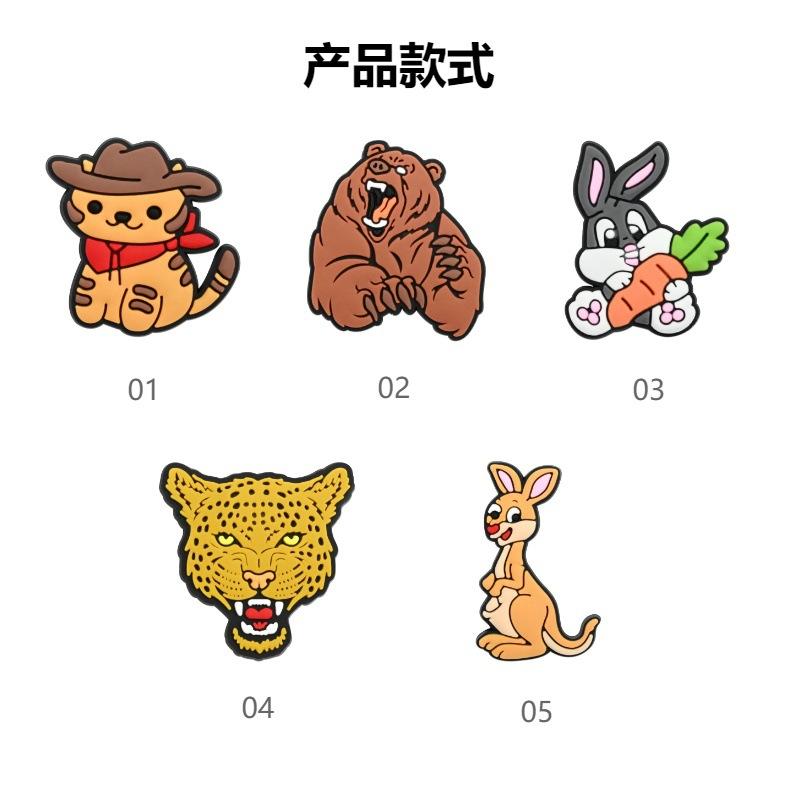 Charms para Zuecos de Animales al Mayoreo Dibujos Animados Desmontables Decoración para Empeine Hebilla PVC Goma Suave Accesorios para Zuecos Transfronterizos