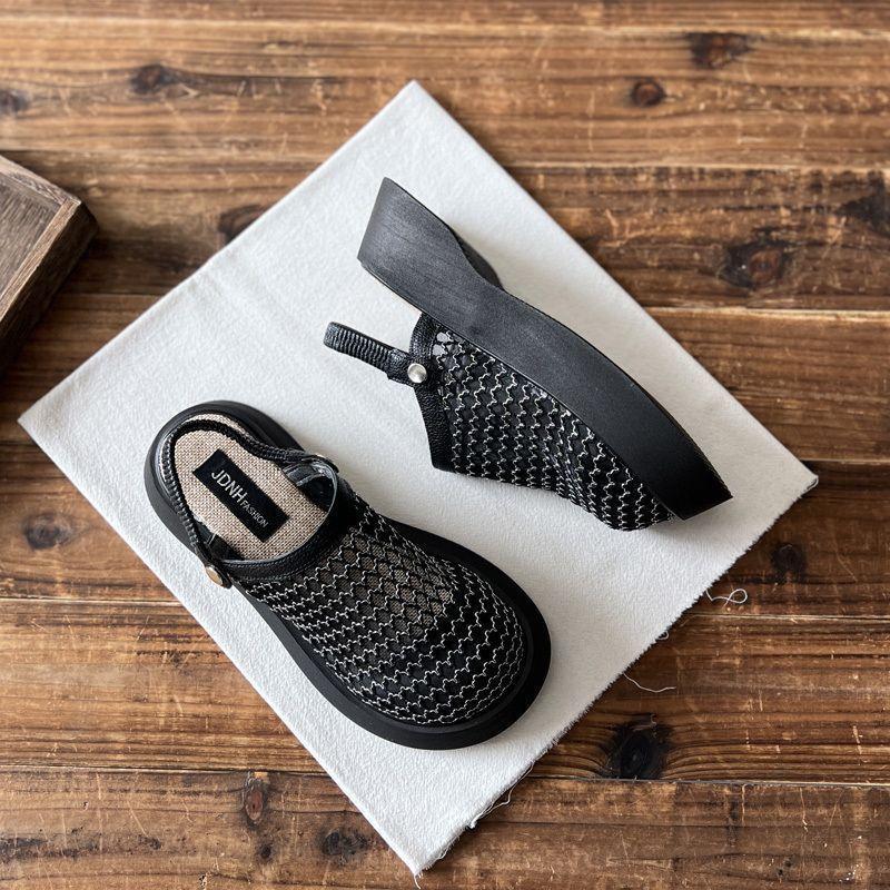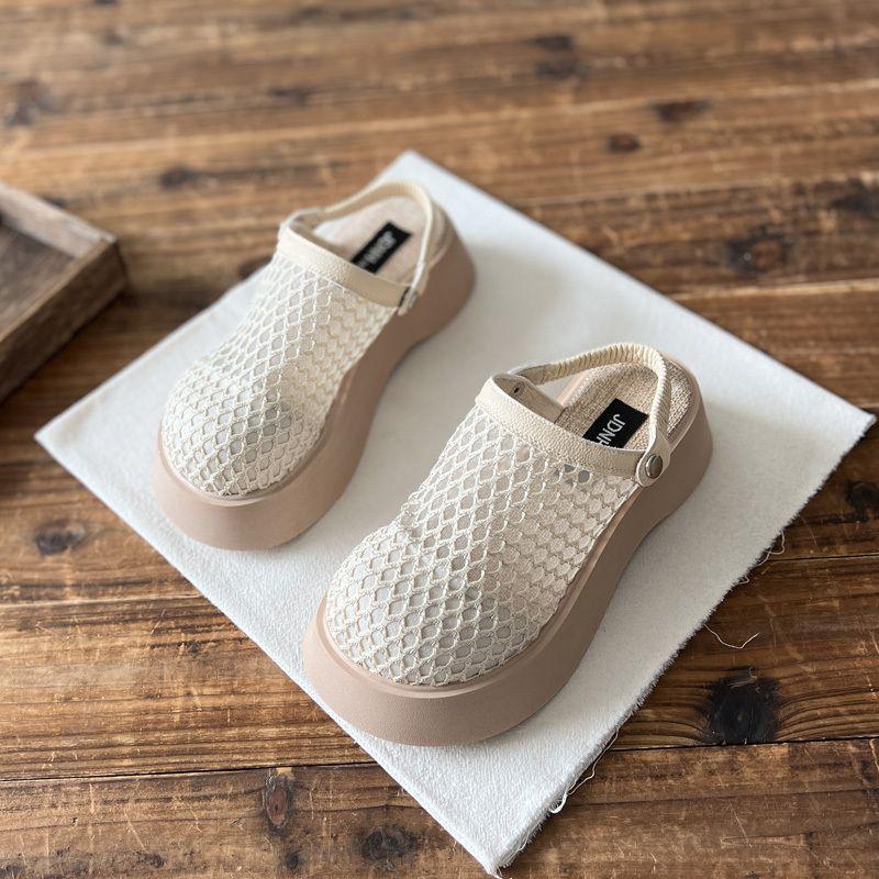 Pantuflas usar verano malla un zapato suela gruesa sandalias mujeres casual super suave perezosas medias pantuflas aumento de altura ligero dos transpirables