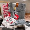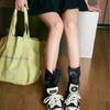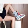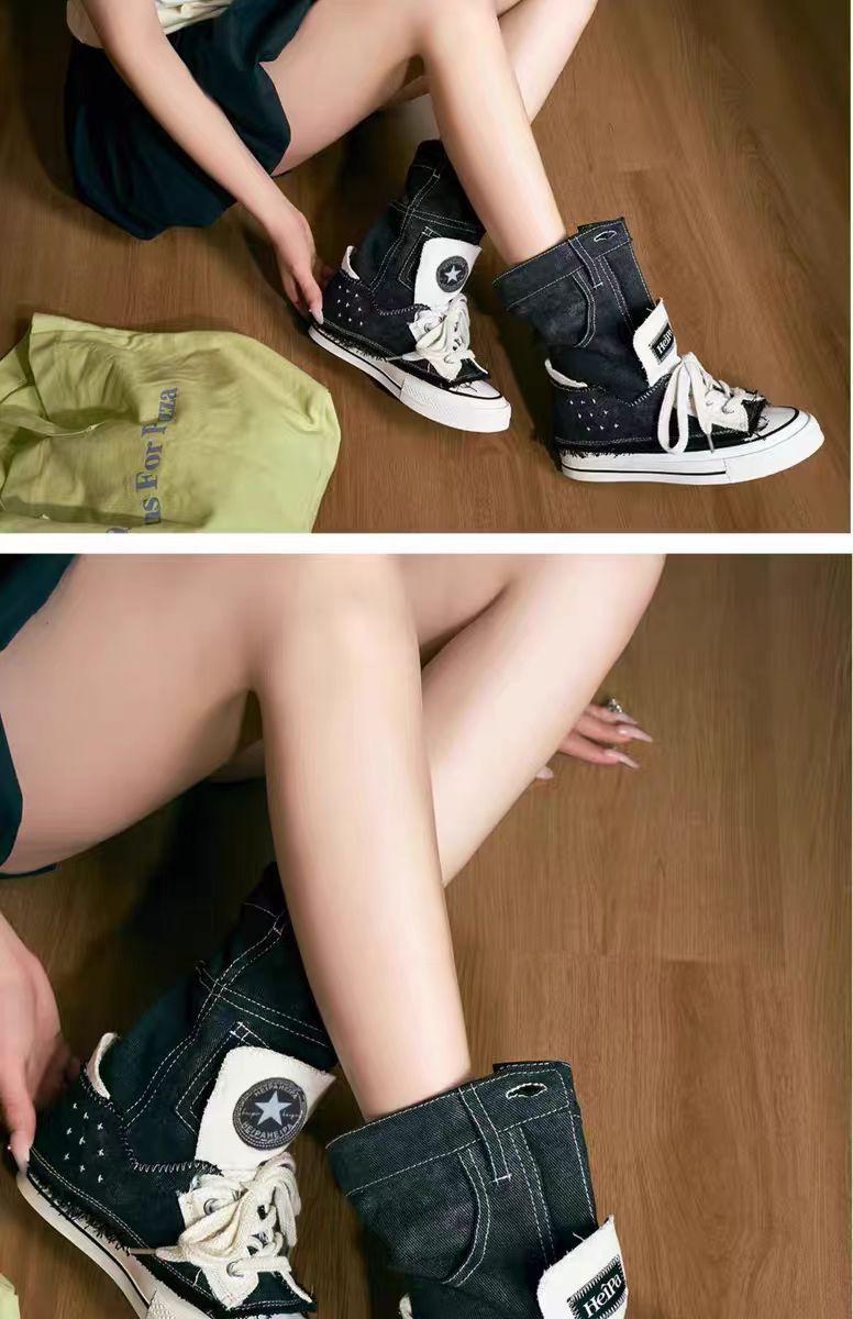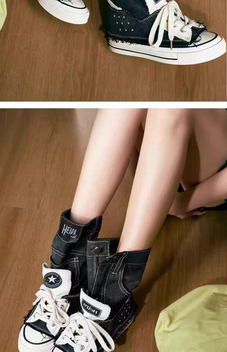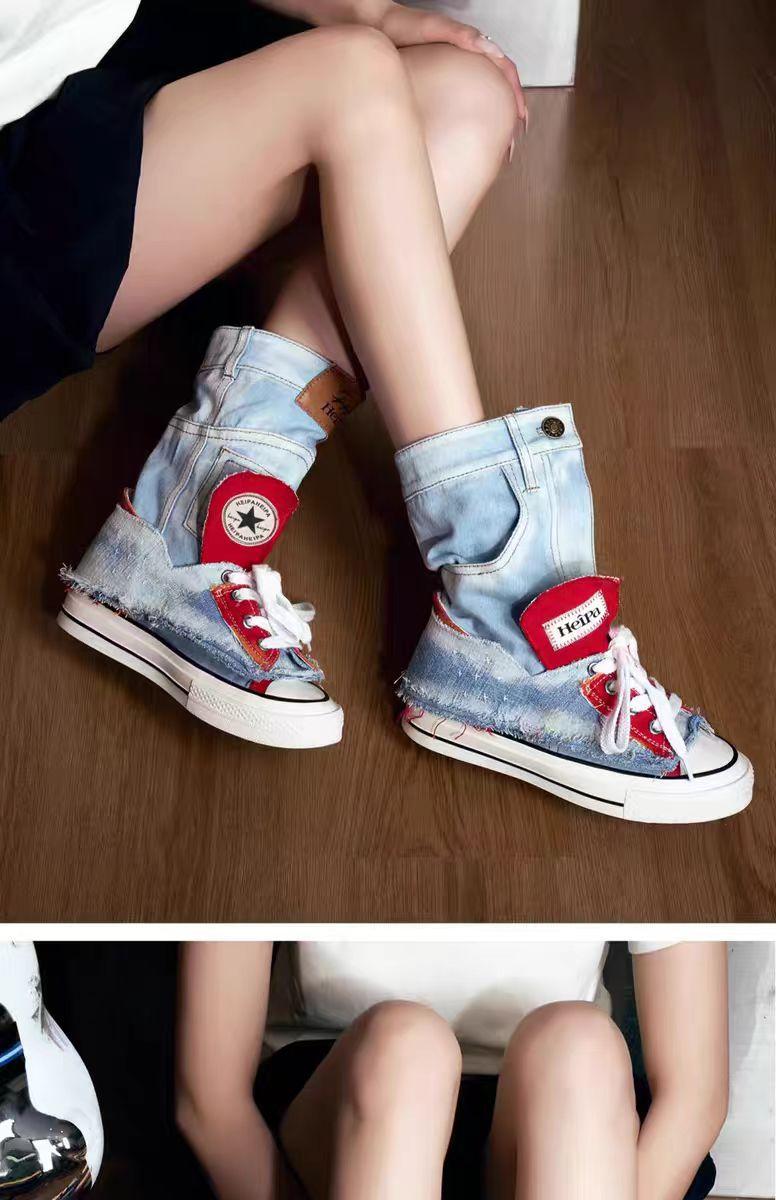 2025 Nuevo Estilo Pato Mandarín Bloque de Color AB Denim Lavado Botas de Media Caña con Cordones Botas Altas Botas Largas Botas Martin Zapatos de Mujer