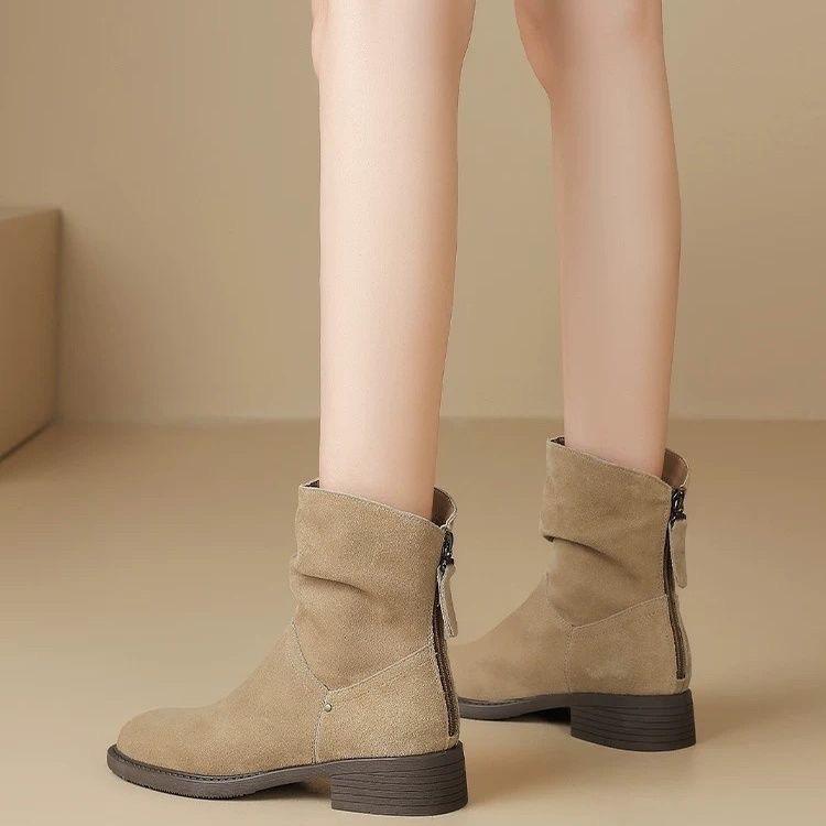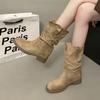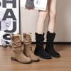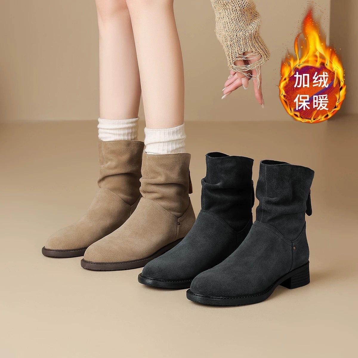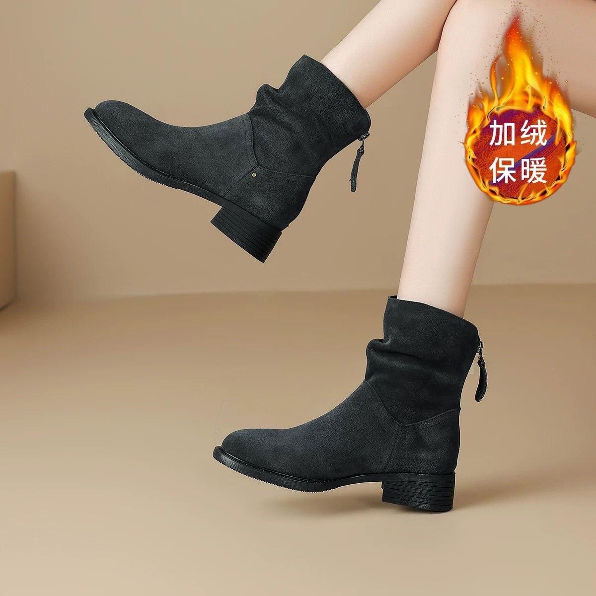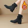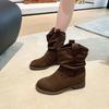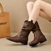 Botas de Pila Mujer 2025 Nuevo Estilo Merlot Vaqueras Occidentales Botines al Tobillo Otoño Forradas con Vellón Tacón Grueso Vintage Media Caña Botas Martin