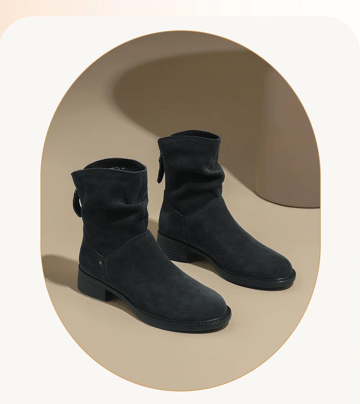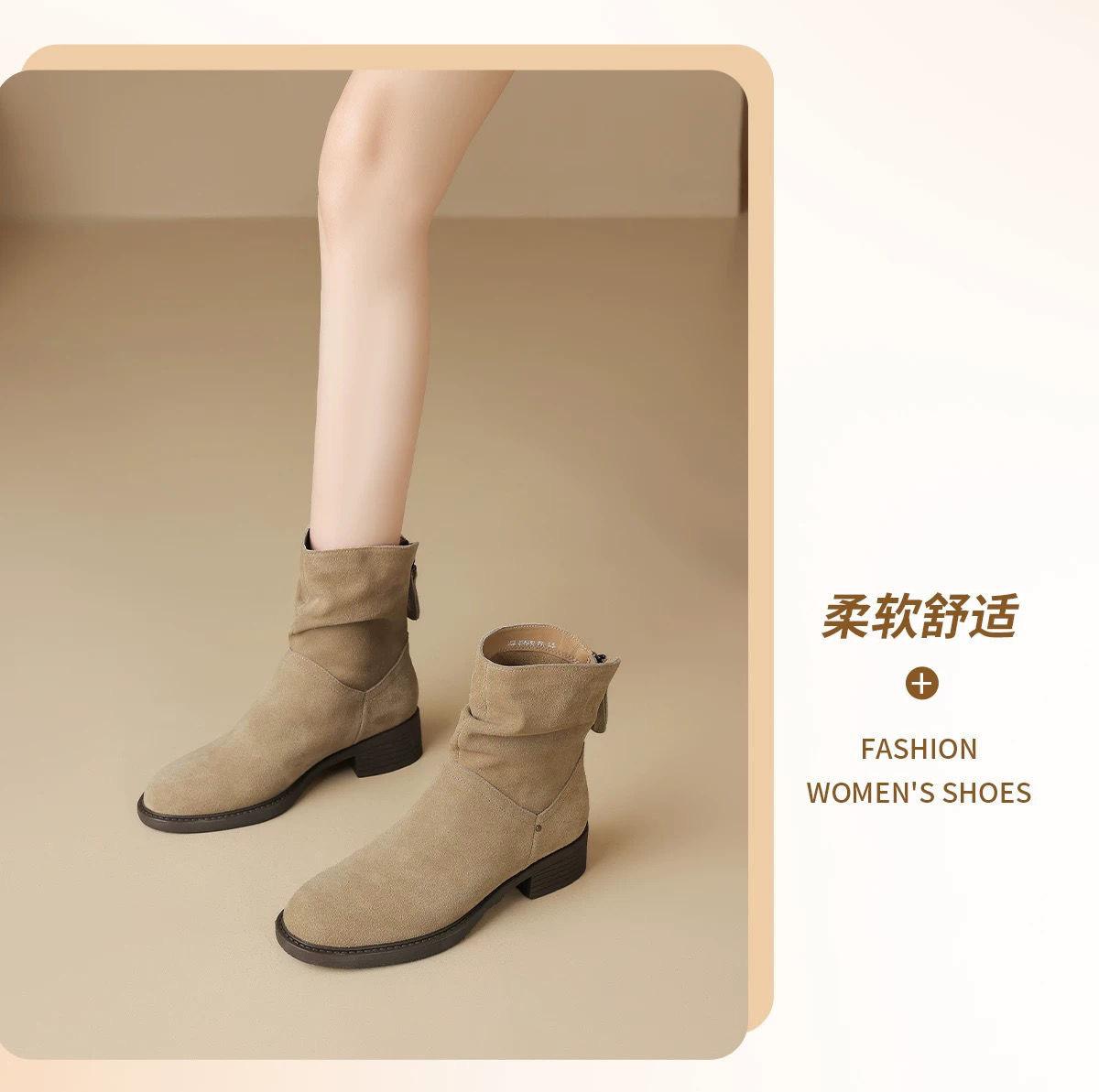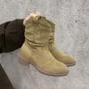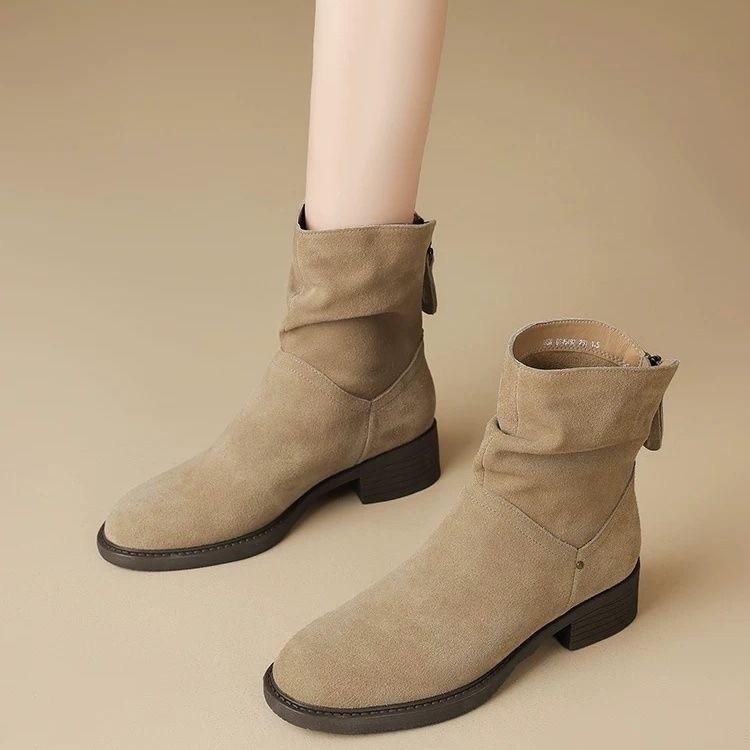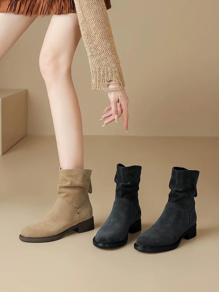 Botas de Pila Mujer 2025 Nuevo Estilo Merlot Vaqueras Occidentales Botines al Tobillo Otoño Forradas con Vellón Tacón Grueso Vintage Media Caña Botas Martin
