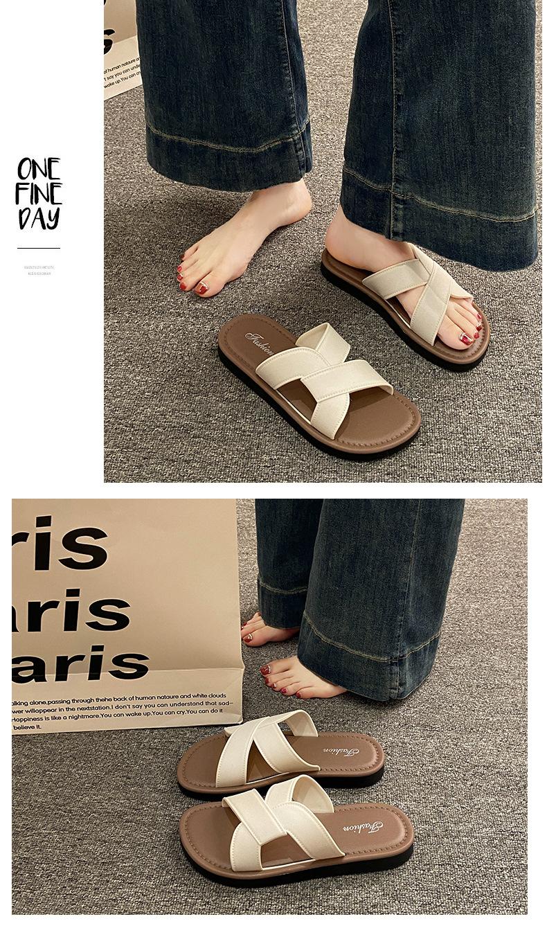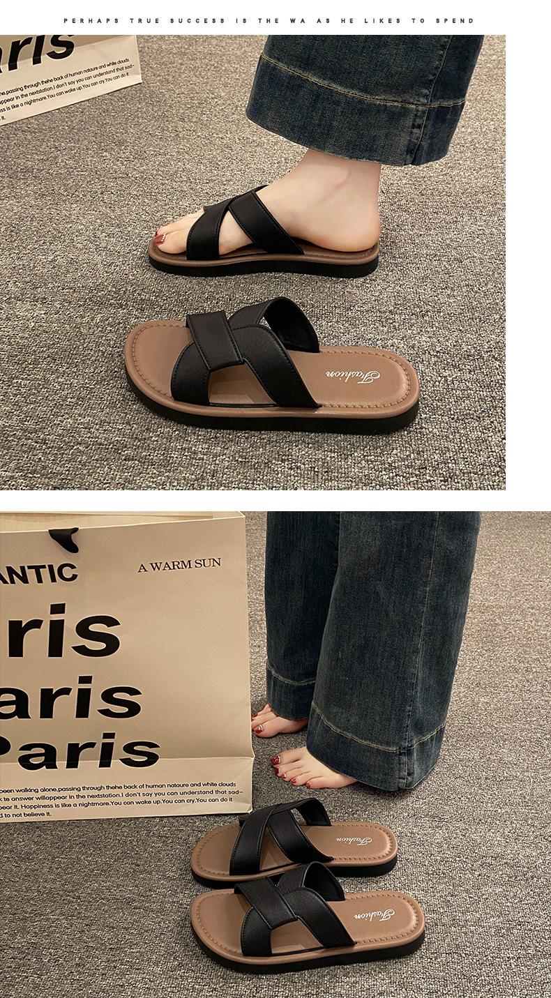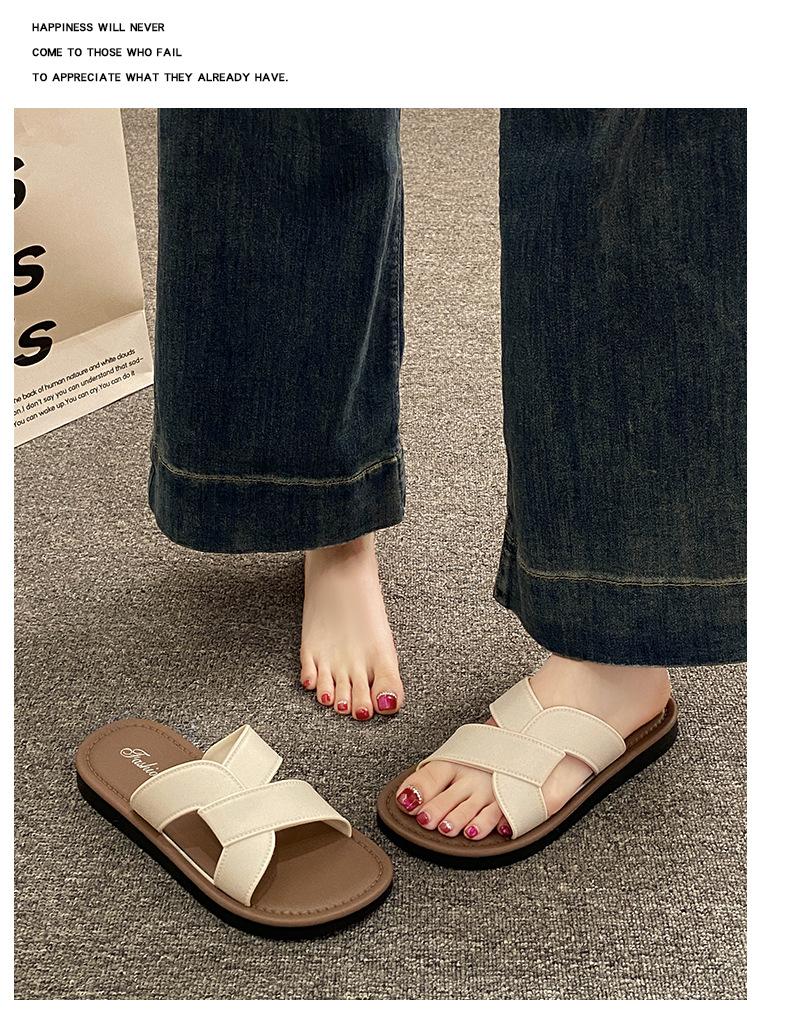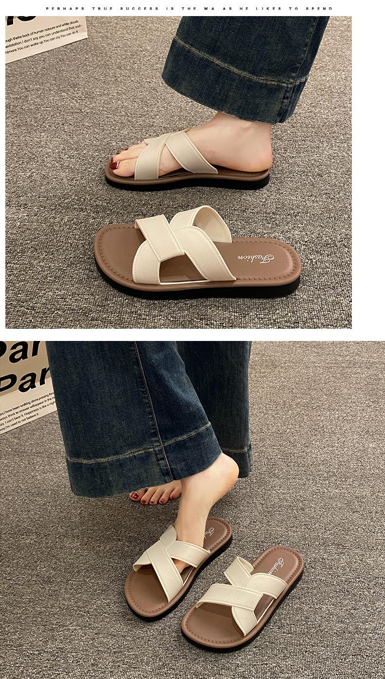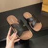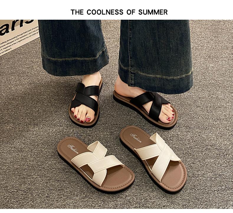 Pantuflas planas casuales de estilo retro francés para mujer, sandalias de playa antideslizantes para mujer, ropa exterior de verano, nuevas pantuflas con correa cruzada