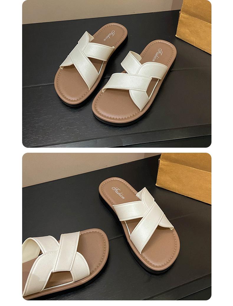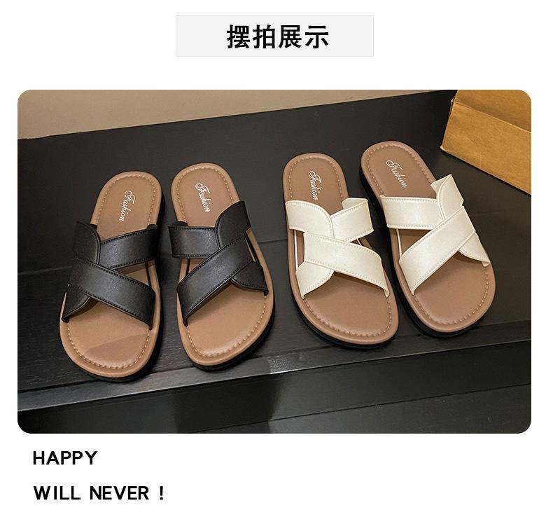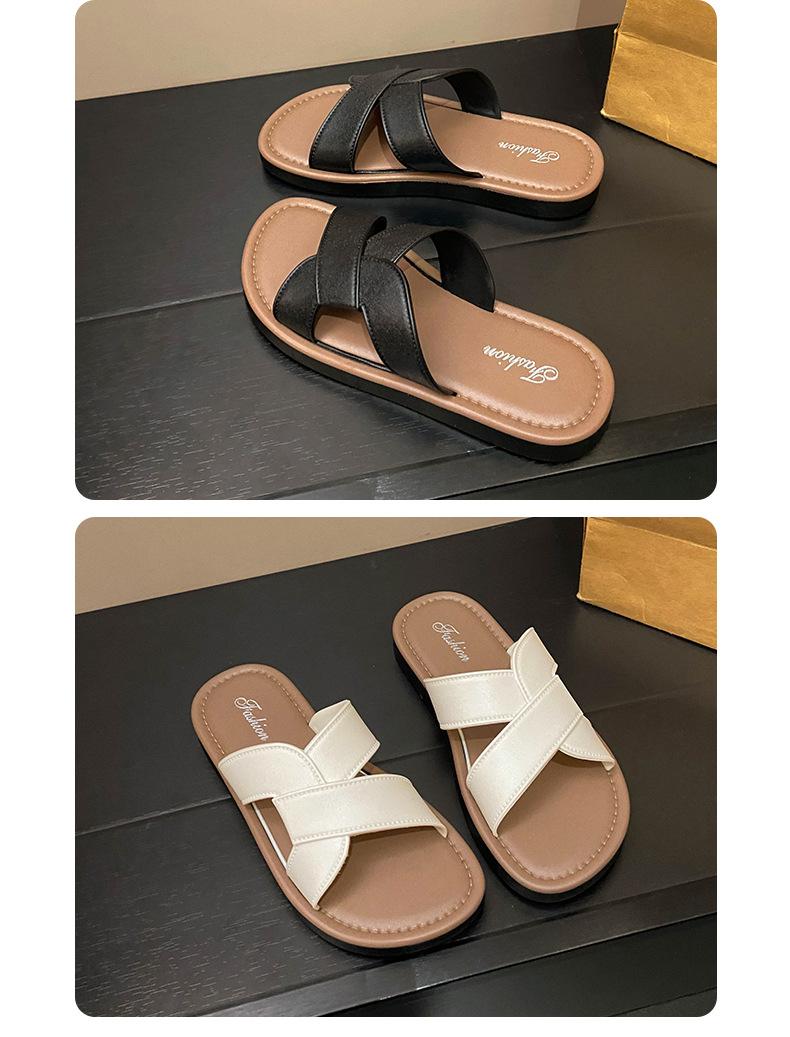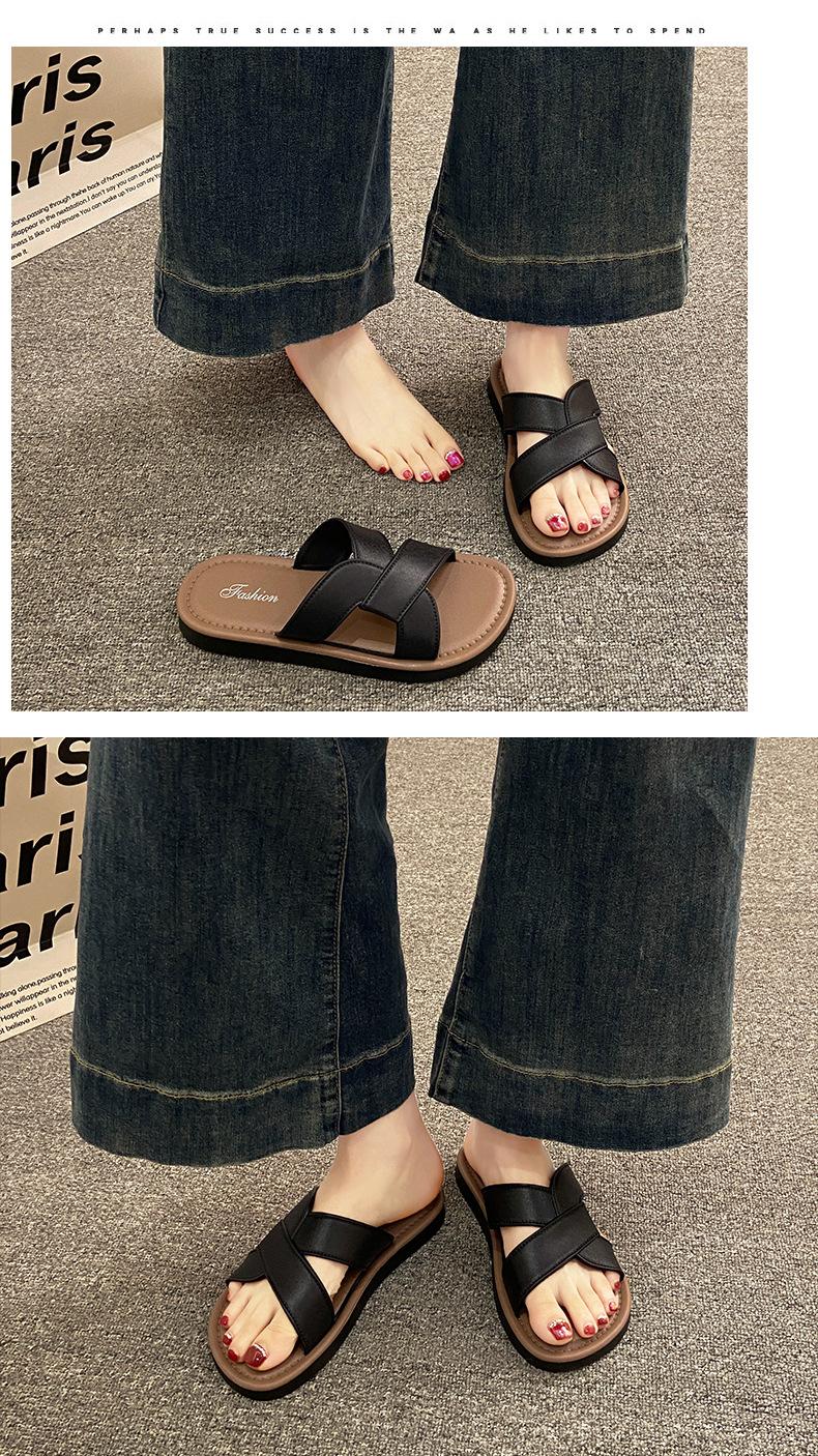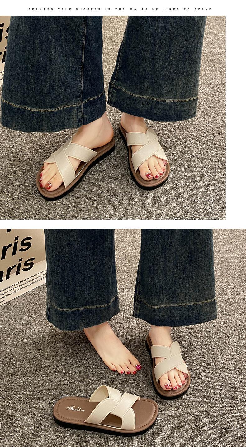 Pantuflas planas casuales de estilo retro francés para mujer, sandalias de playa antideslizantes para mujer, ropa exterior de verano, nuevas pantuflas con correa cruzada