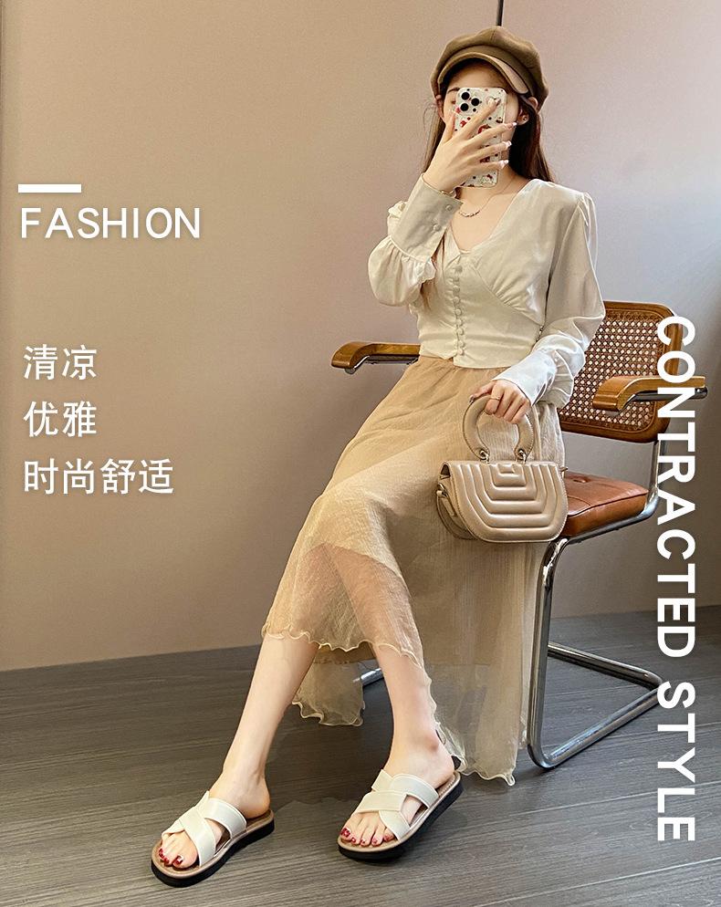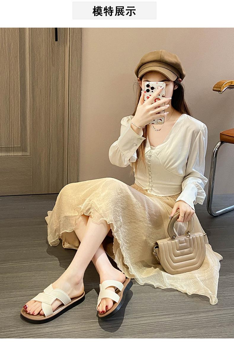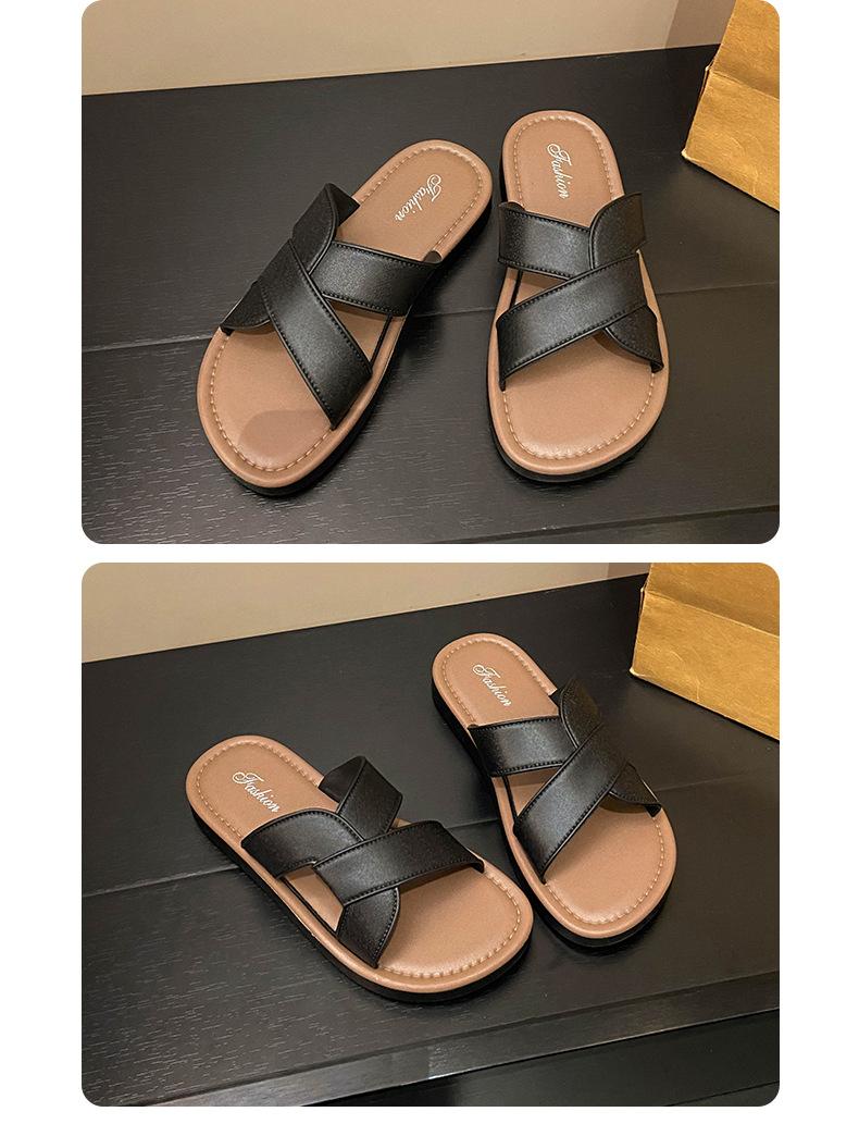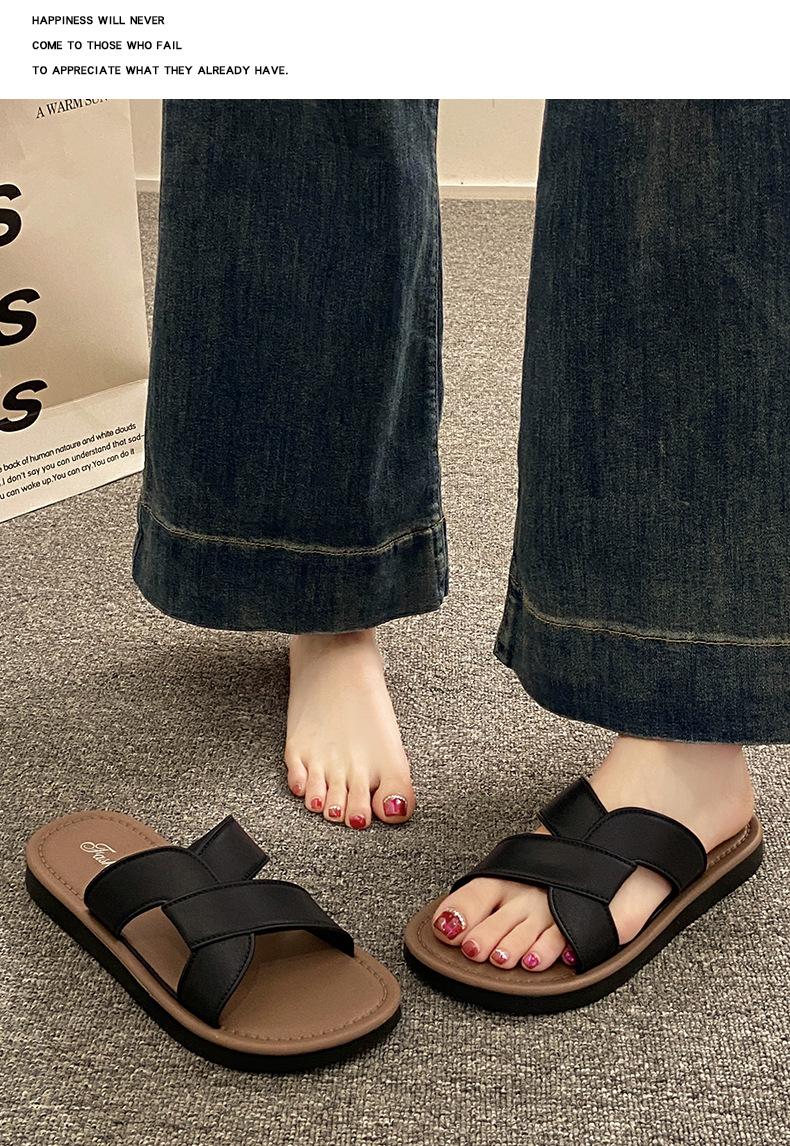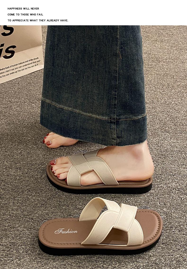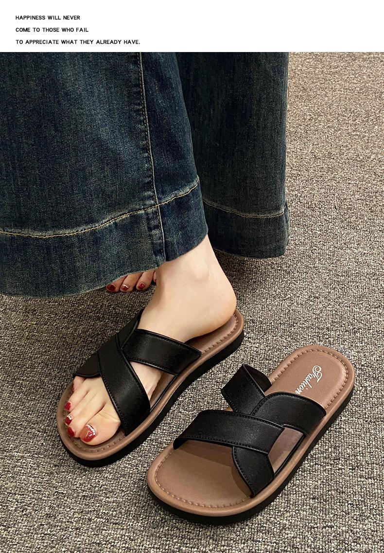 Pantuflas planas casuales de estilo retro francés para mujer, sandalias de playa antideslizantes para mujer, ropa exterior de verano, nuevas pantuflas con correa cruzada