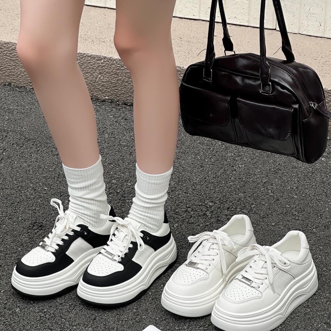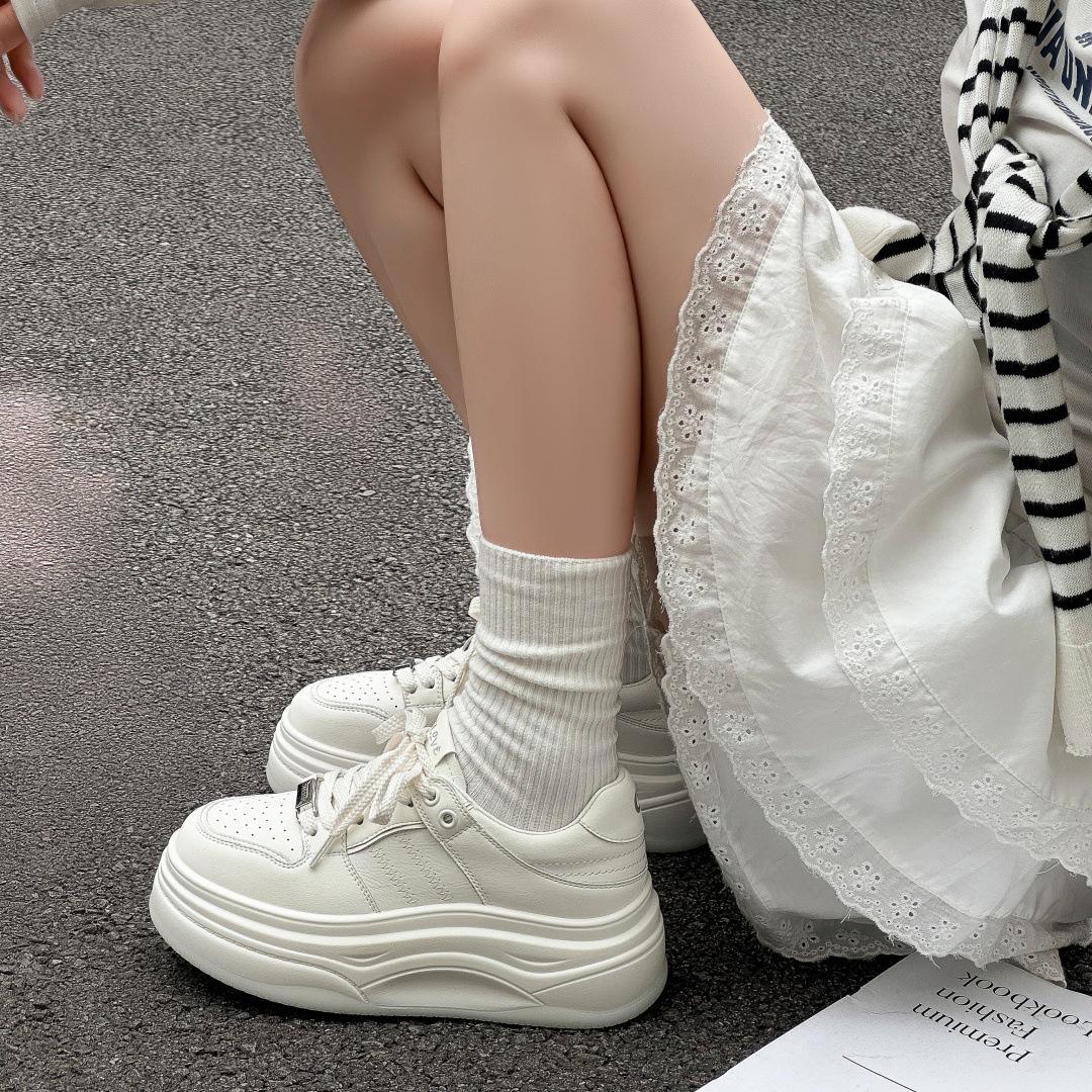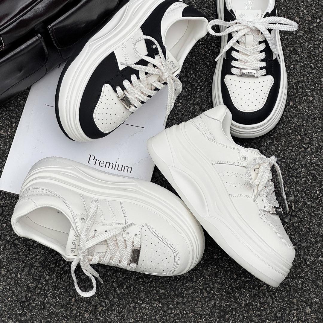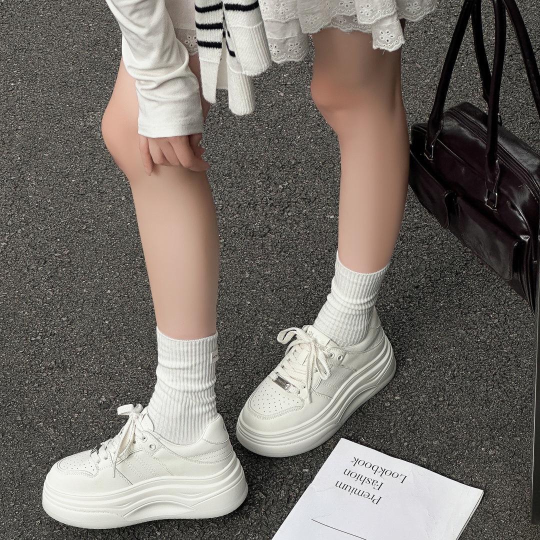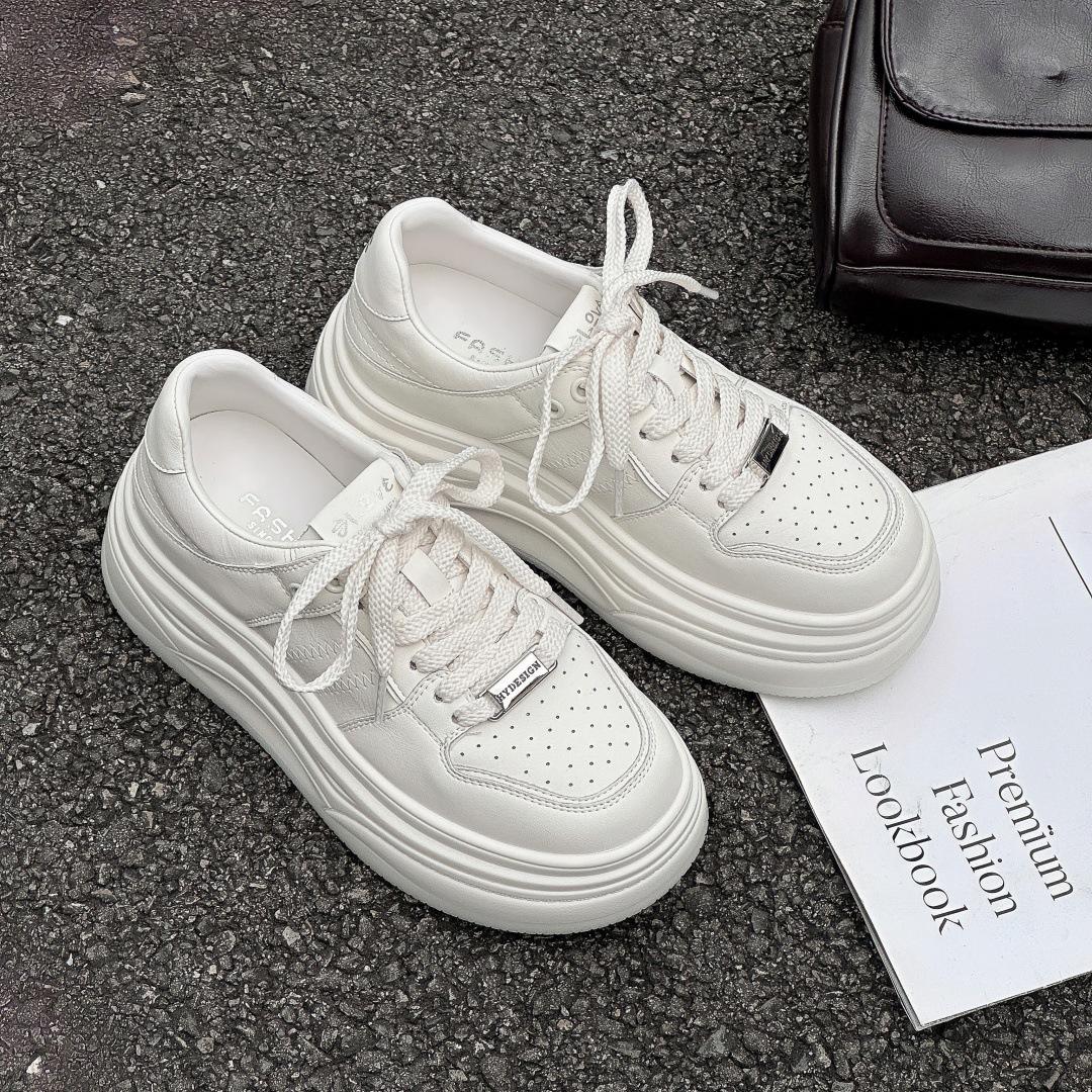 Zapatos Blancos de Piel Genuina con Suela Gruesa para Mujer 2025 Otoño Nuevo Estilo Coreano Versátiles Plataforma Zapatillas con Cordones Zapatos Casuales Deportivos Tendencia