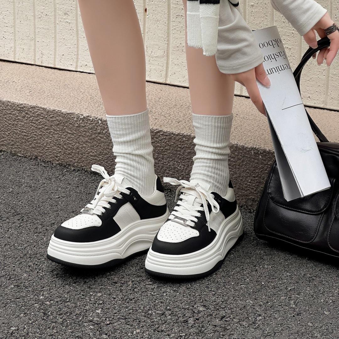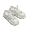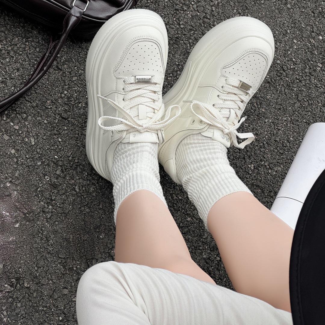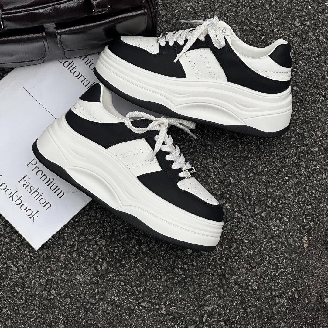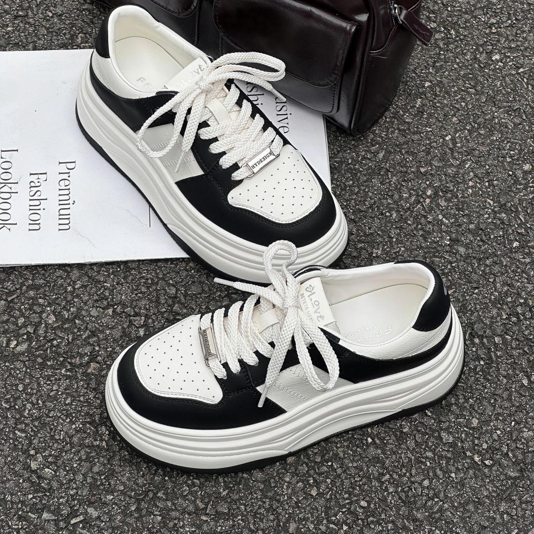 Zapatos Blancos de Piel Genuina con Suela Gruesa para Mujer 2025 Otoño Nuevo Estilo Coreano Versátiles Plataforma Zapatillas con Cordones Zapatos Casuales Deportivos Tendencia