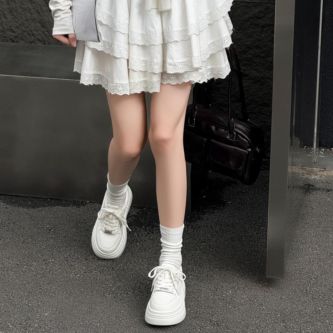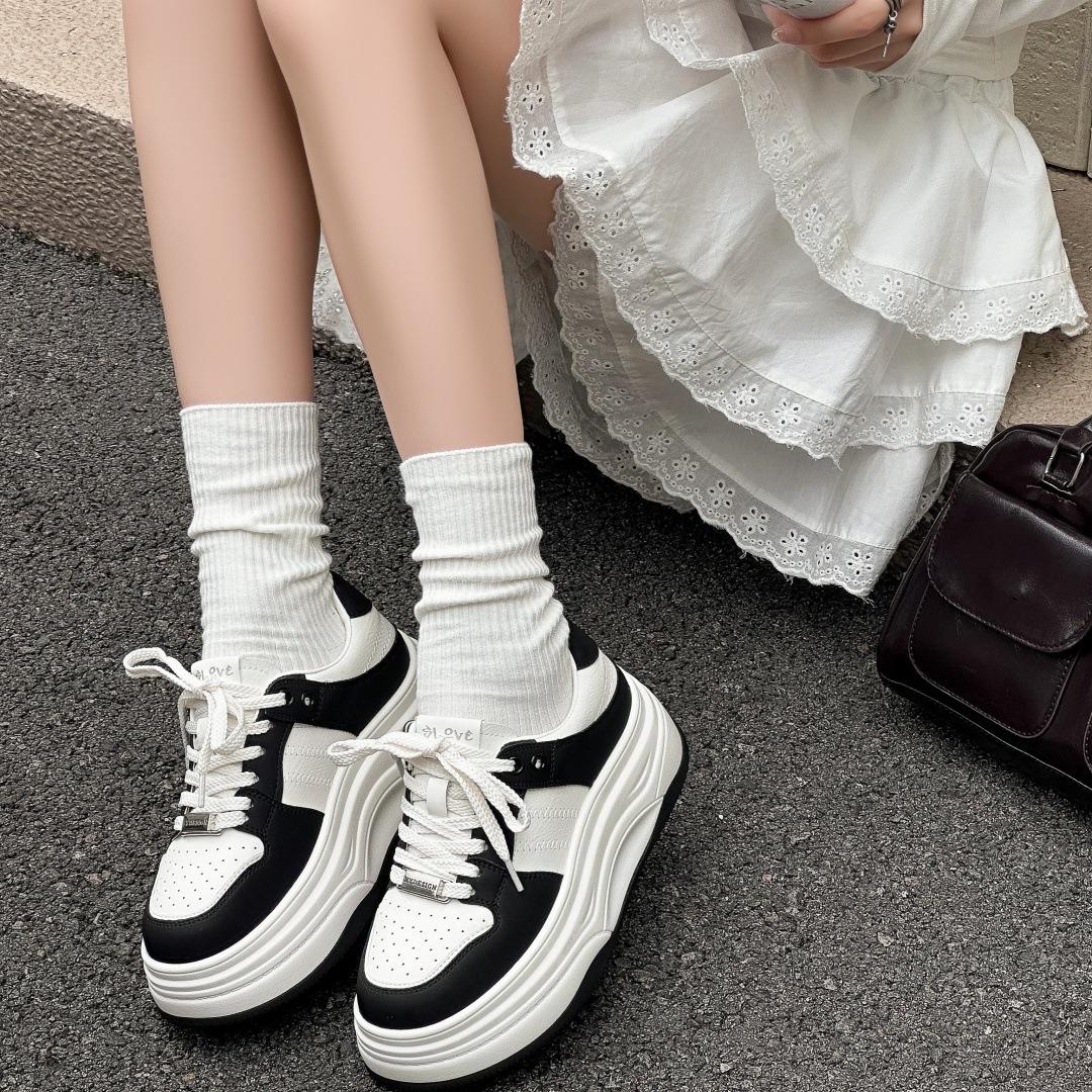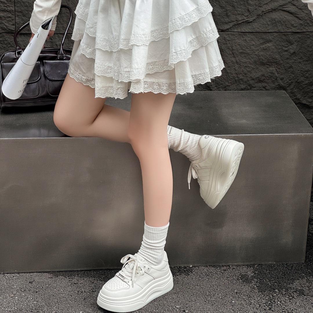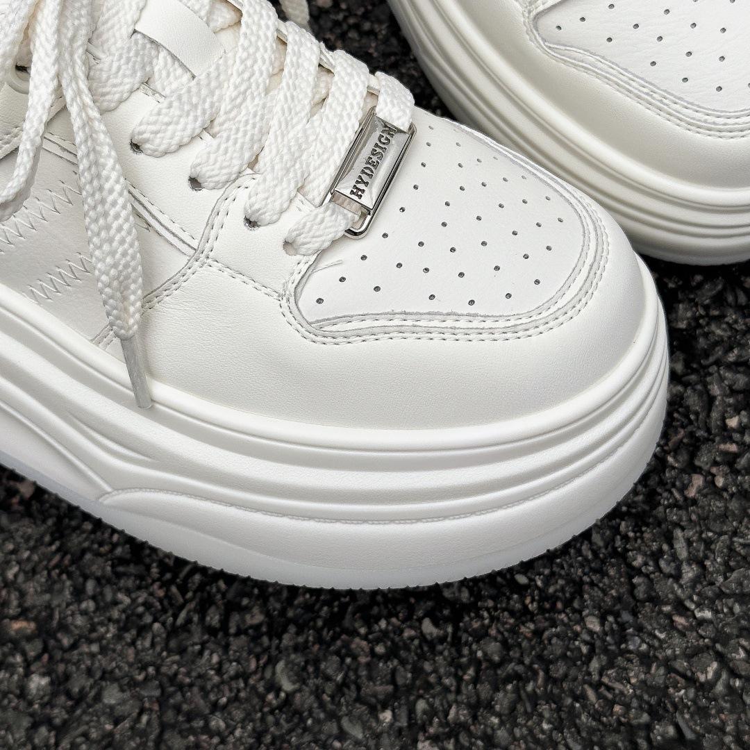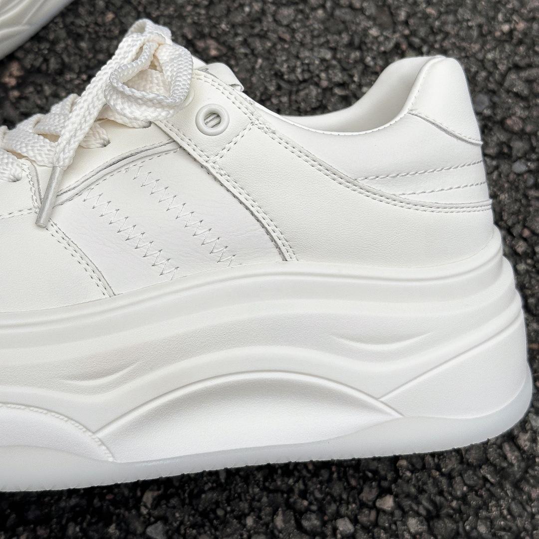Zapatos Blancos de Piel Genuina con Suela Gruesa para Mujer 2025 Otoño Nuevo Estilo Coreano Versátiles Plataforma Zapatillas con Cordones Zapatos Casuales Deportivos Tendencia