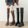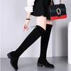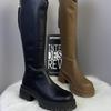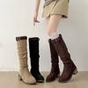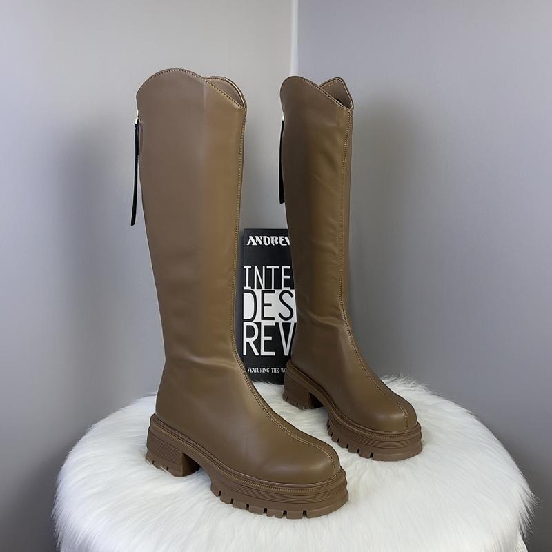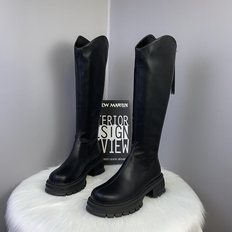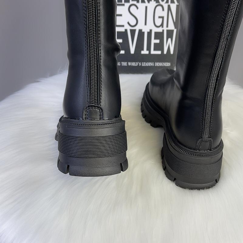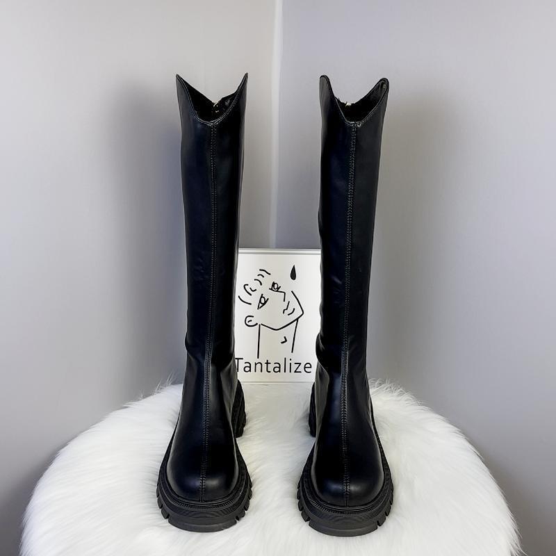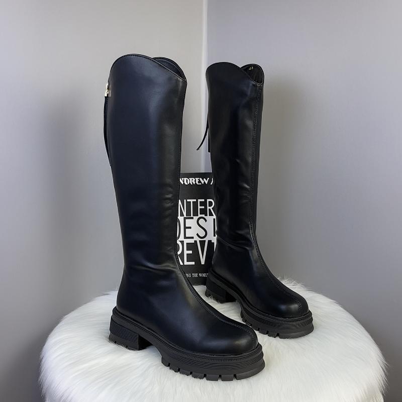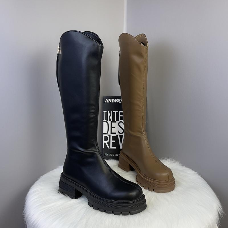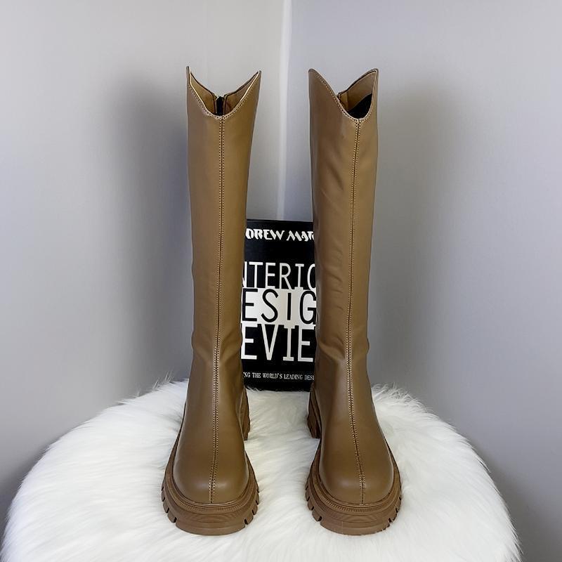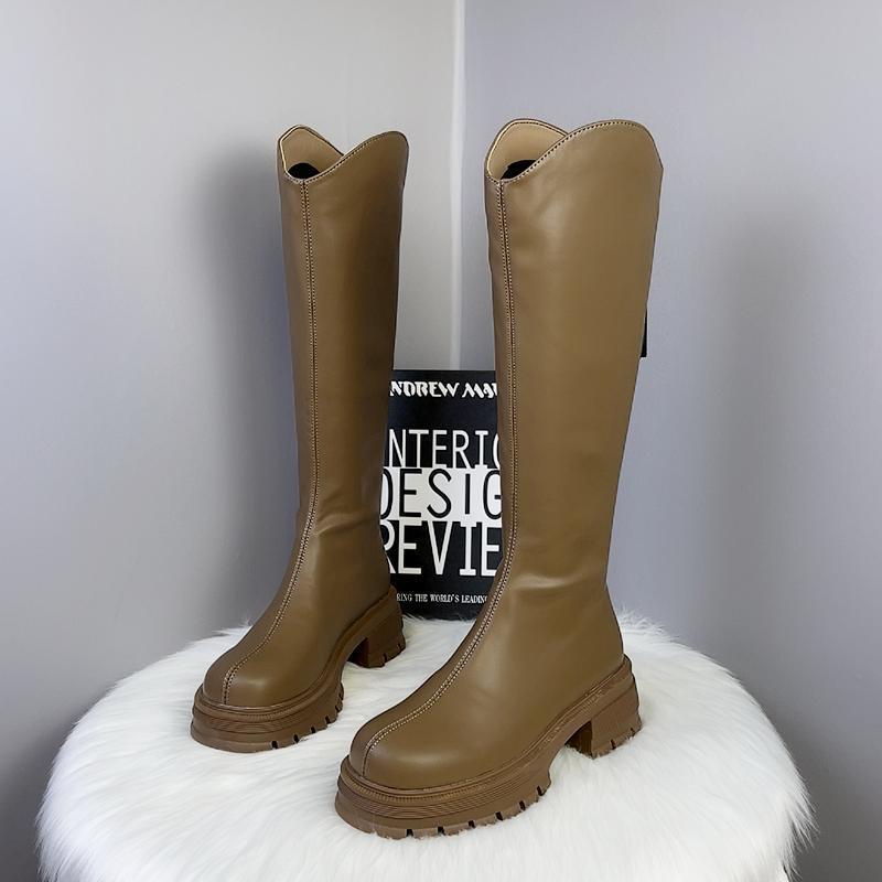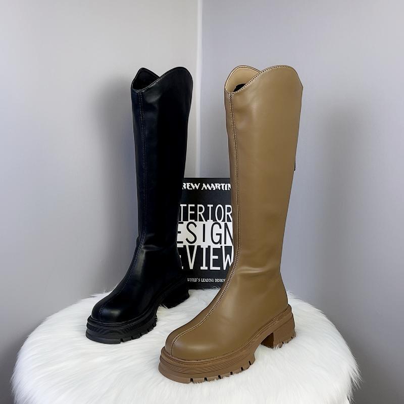 2025 Otoño/Invierno Nuevas Botas de Caballero de Caña Alta para Mujer Tacón de Herradura Aumento de Altura Muestra Longitud de Pierna Cierre Trasero Punta Redonda Botas Largas ins