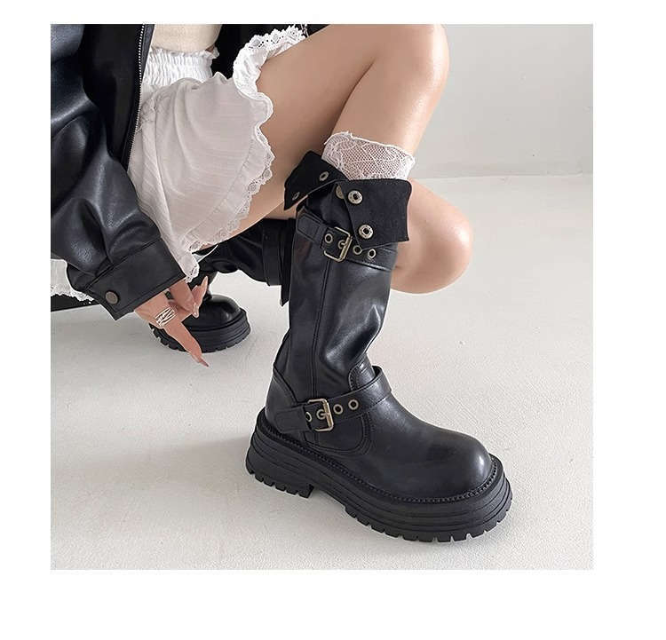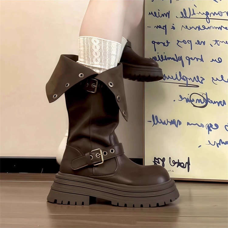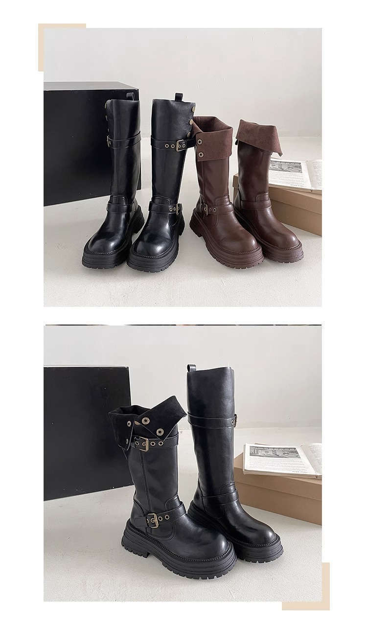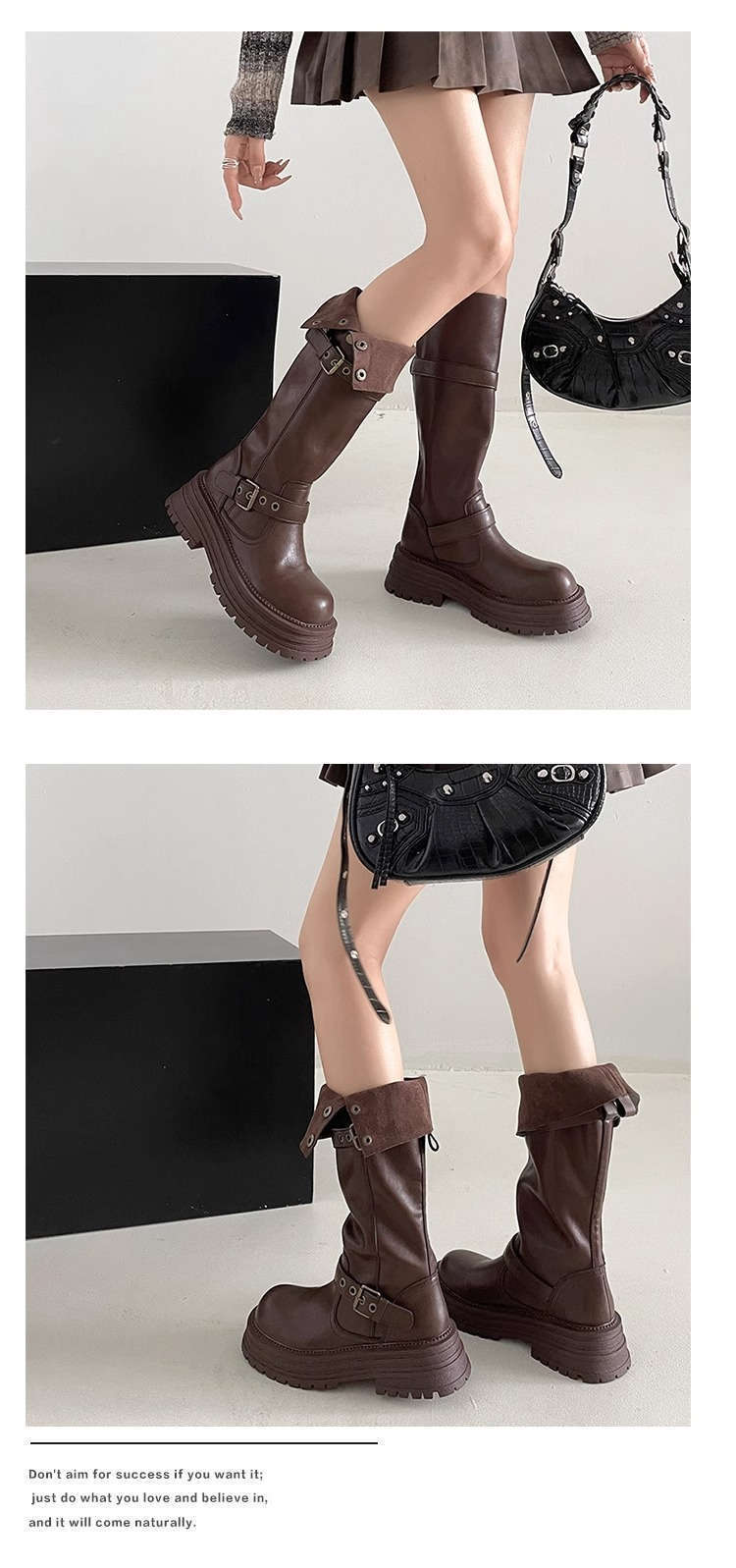 Estilo Retro Caliente Myllard Botas de Caballero de Suela Gruesa Inglesas para Aumentar la Altura Mujeres Otoño/Invierno 2025 Nuevo Hebilla de Cinturón Botas Altas hasta la Rodilla