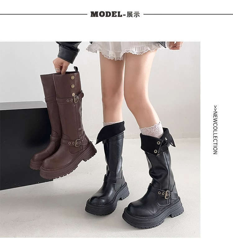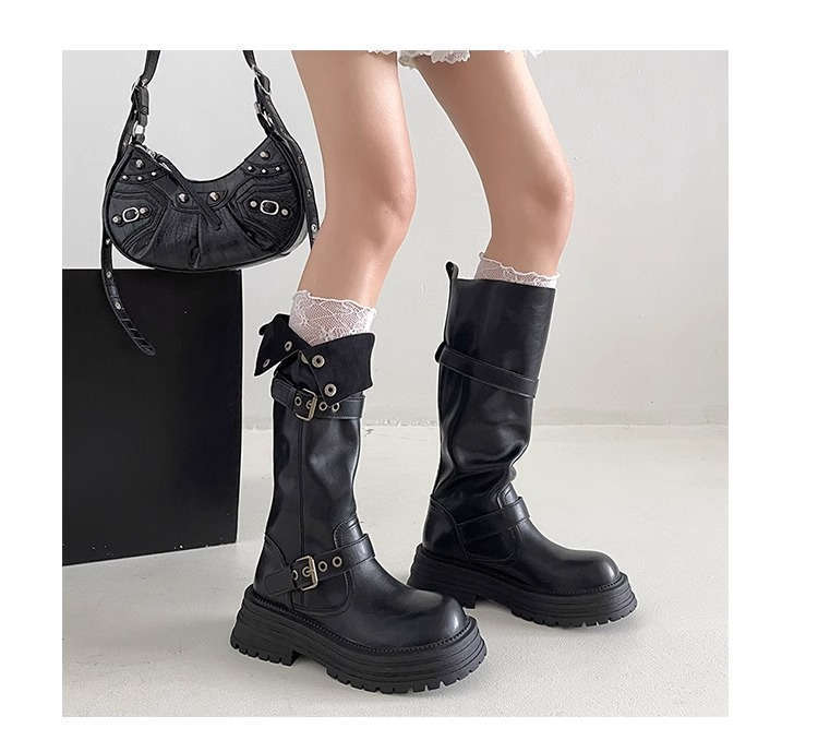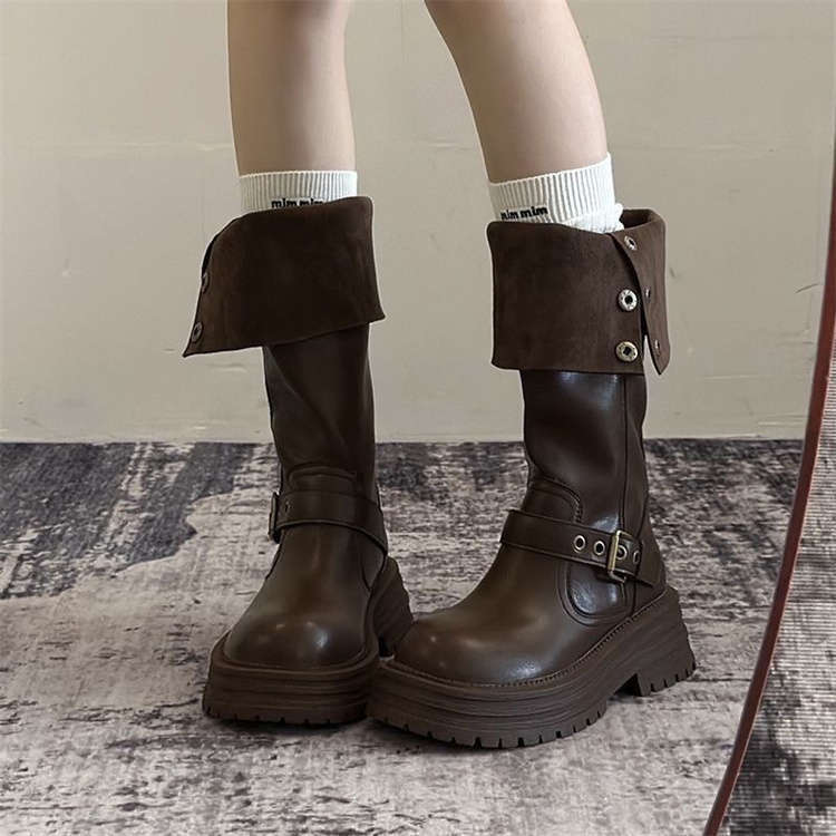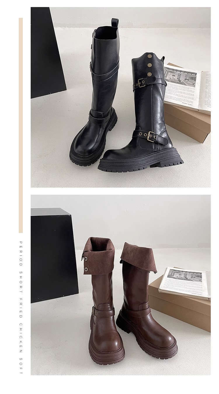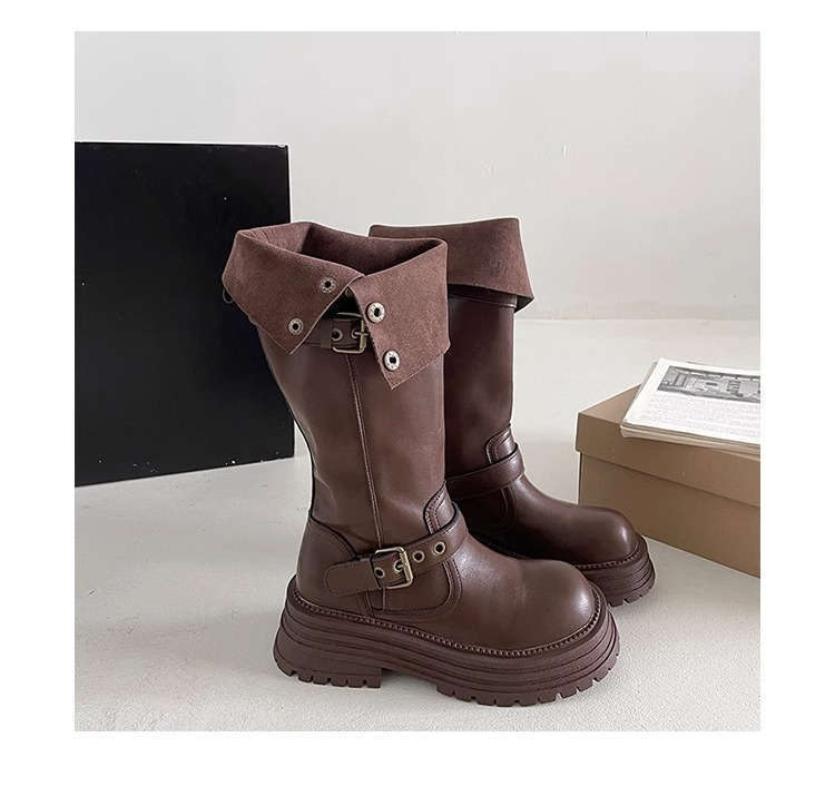 Estilo Retro Caliente Myllard Botas de Caballero de Suela Gruesa Inglesas para Aumentar la Altura Mujeres Otoño/Invierno 2025 Nuevo Hebilla de Cinturón Botas Altas hasta la Rodilla