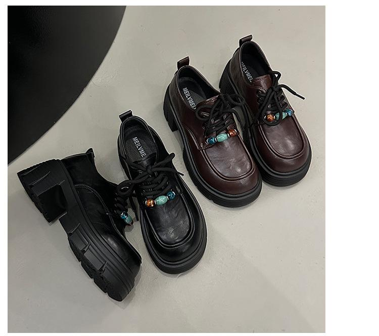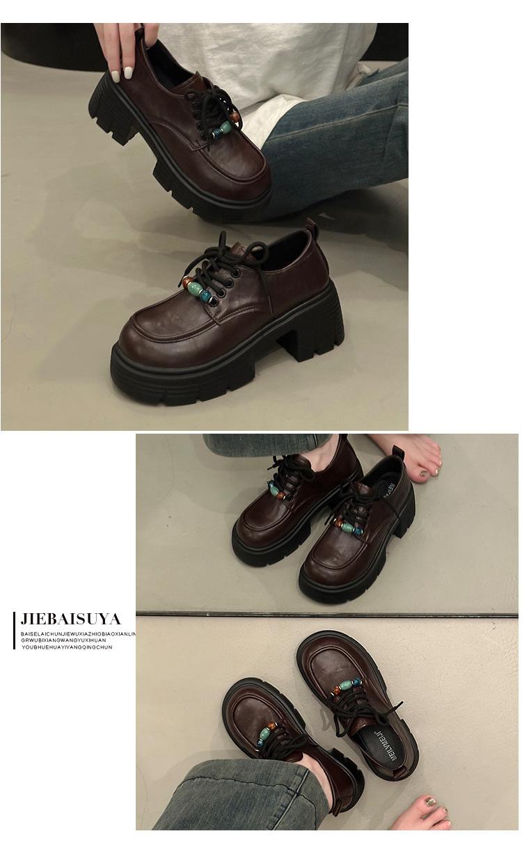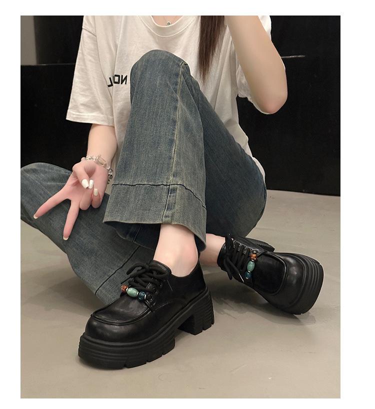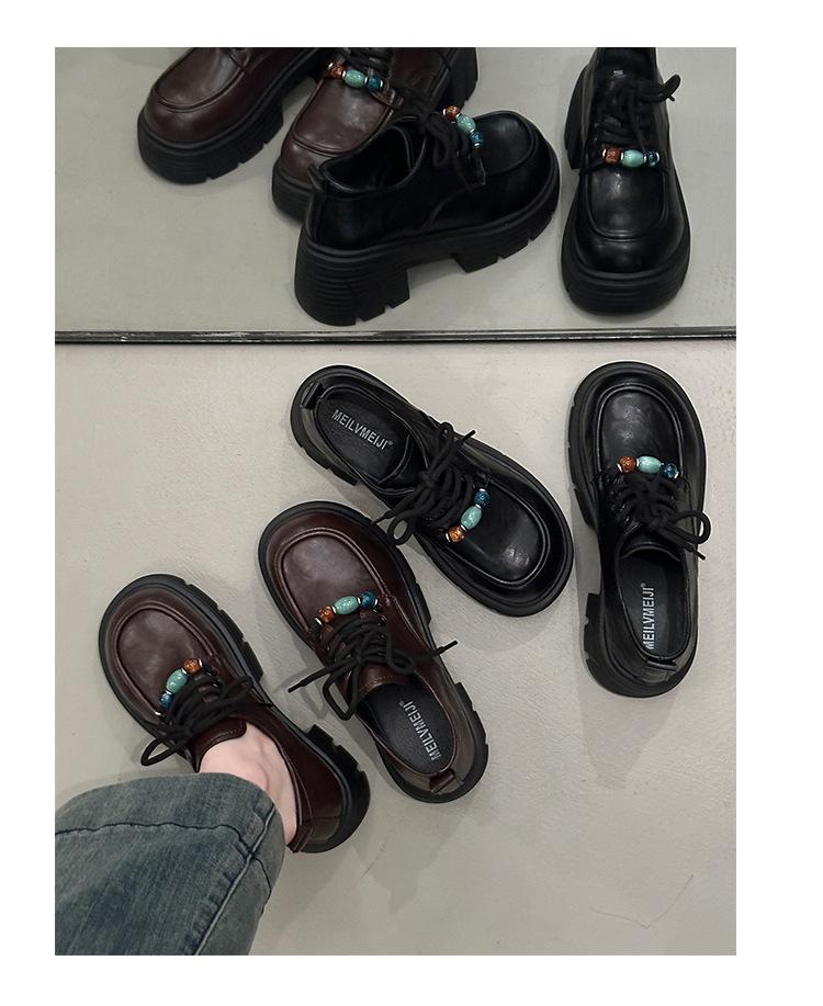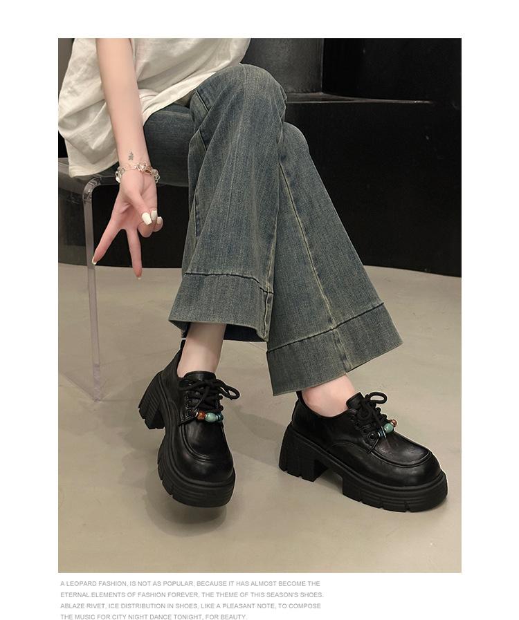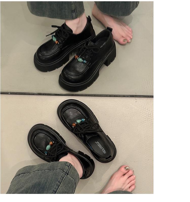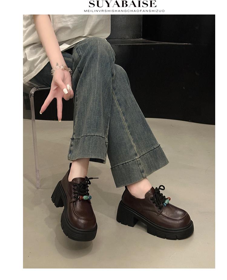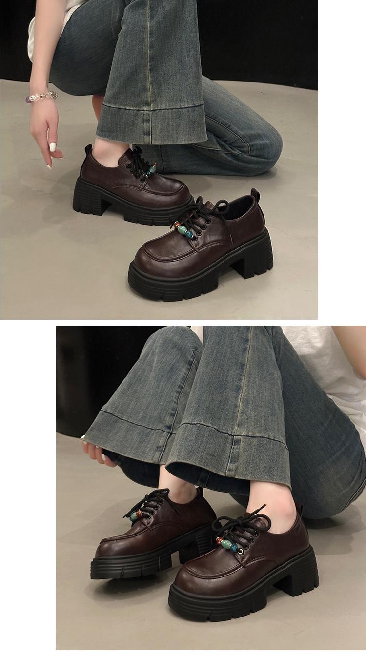 Mocasines Retro de Talla Grande Estilo Británico Zapatos Pequeños de Cuero Mujer 2025 Otoño Nuevo Versátil Suela Gruesa Aumento de Altura Zapatos con Cordones