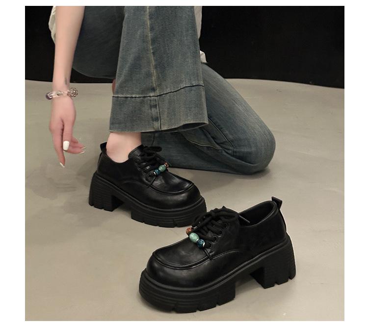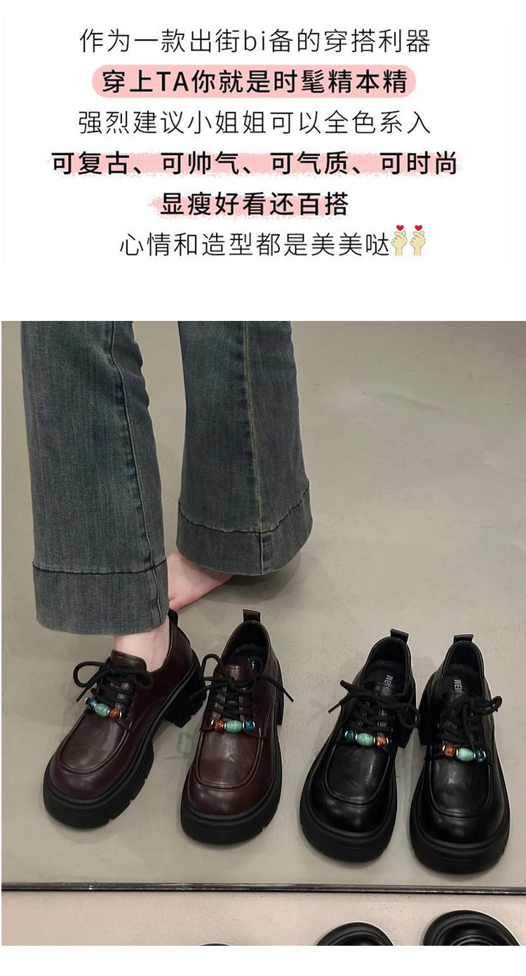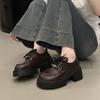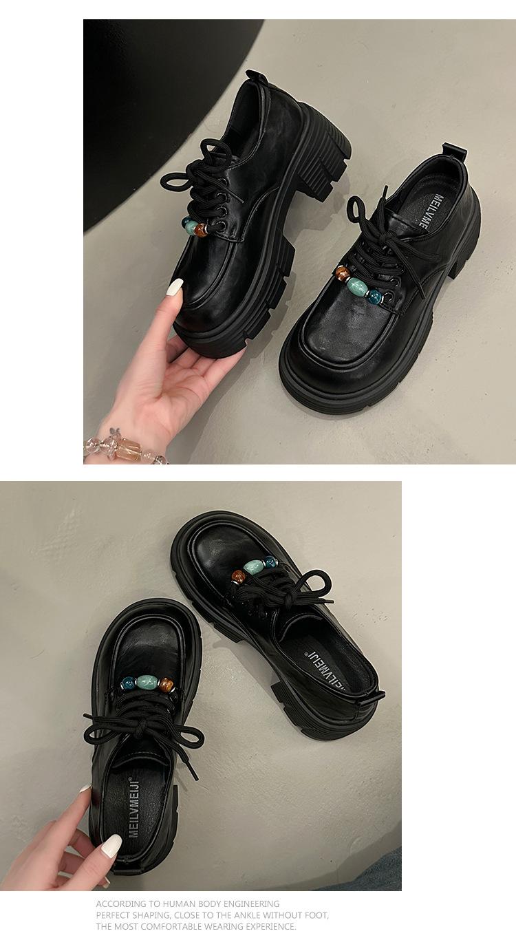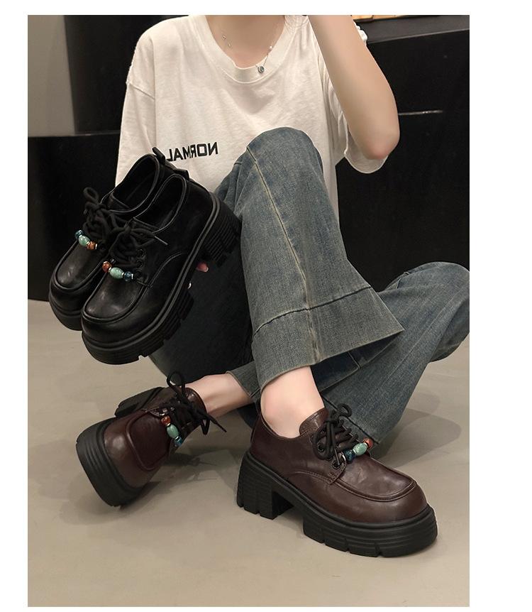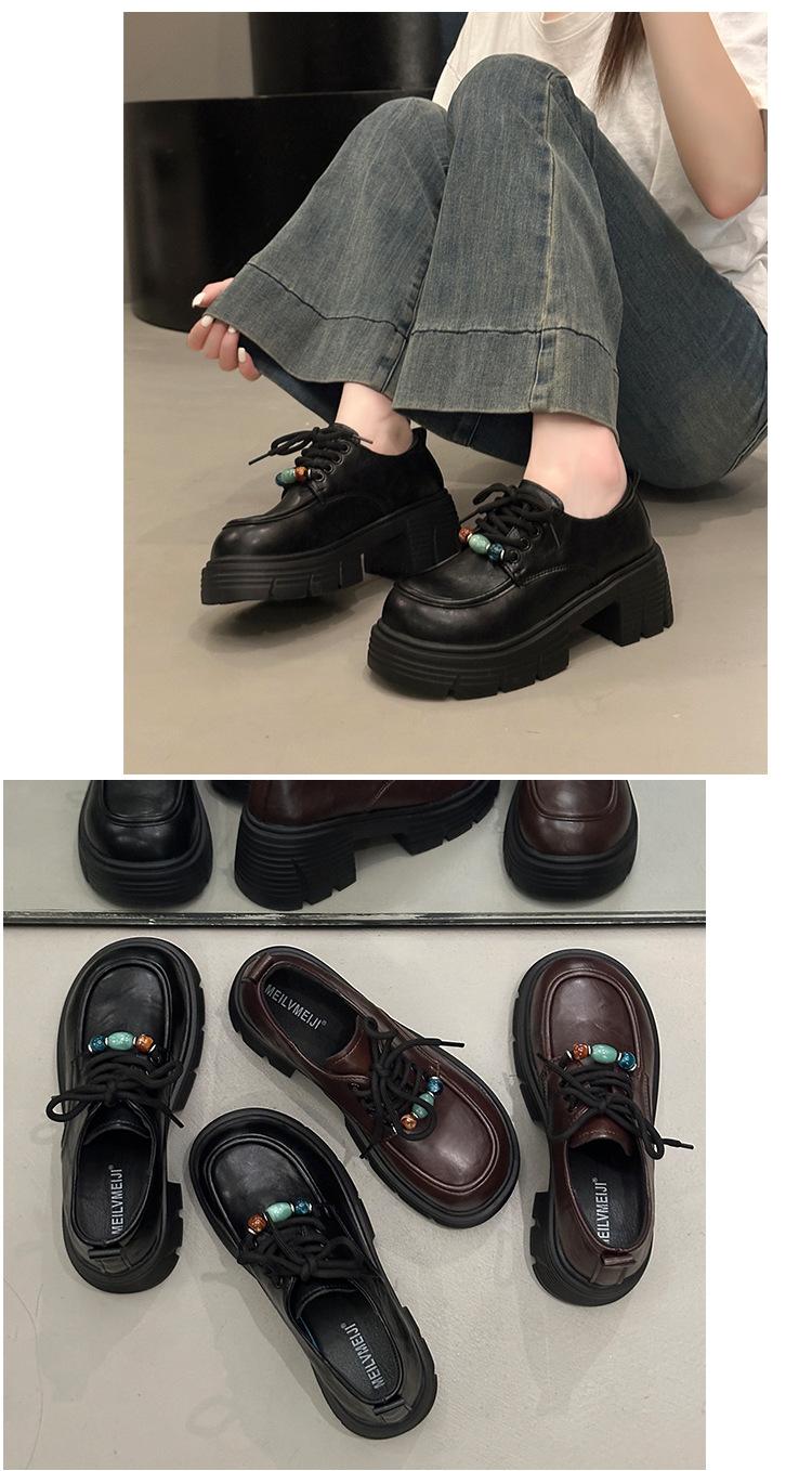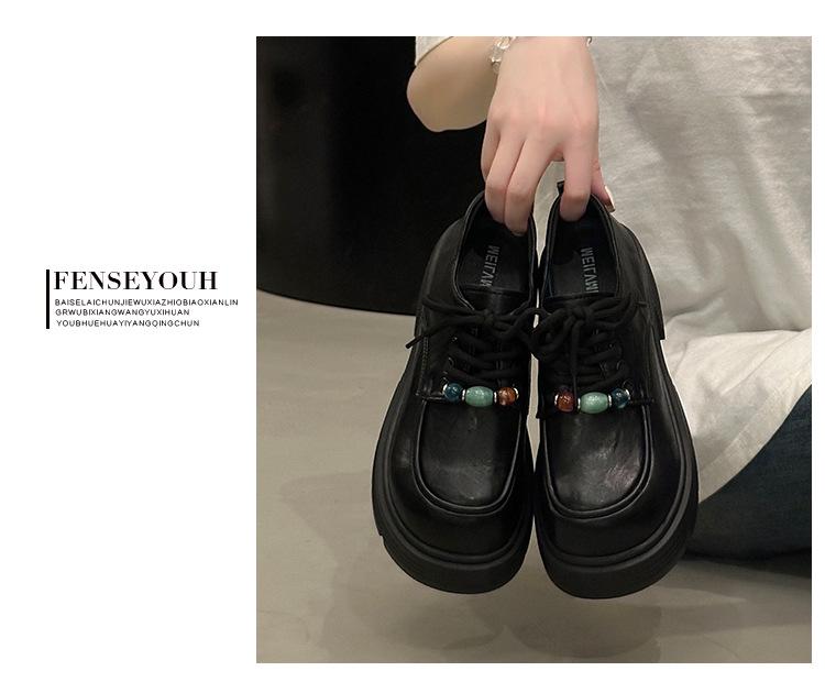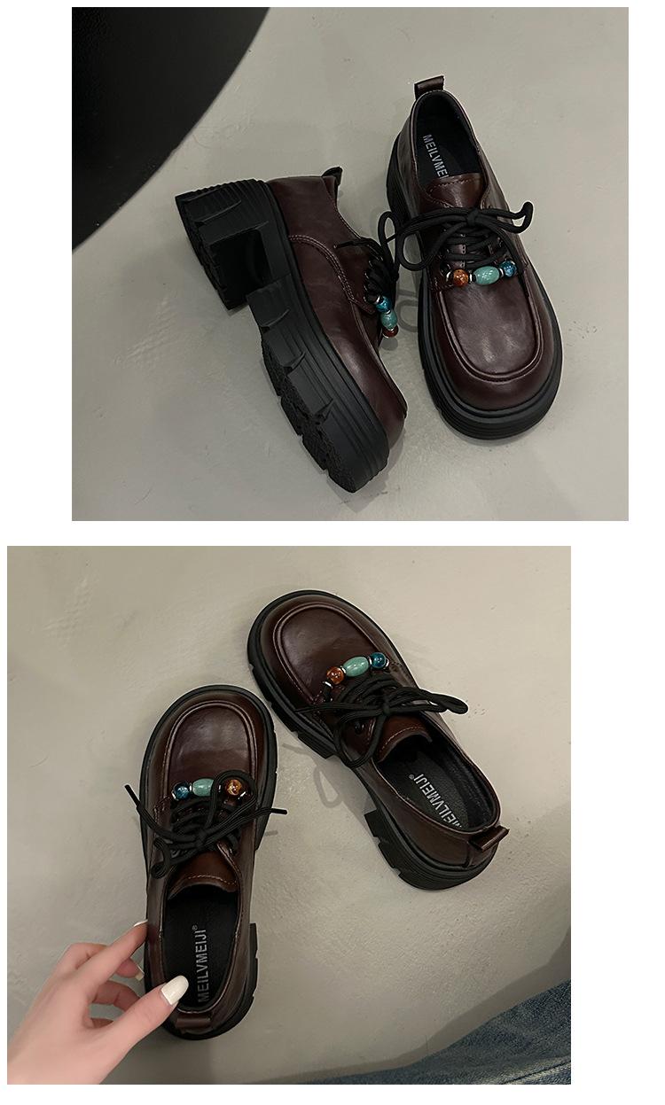 Mocasines Retro de Talla Grande Estilo Británico Zapatos Pequeños de Cuero Mujer 2025 Otoño Nuevo Versátil Suela Gruesa Aumento de Altura Zapatos con Cordones