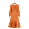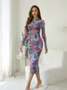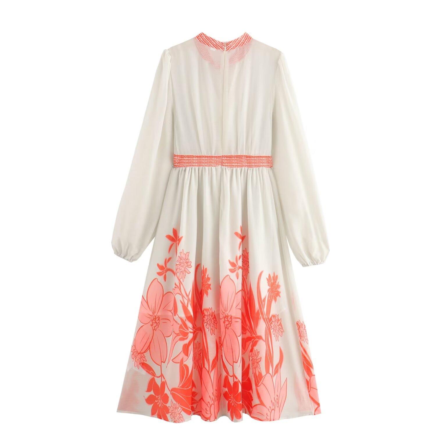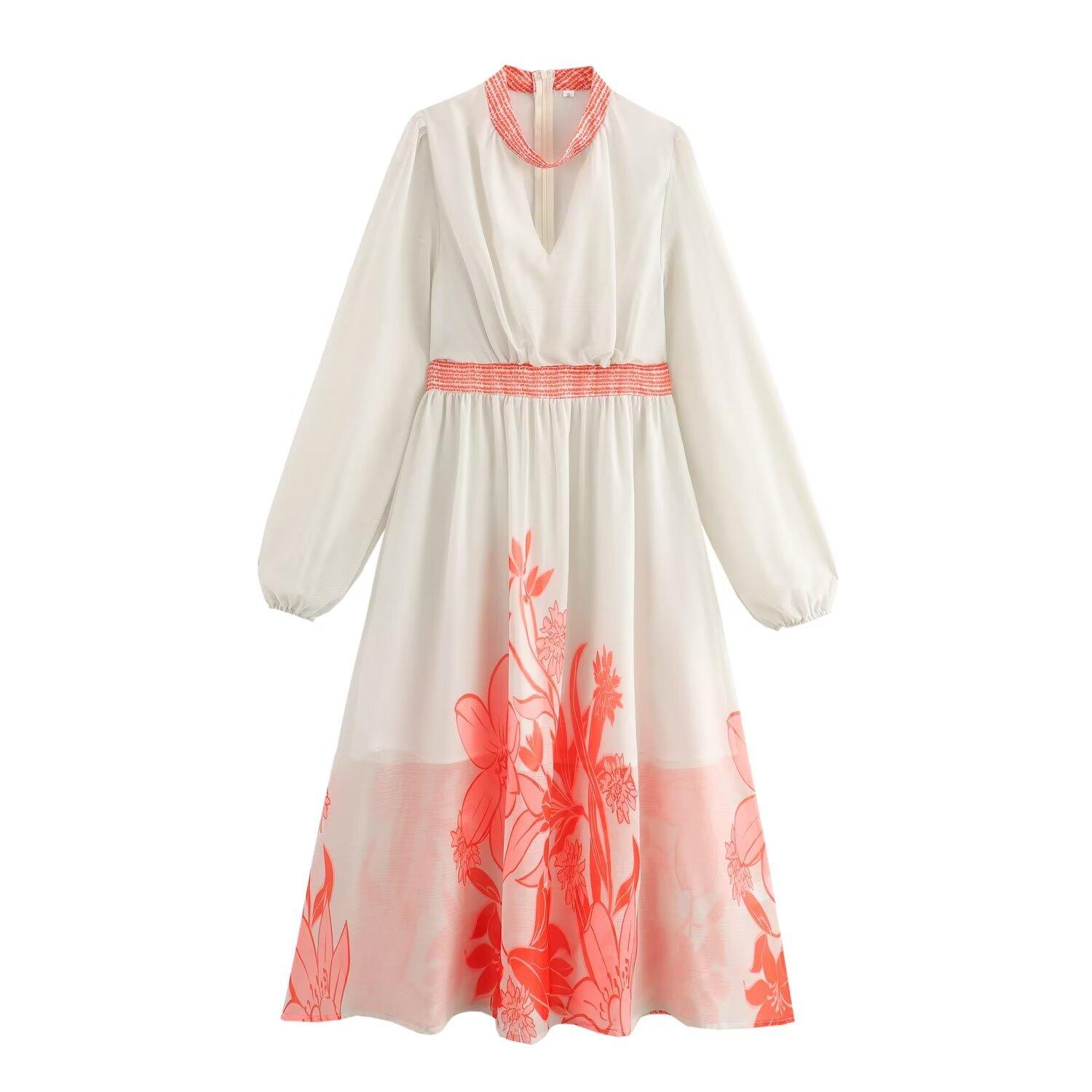 Venta al por mayor 2024 verano nuevo estilo europeo y americano vestido largo de manga larga con estampado hueco para mujer