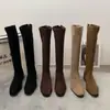 Botas por encima de la rodilla botas vaqueras botas de nieve dos suelas de tacón alto usar grueso aumento de altura versátil otoño e invierno de mujer cuero terciopelo 2024 tacón grueso