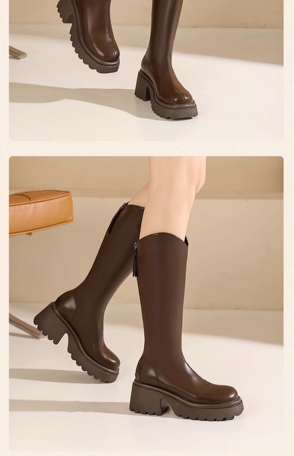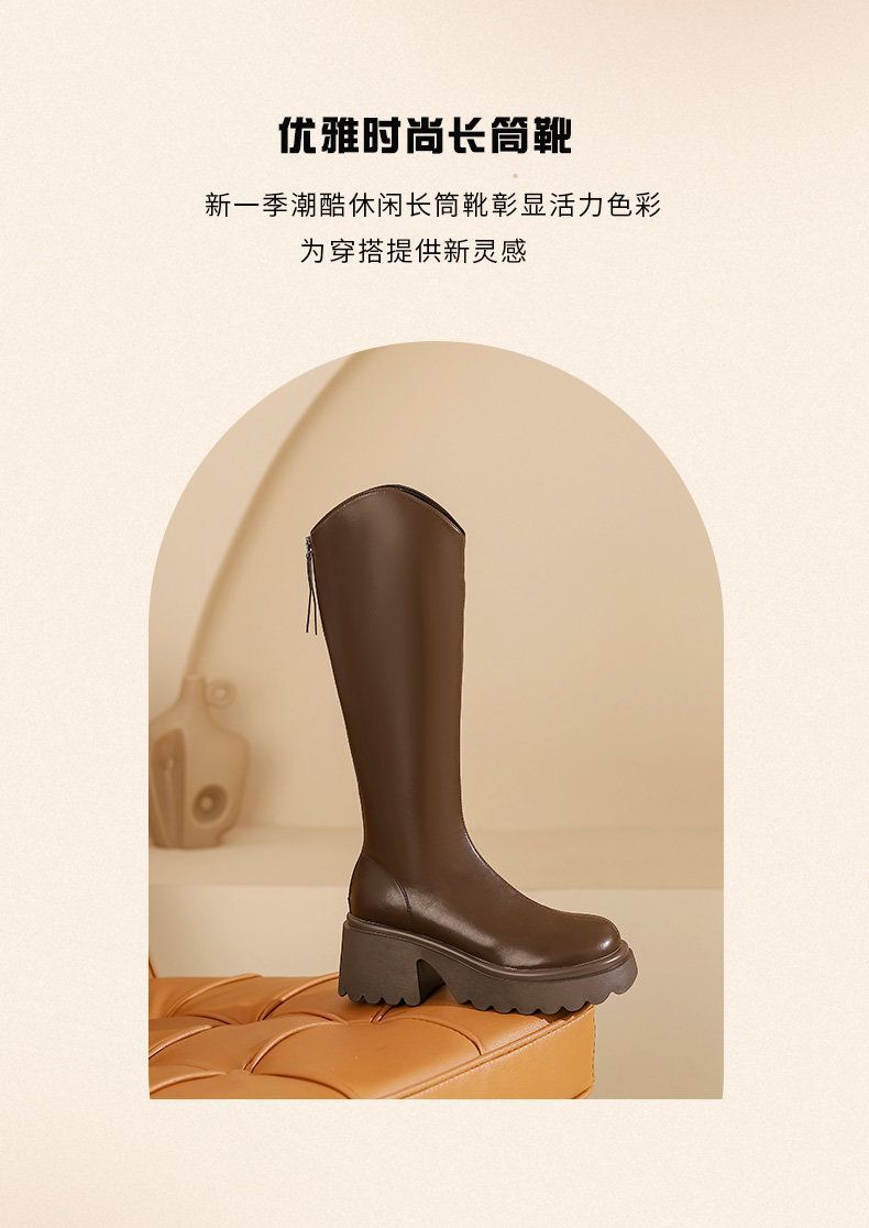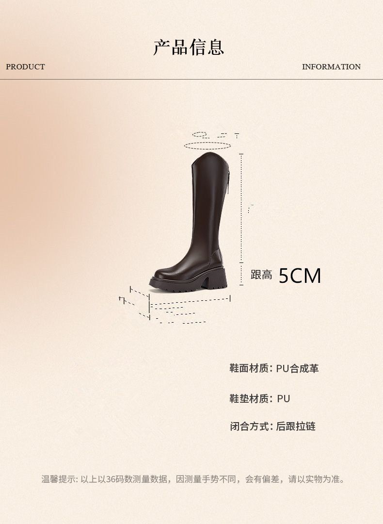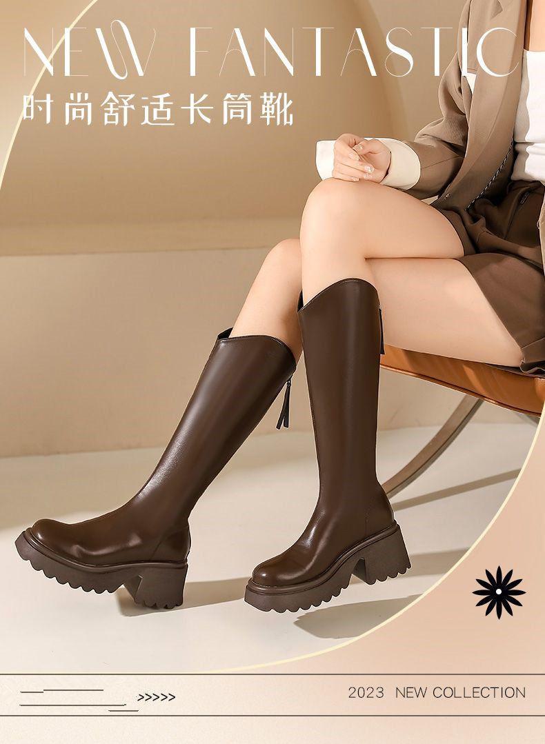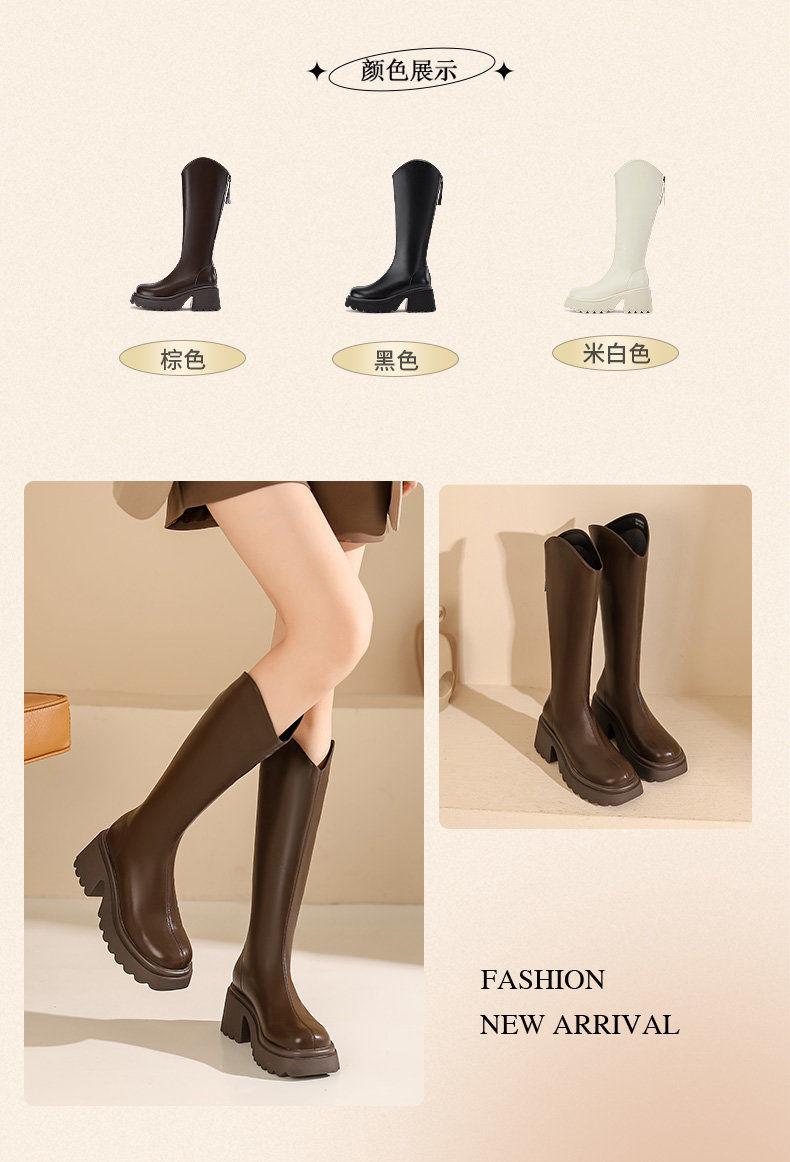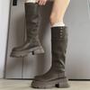 Botas nuevas de caña alta con cremallera trasera y suela gruesa, para aumentar la altura, invierno 2024, retro, color sólido, moda francesa, botas de caballero, botas largas para mujer