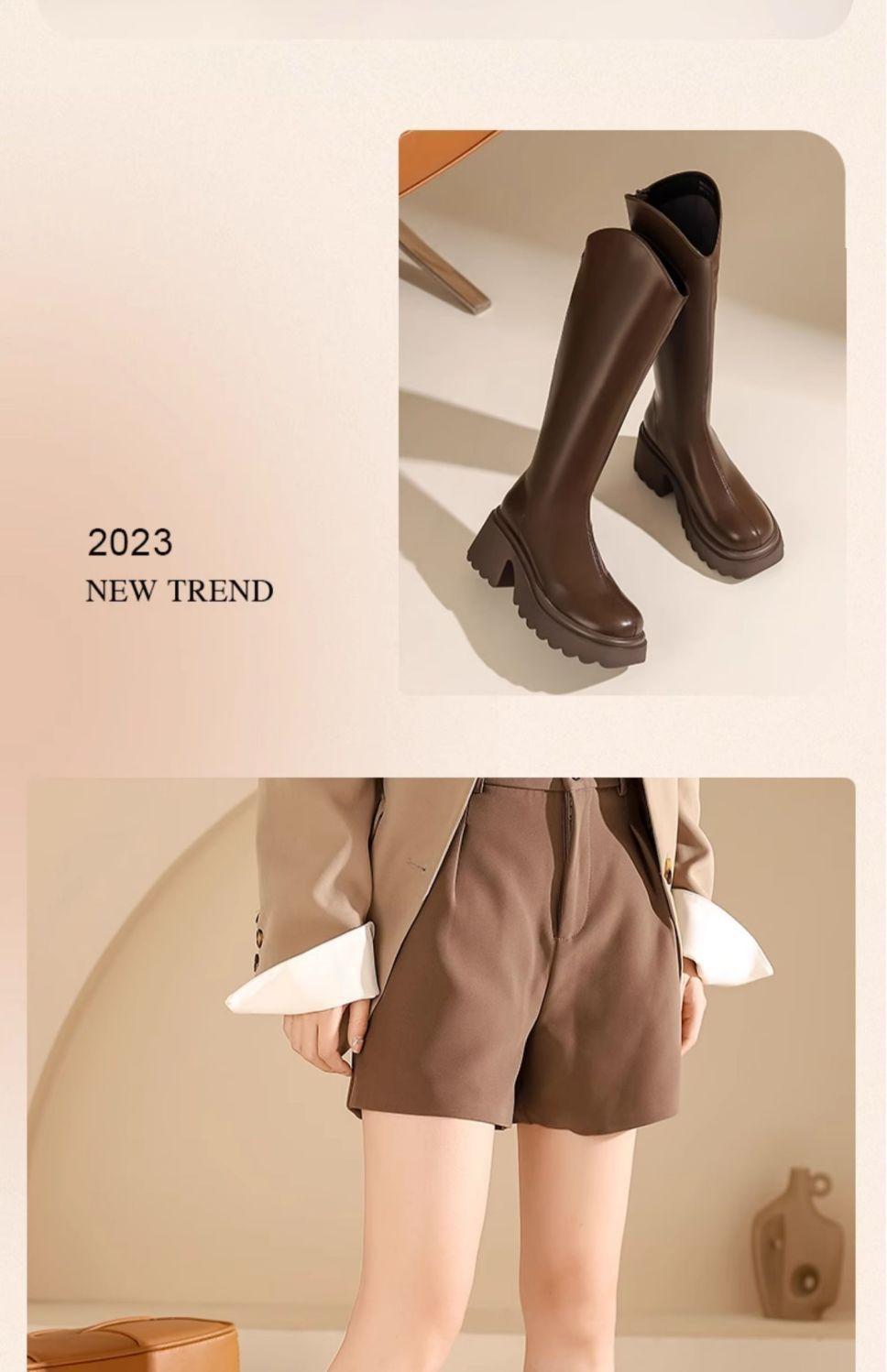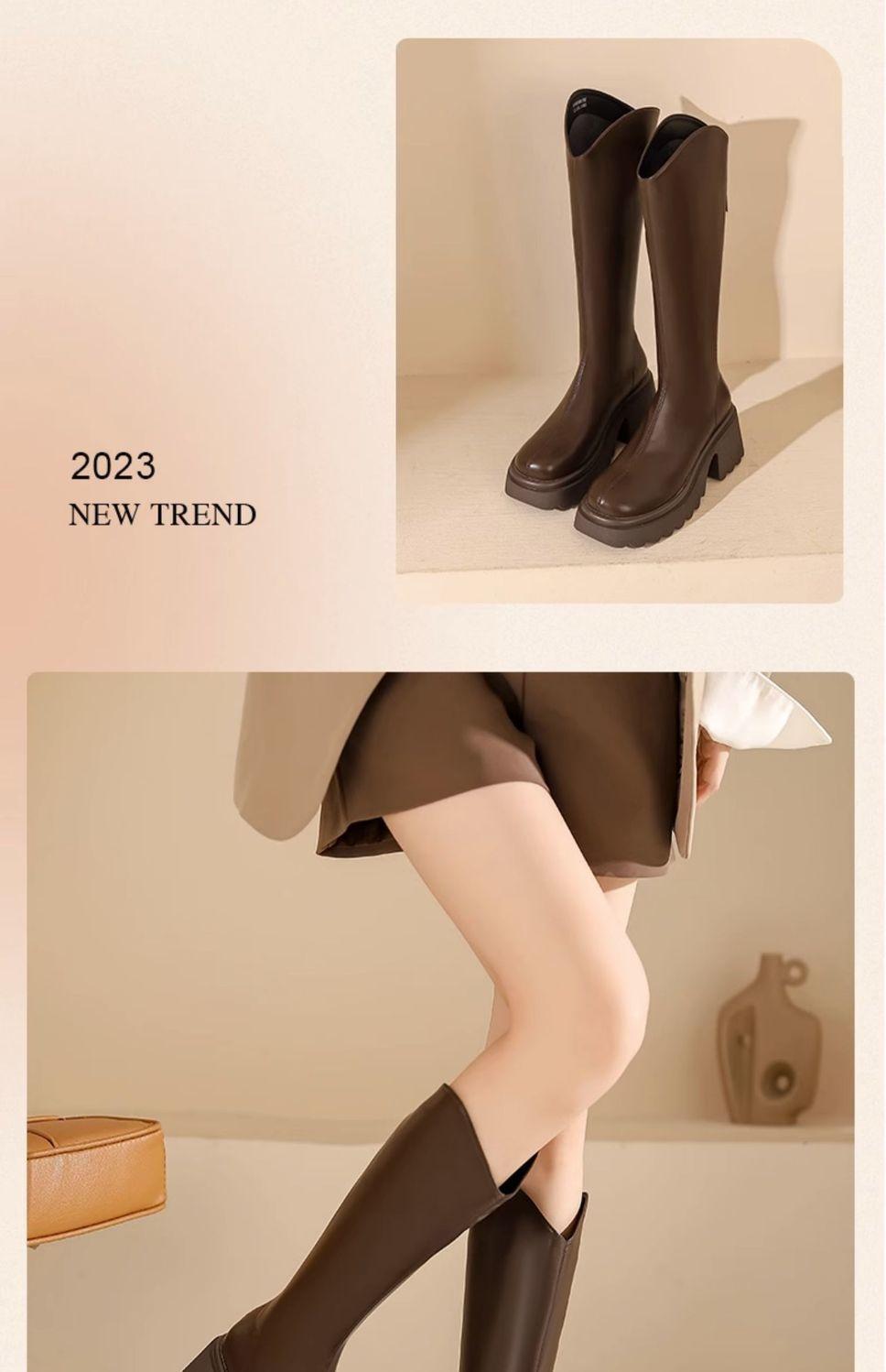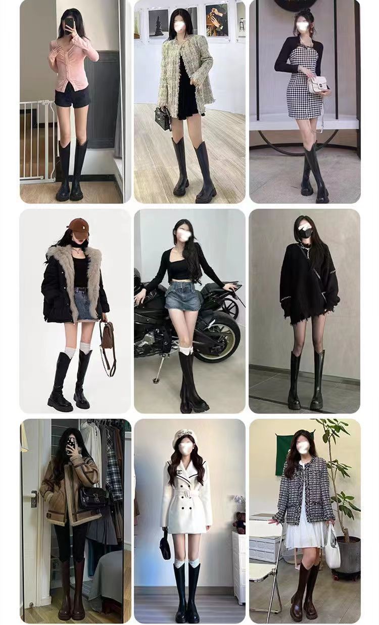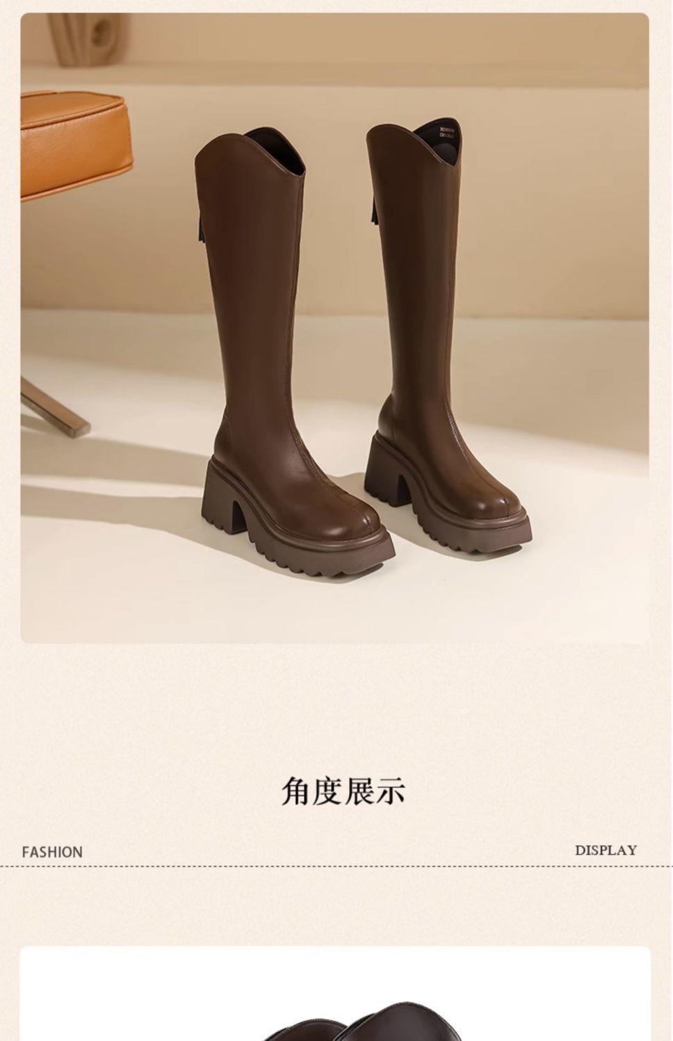 Botas nuevas de caña alta con cremallera trasera y suela gruesa, para aumentar la altura, invierno 2024, retro, color sólido, moda francesa, botas de caballero, botas largas para mujer