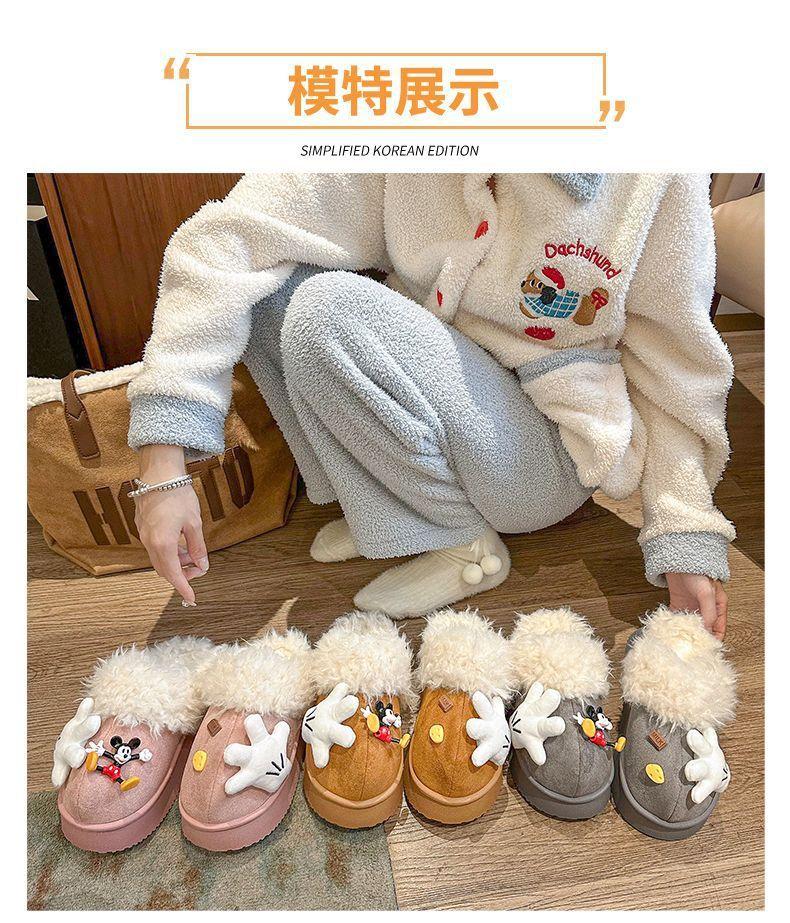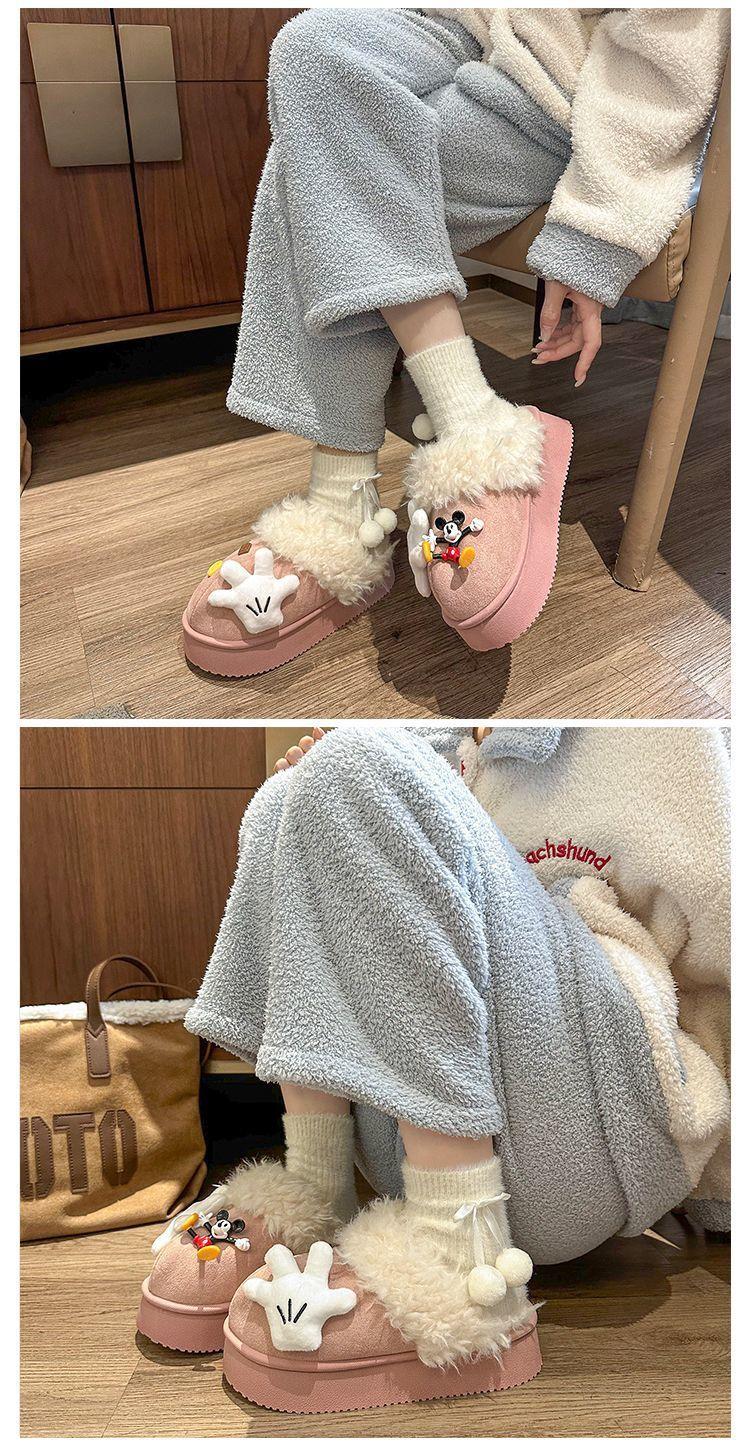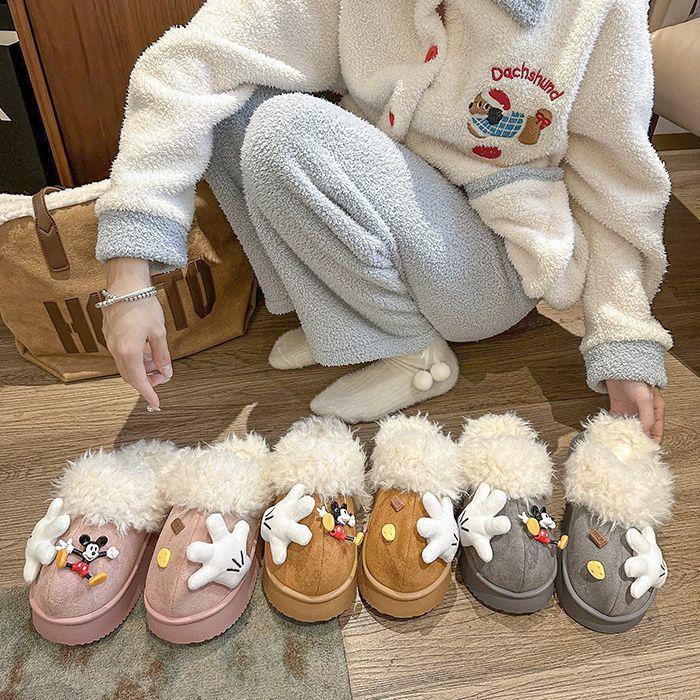 Zapatillas de Algodón de Estilo Coreano de Moda para Mujer Suela Gruesa Hogar Cálido Antideslizantes para Exterior Zapatillas de Algodón para Dama 2025 Otoño/Invierno Nuevo