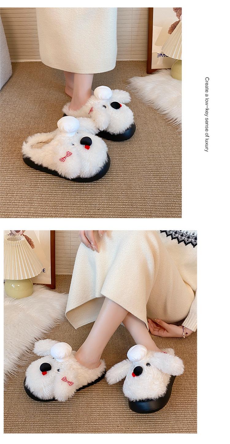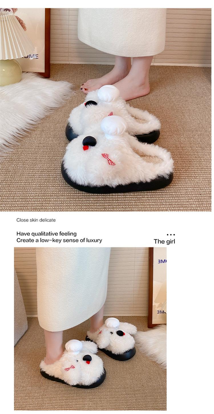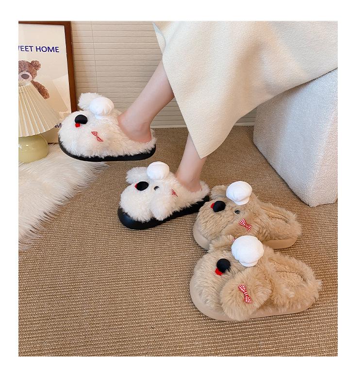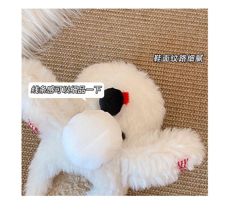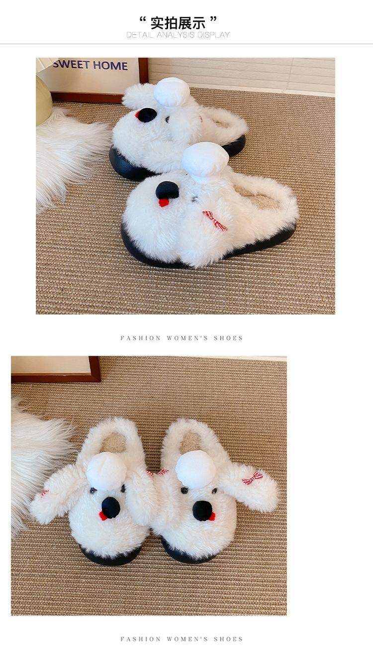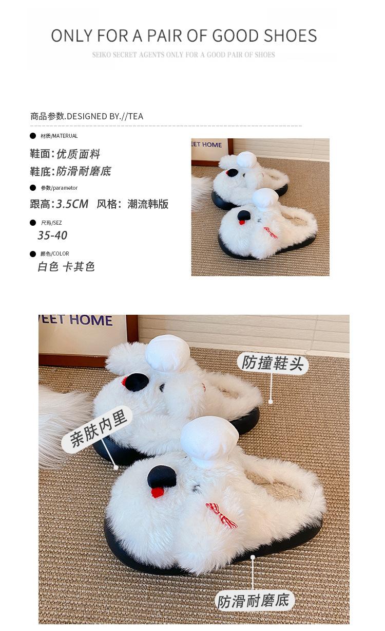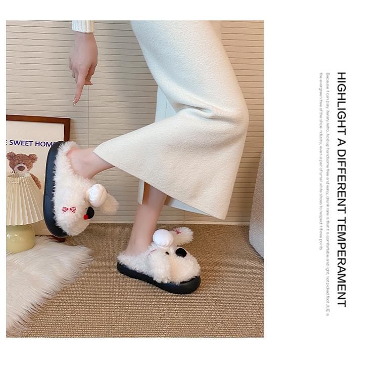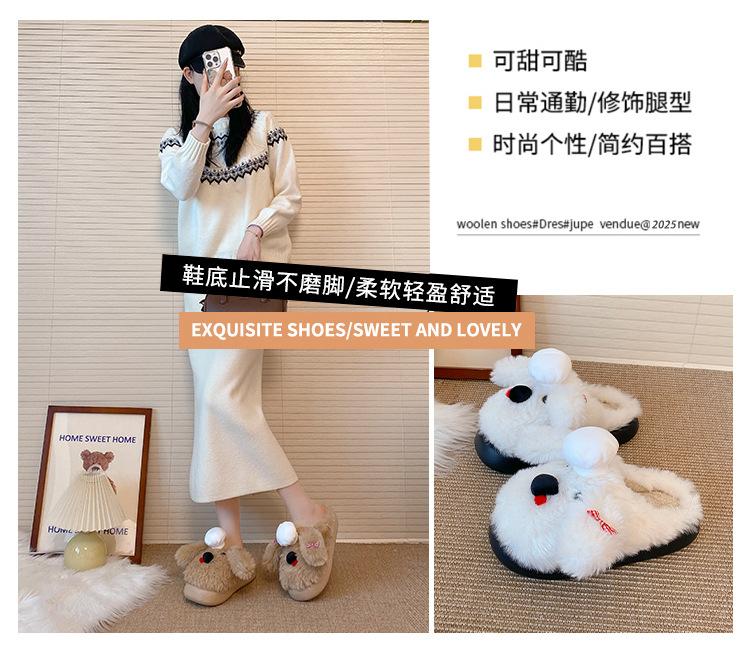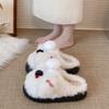 Pantuflas de Algodón para Mujer Moda Versátil Sensación de Pisar Mierda Puntera Cerrada Zapatos de Algodón Peludos 2025 Otoño/Invierno Nuevo Cachorro de Dibujos Animados Lindo