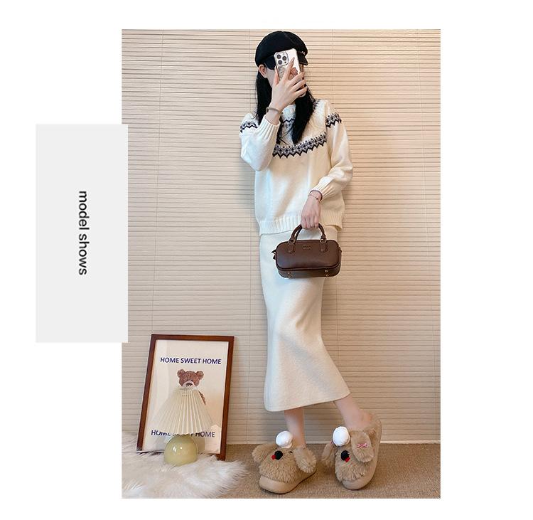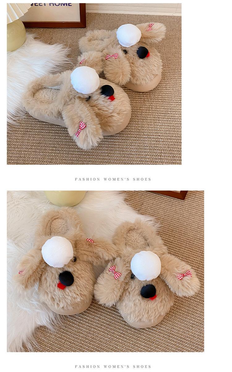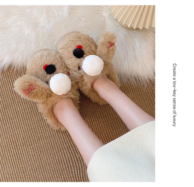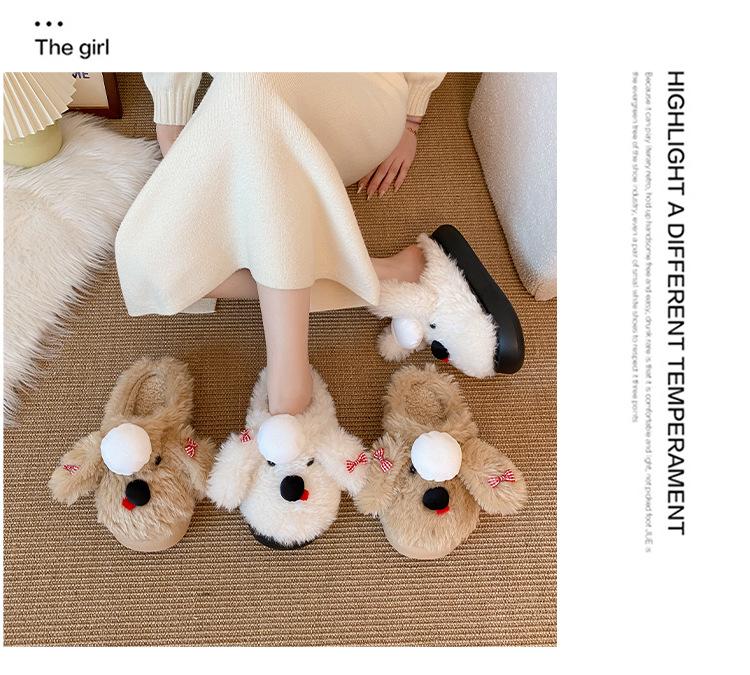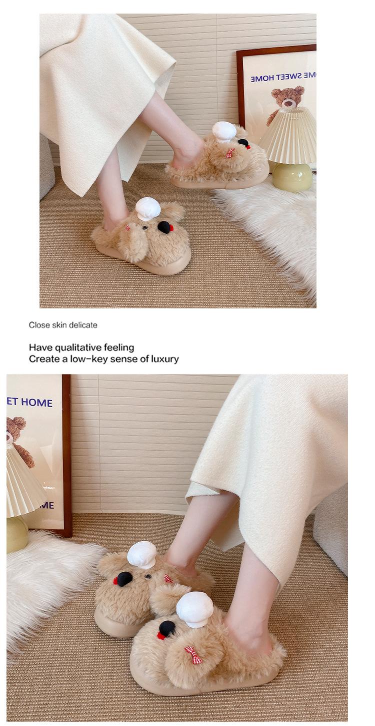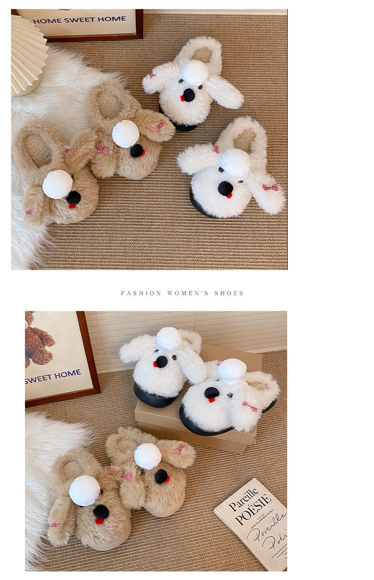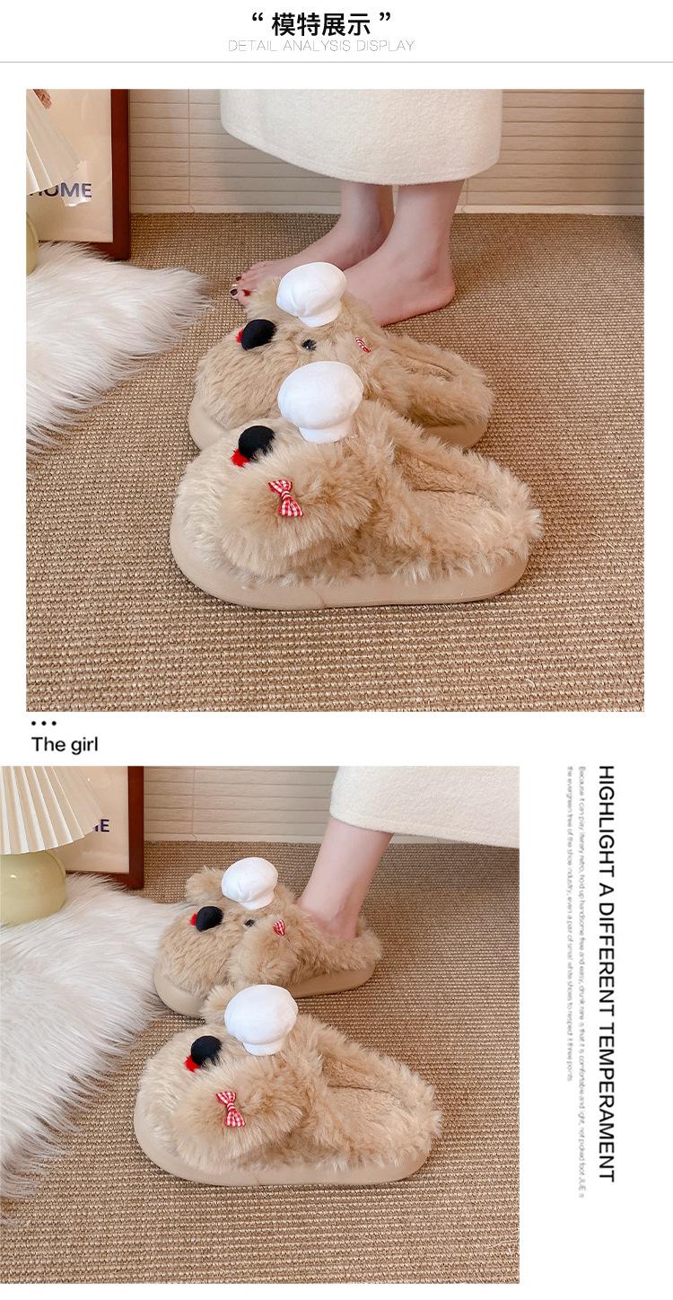 Pantuflas de Algodón para Mujer Moda Versátil Sensación de Pisar Mierda Puntera Cerrada Zapatos de Algodón Peludos 2025 Otoño/Invierno Nuevo Cachorro de Dibujos Animados Lindo