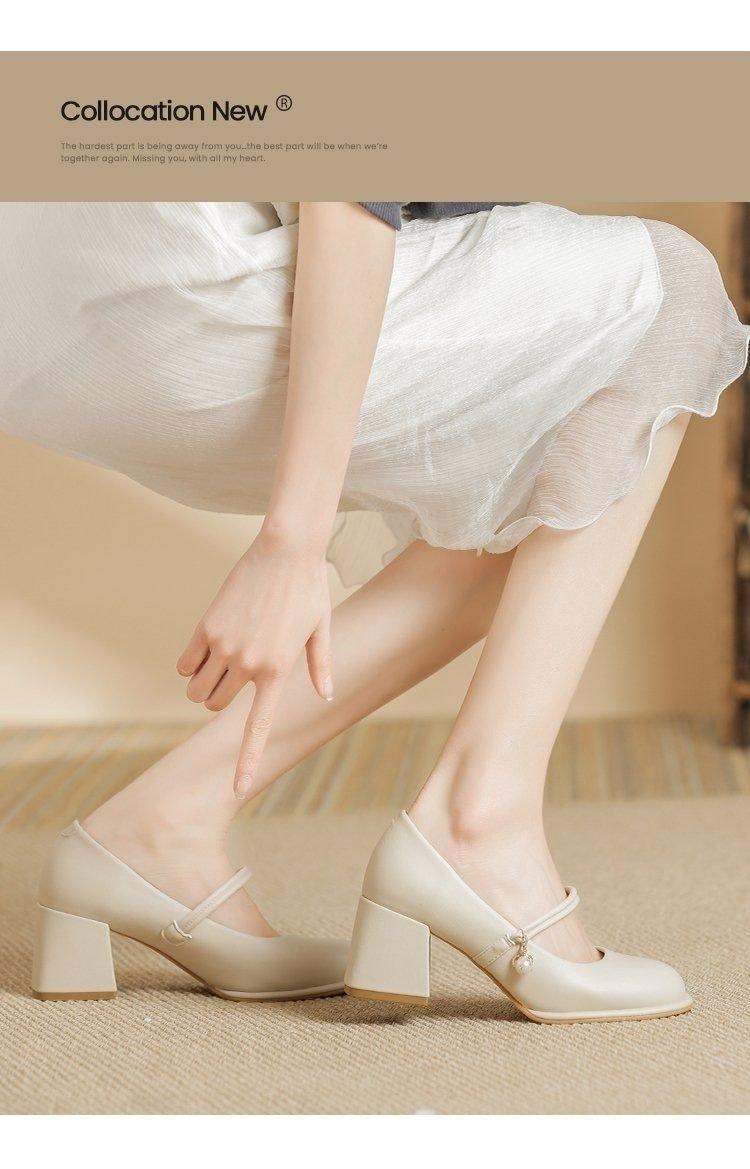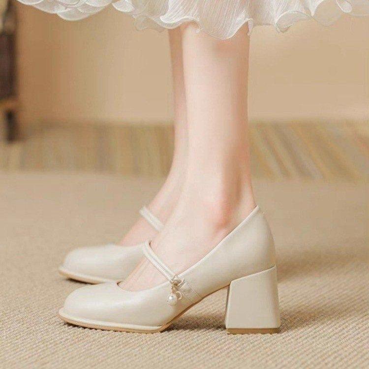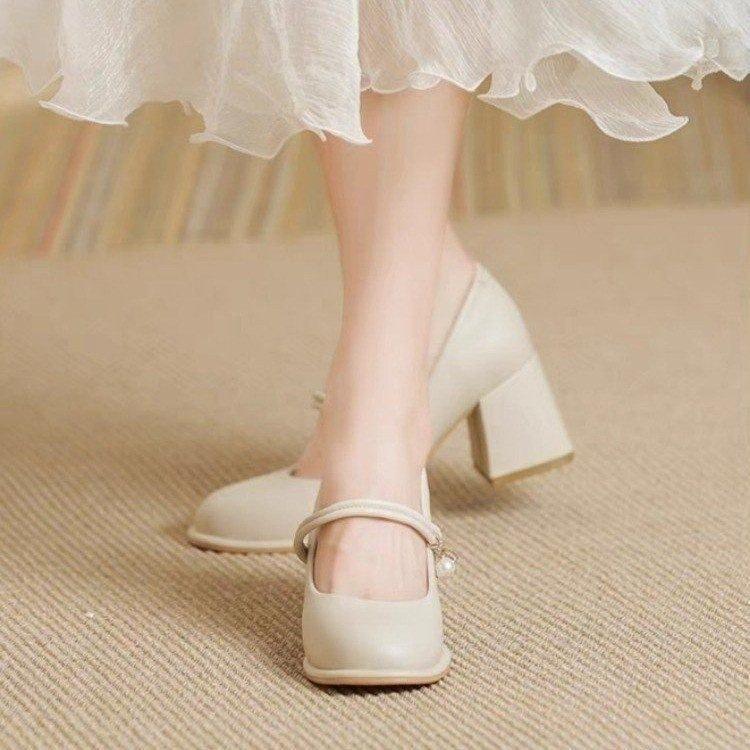 Zapatos Mary Jane Franceses de Otoño 2025 Zapatos de Moda para Mujer Temperamento Suave Ropa Casual Tacón Grueso Tacones Altos Mujer