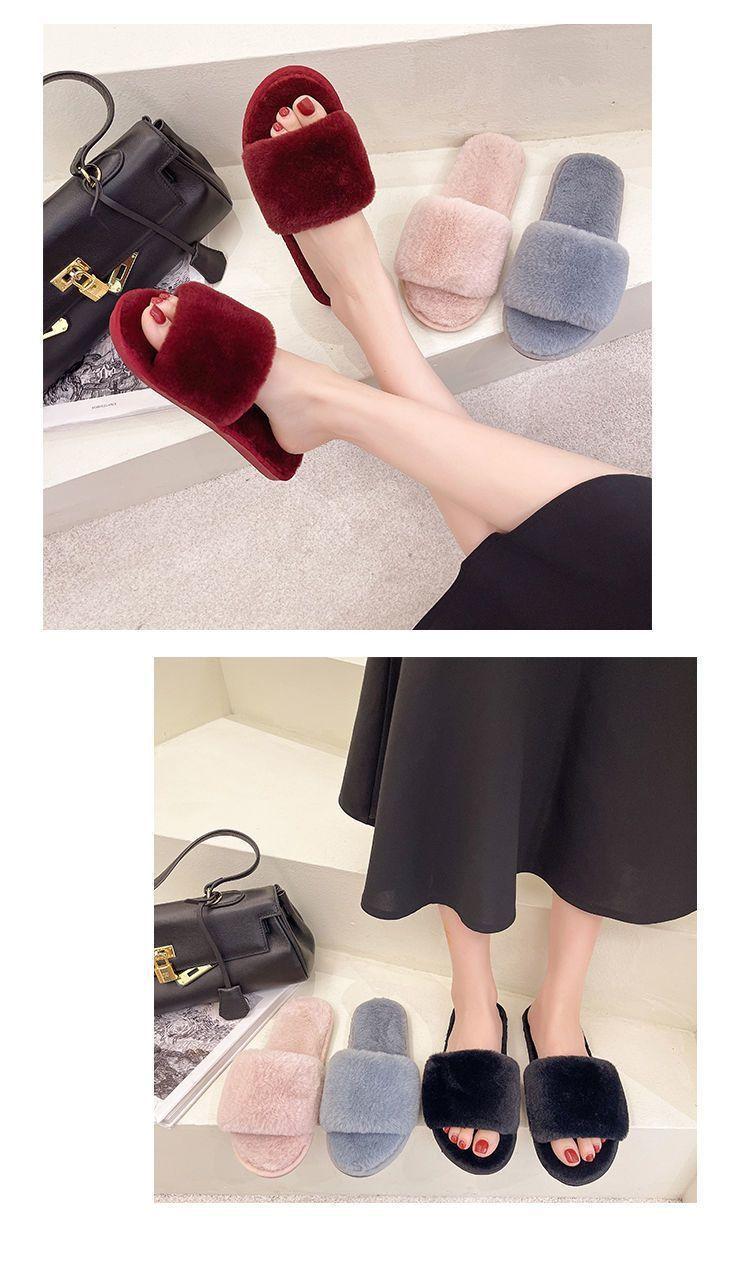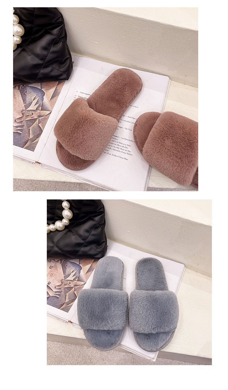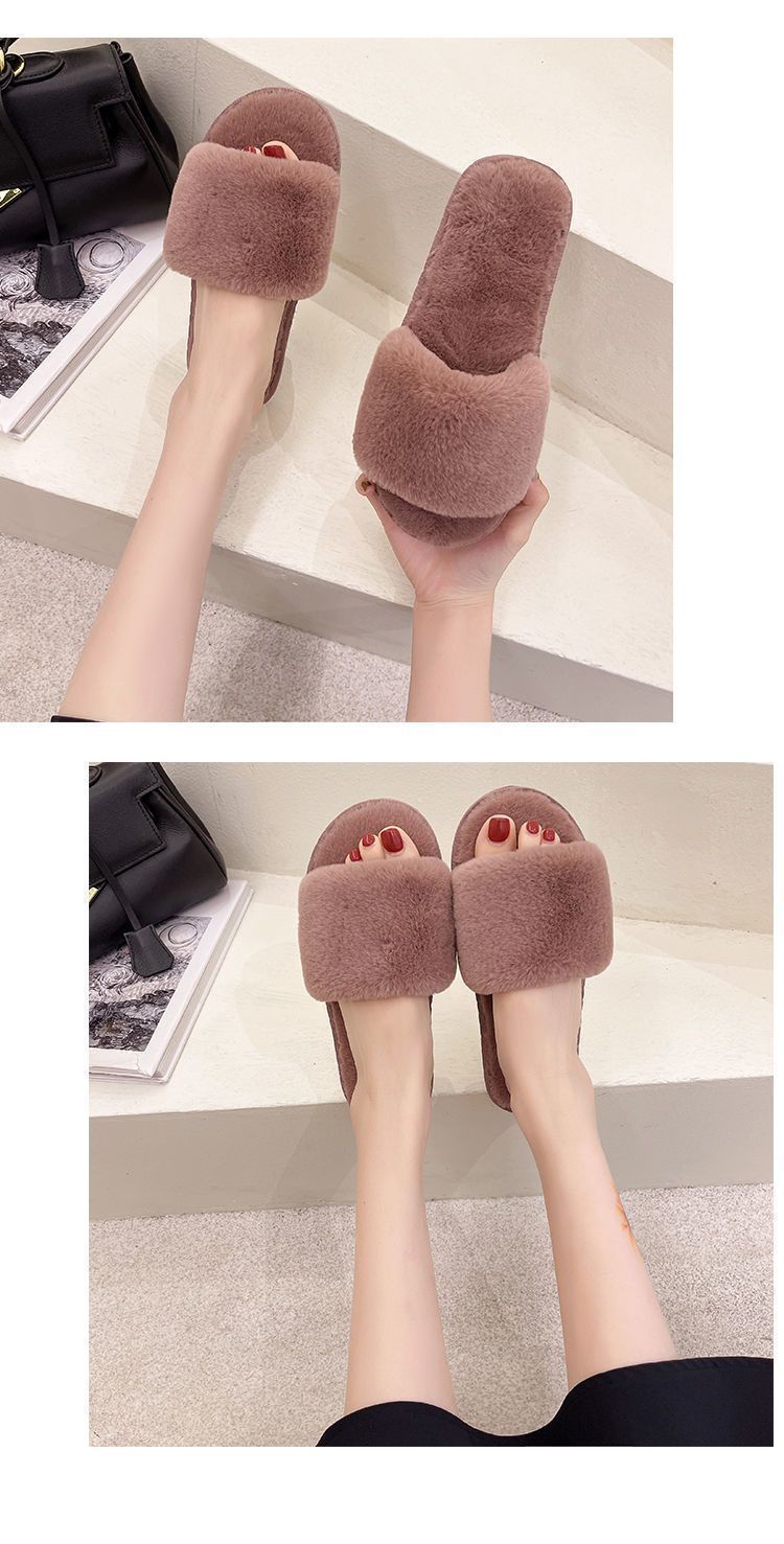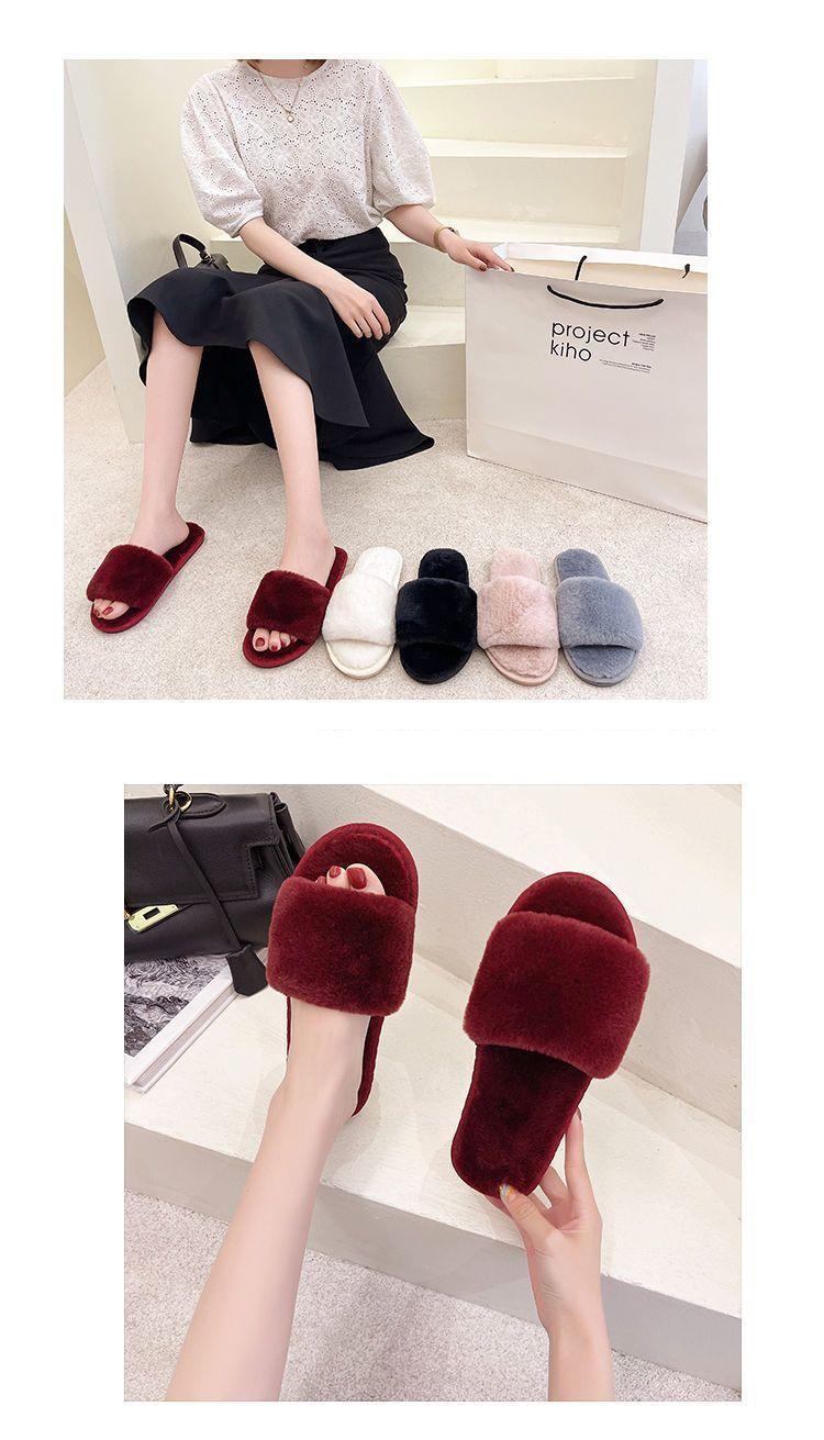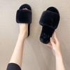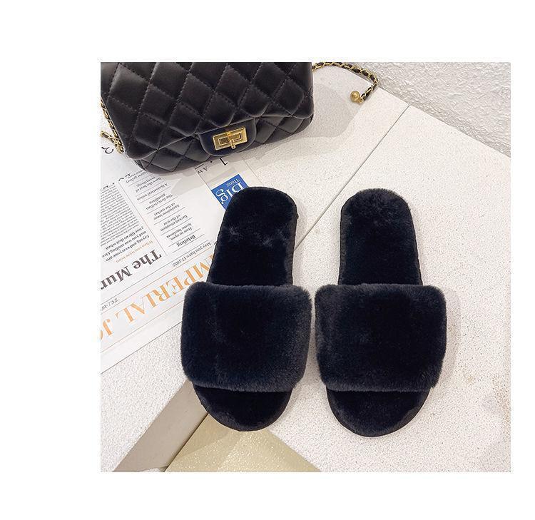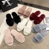 Pantuflas de algodón de moda para casa, interior, antideslizantes, cálidas, pantuflas de algodón para mujer 2025 otoño e invierno nuevas de piel, pantuflas de una palabra para mujer