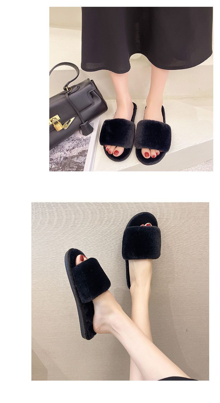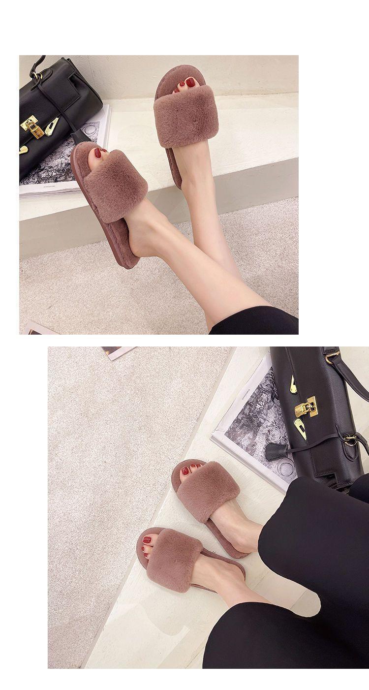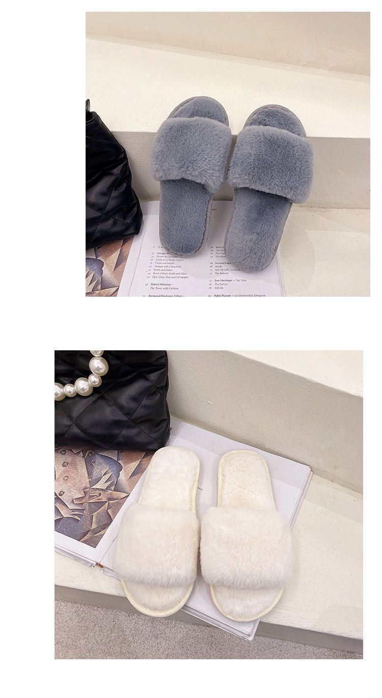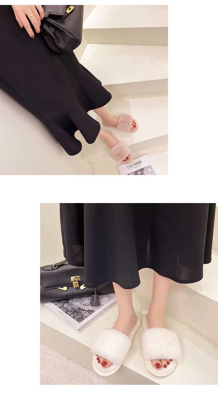 Pantuflas de algodón de moda para casa, interior, antideslizantes, cálidas, pantuflas de algodón para mujer 2025 otoño e invierno nuevas de piel, pantuflas de una palabra para mujer