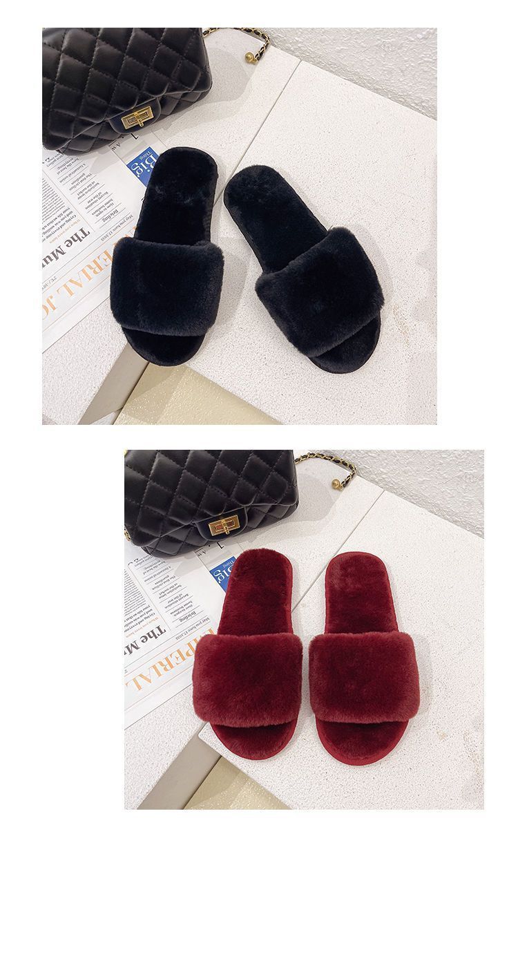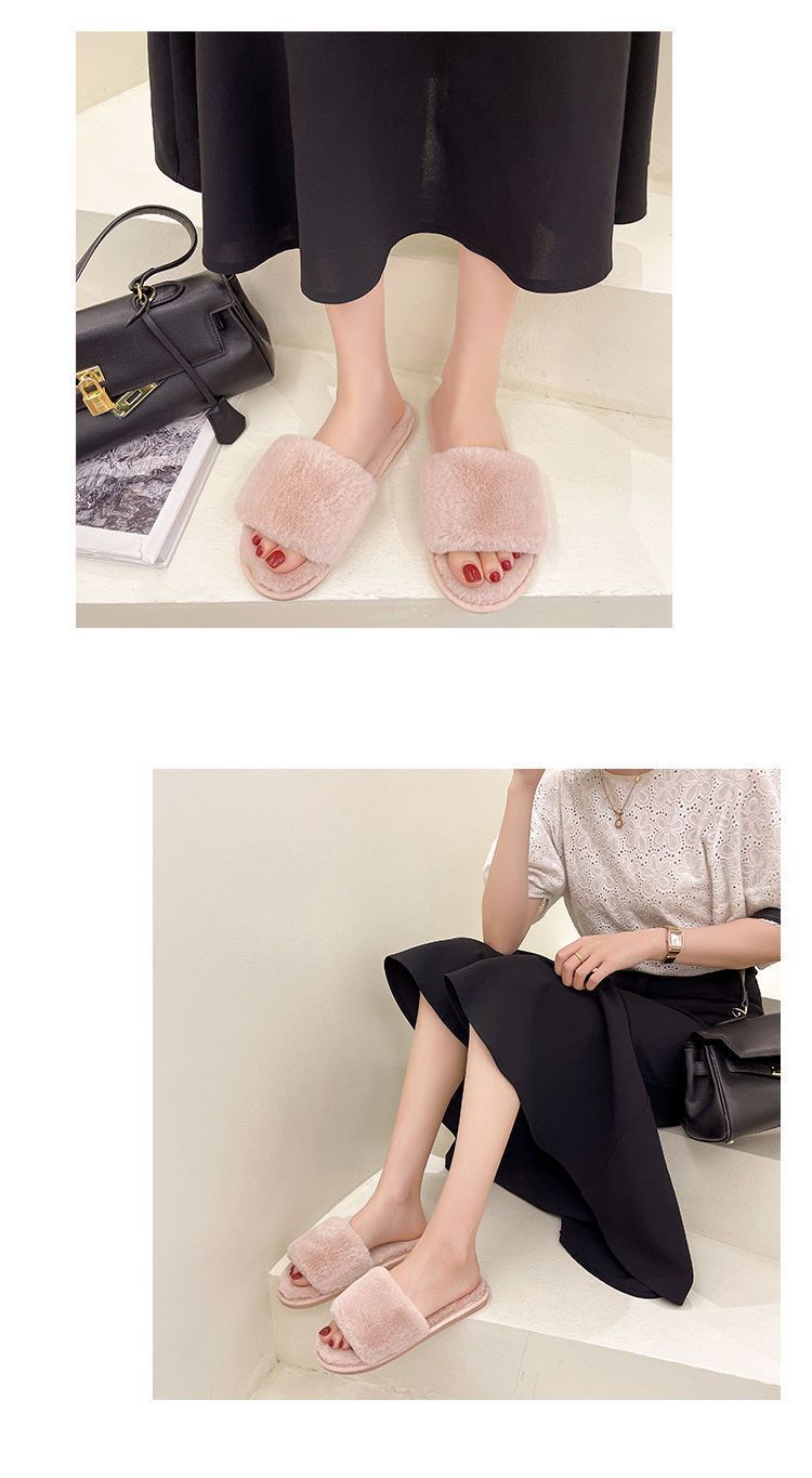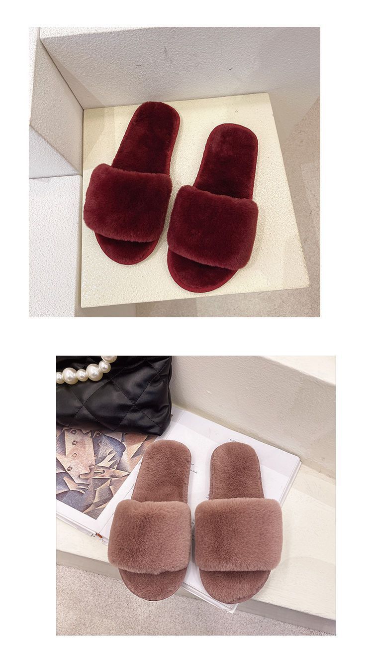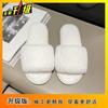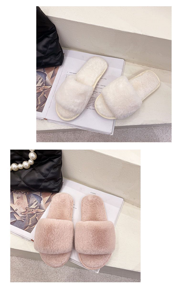 Pantuflas de algodón de moda para casa, interior, antideslizantes, cálidas, pantuflas de algodón para mujer 2025 otoño e invierno nuevas de piel, pantuflas de una palabra para mujer