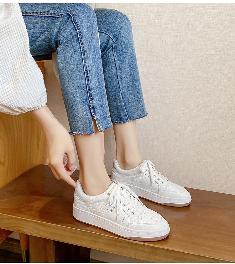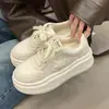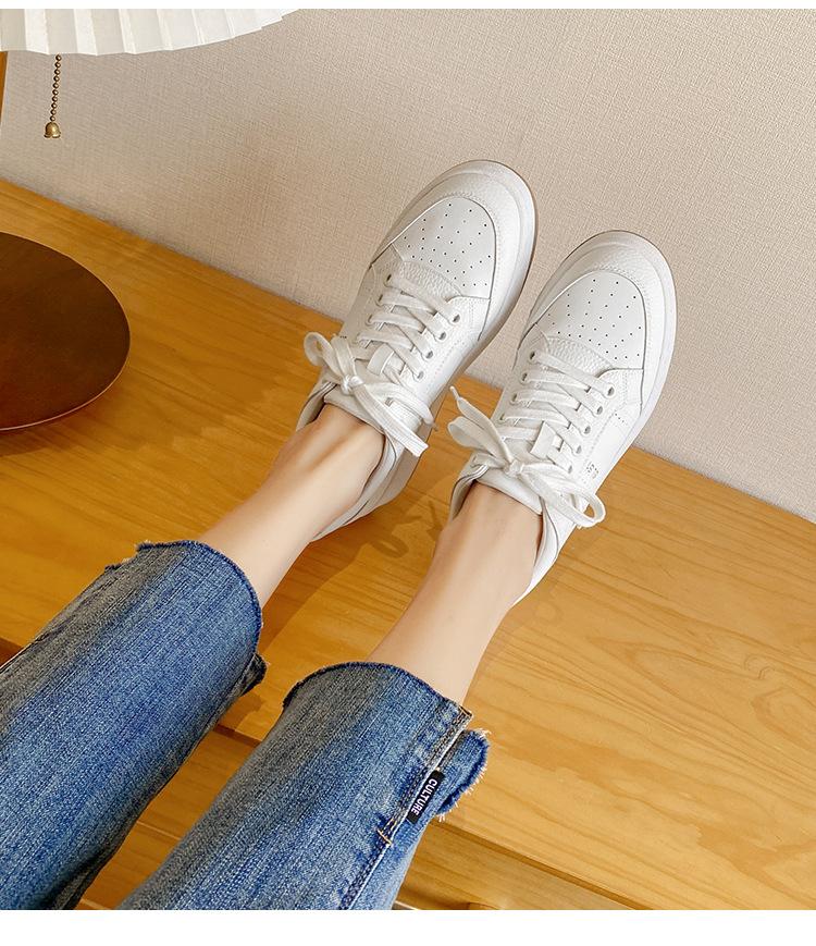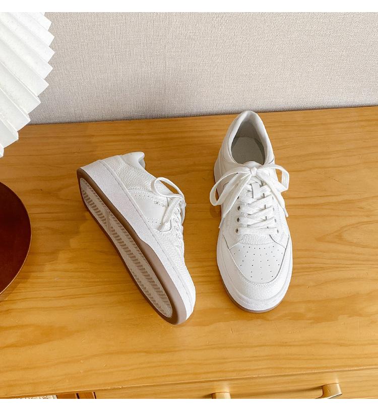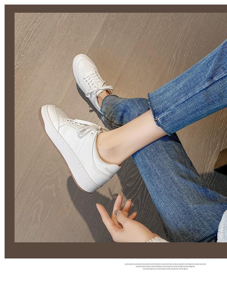 Zapatos blancos mujer 2025 otoño nuevo suela gruesa cómodos versátiles cuero genuino blancos bajos tenis casuales para mujer