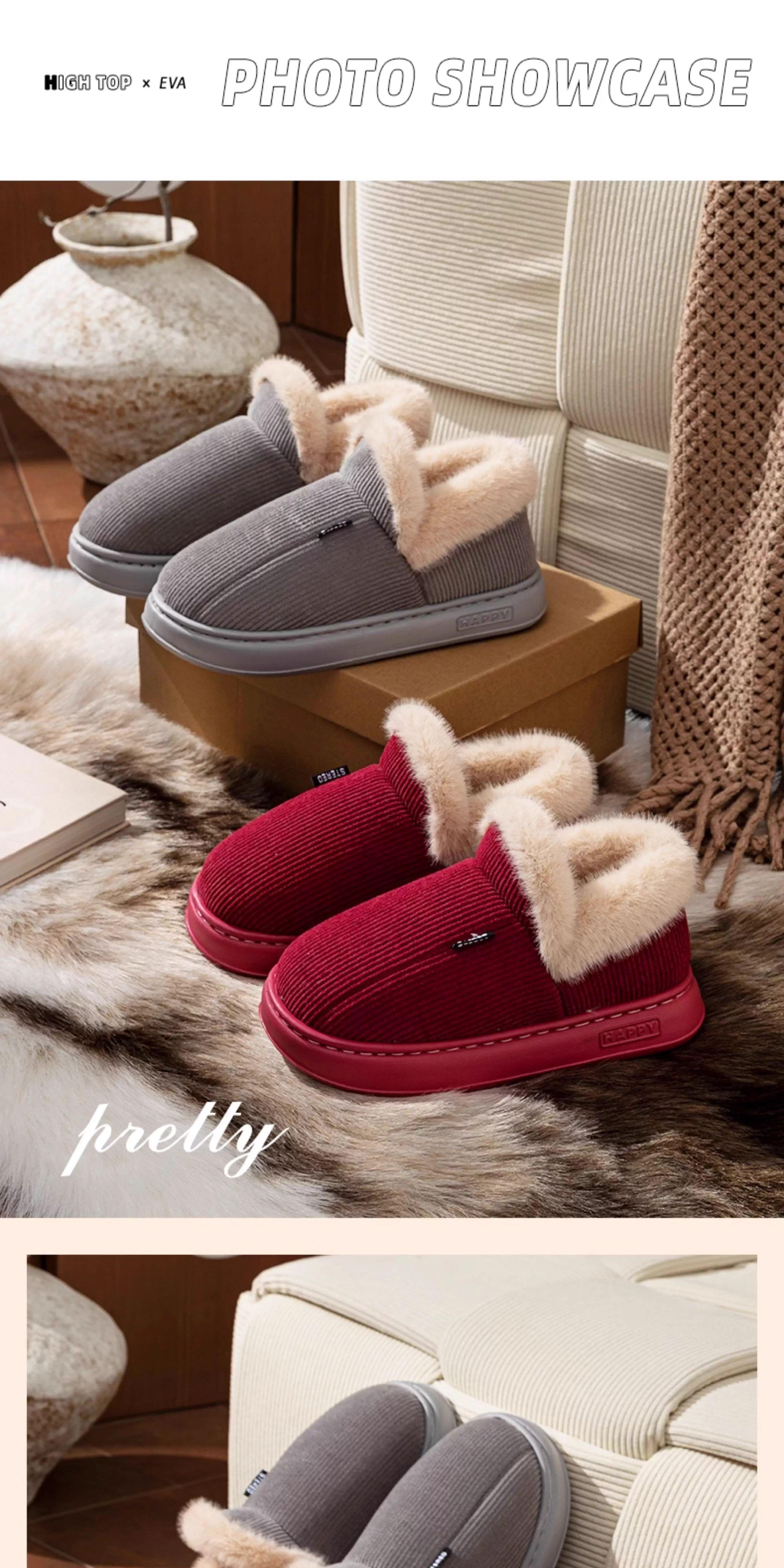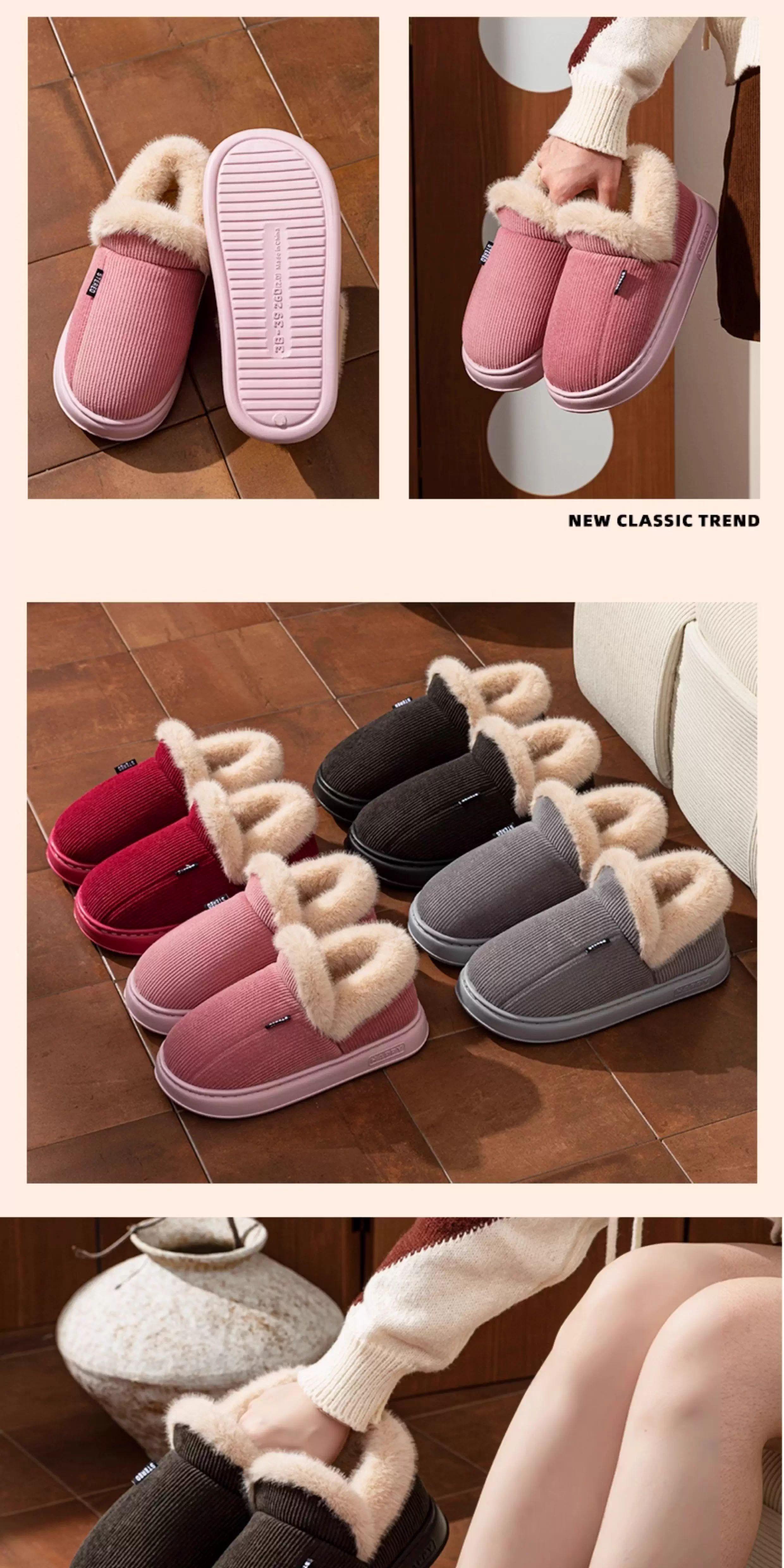 Zapatos de algodón para personas mayores para mujer invierno suela gruesa antideslizante interior hogar más terciopelo cálido mediana edad y ancianos zapatillas de algodón de talón cerrado para hombre