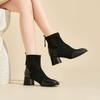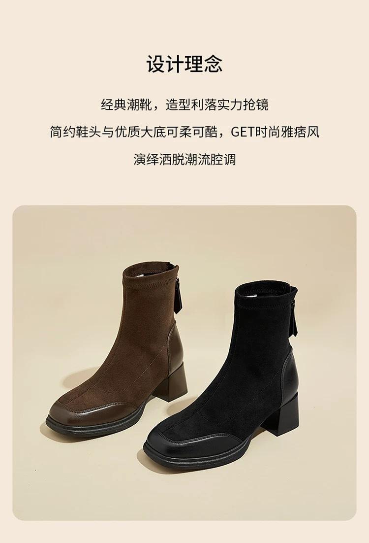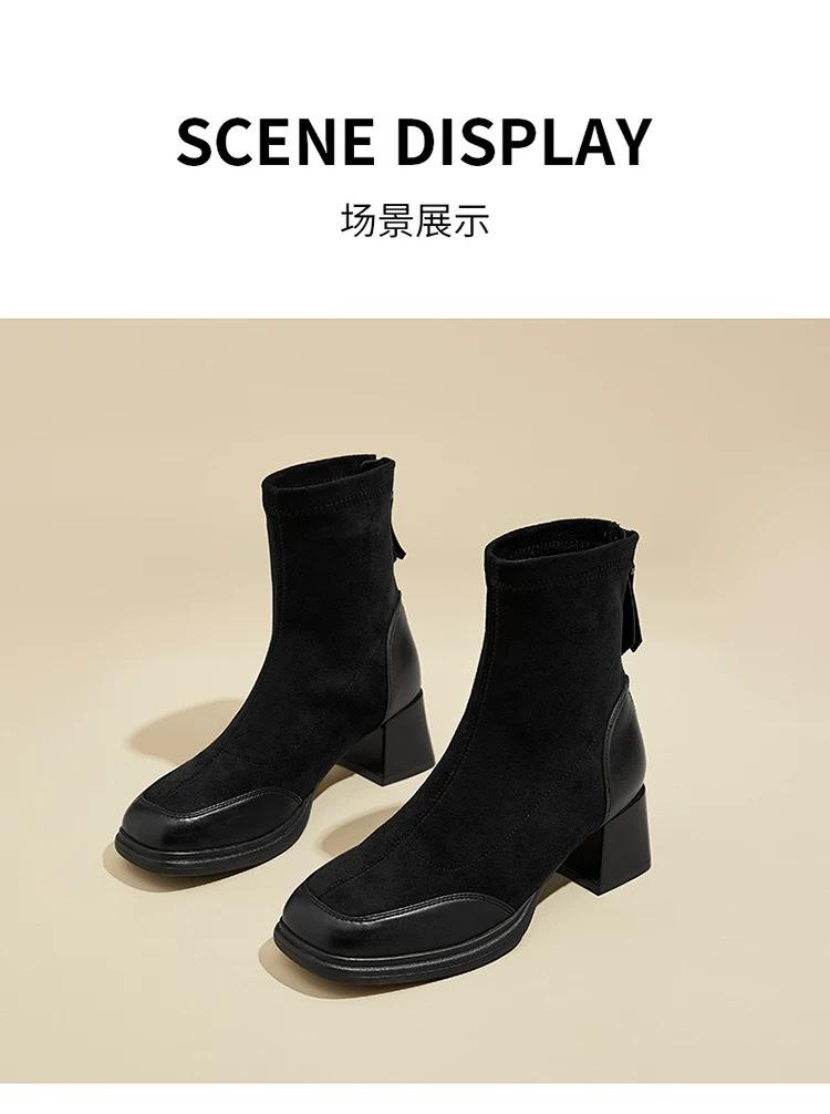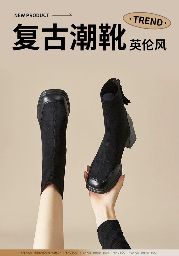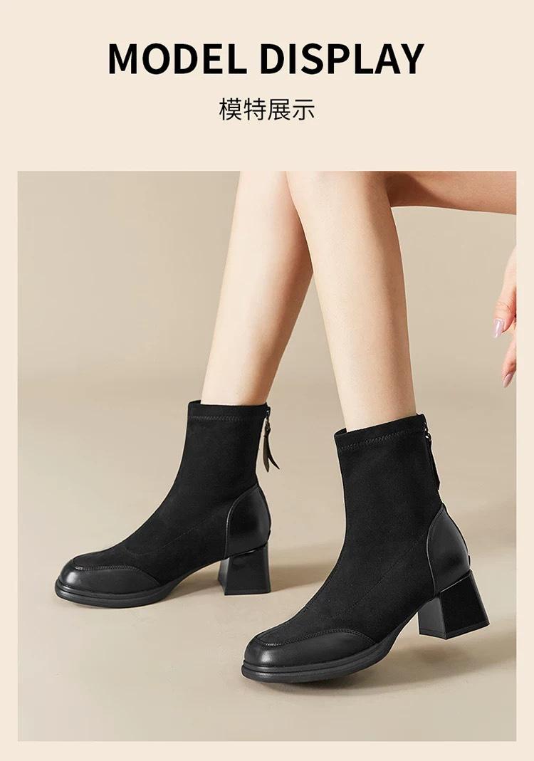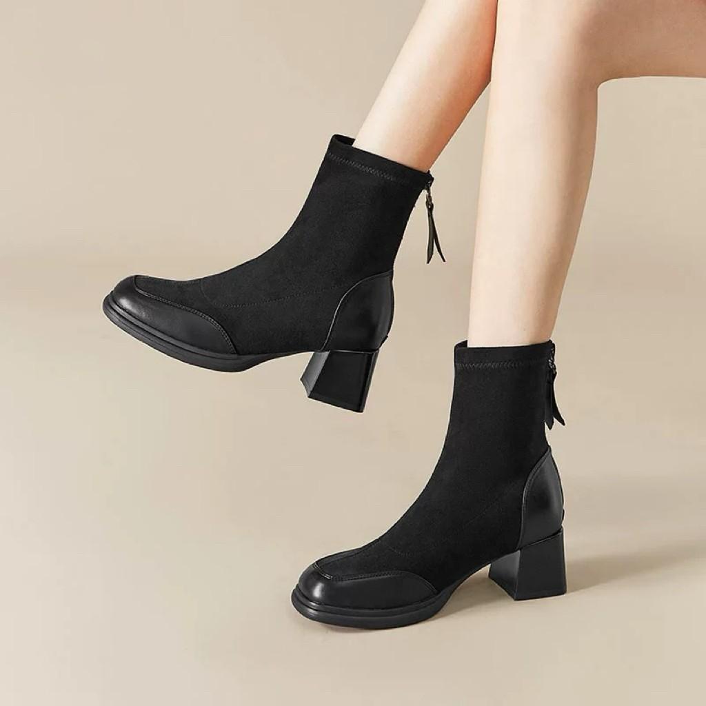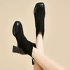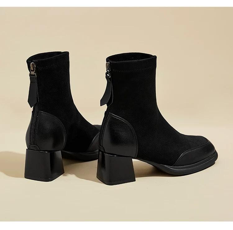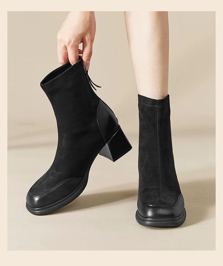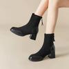 Otoño/Invierno 2025 Nuevos Cómodos Botines Martin de Gamuza Estilo Coreano Versátiles Tacón Alto Botas de Mujer Punta Redonda Suela Gruesa Botines de Media Caña para Mujer