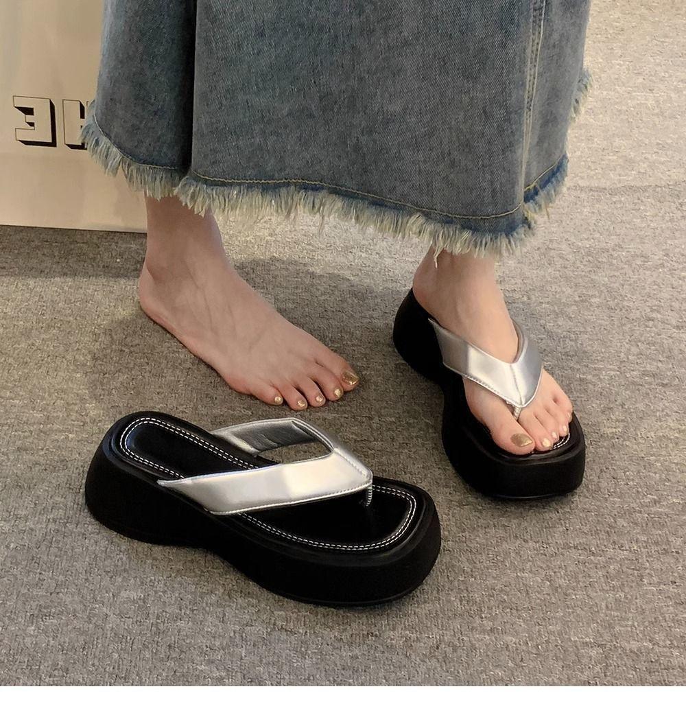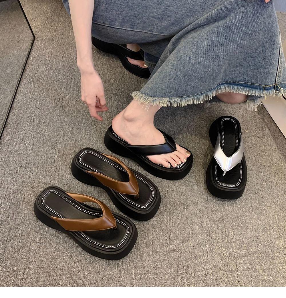 Nuevo Verano Ropa Exterior de Suela Gruesa Mismo Estilo Chanclas Zapatillas de Playa Mujeres 2025 Nuevo Dedo de Clip Moda Casual Aumento de Altura Zapatillas Frescas
