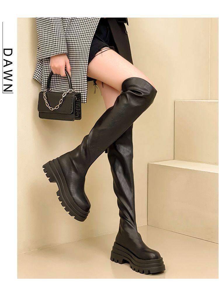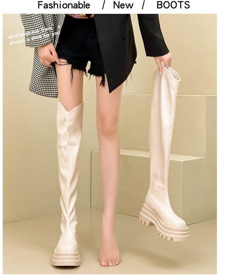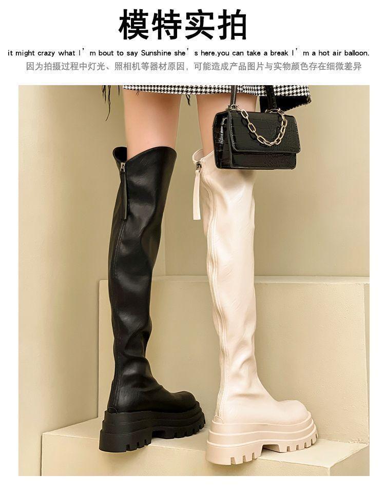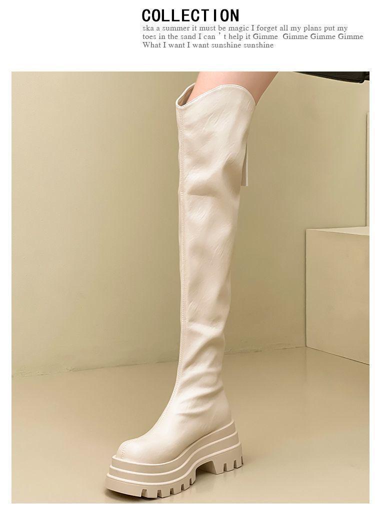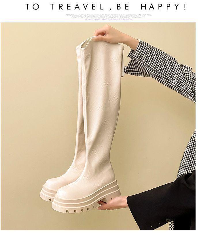 Botas francesas de tacón grueso para mujer, botas largas 2025 otoño e invierno nuevas versátiles estilo coreano sin cordones, botas de moda versátiles, botas ajustadas