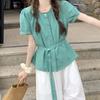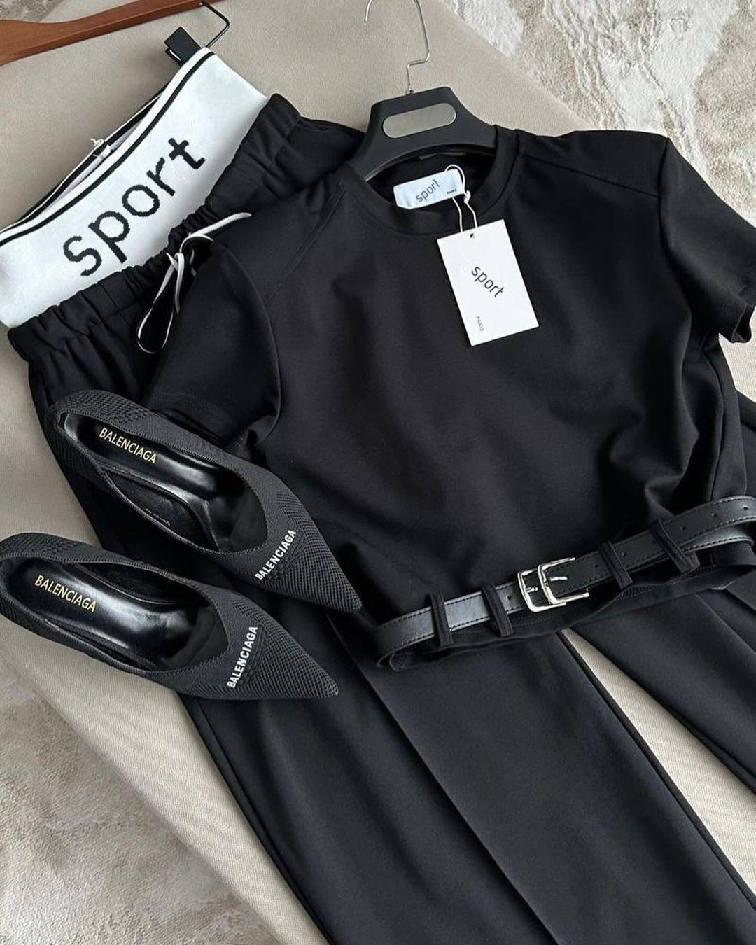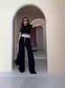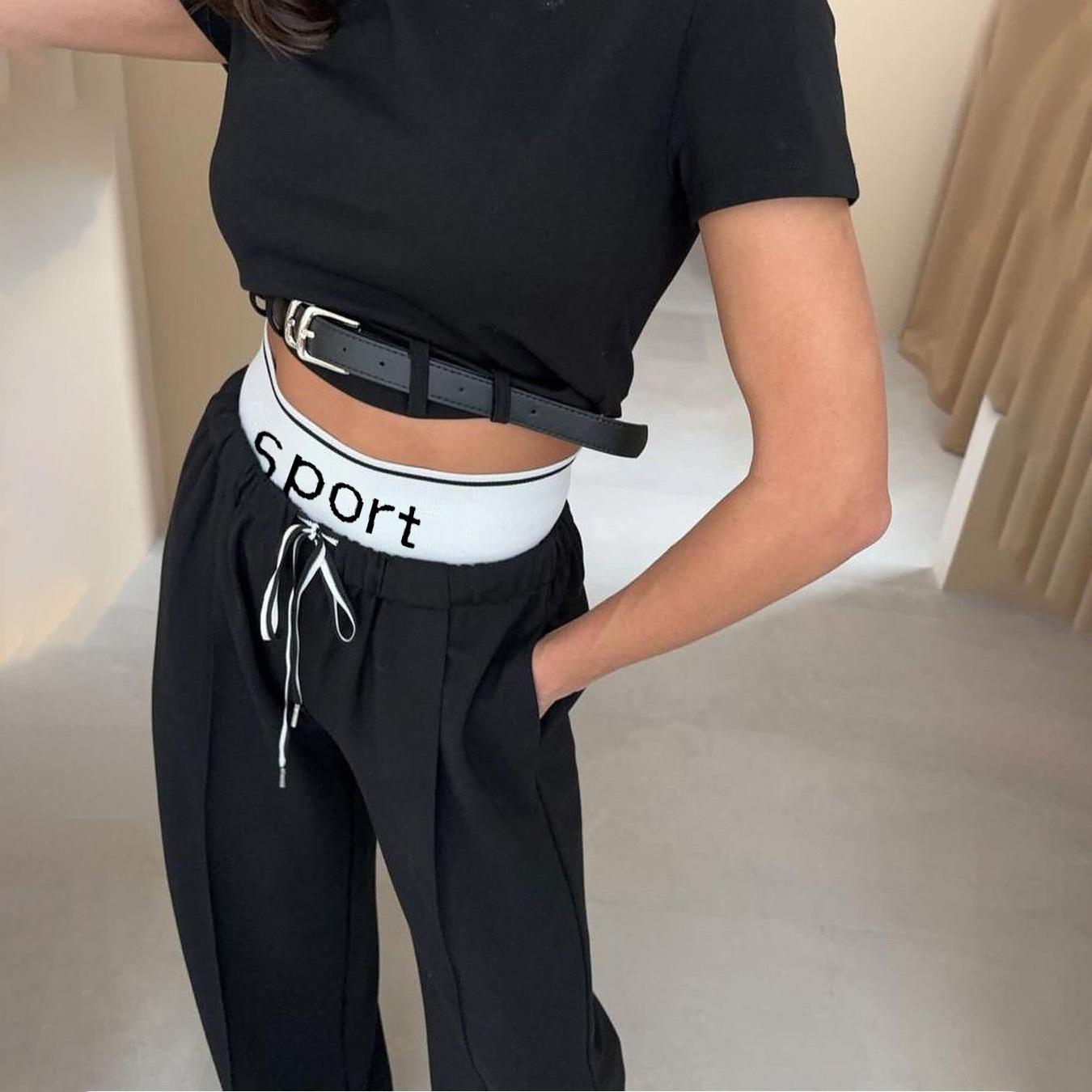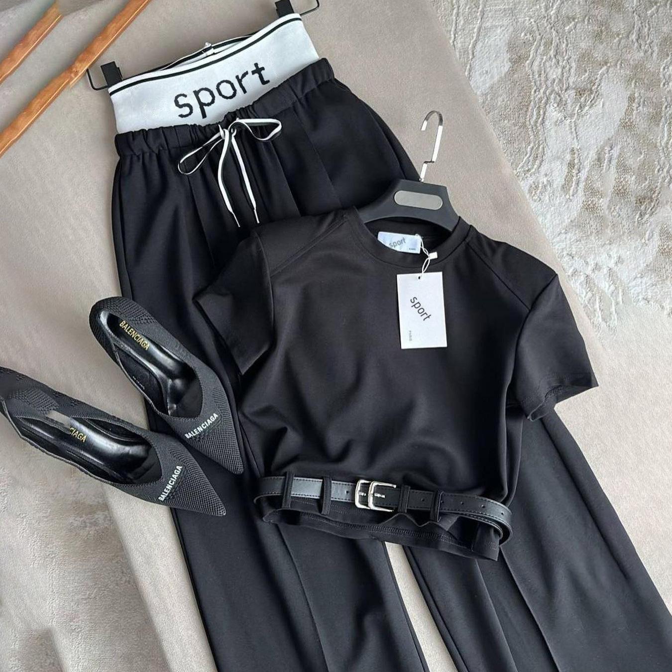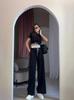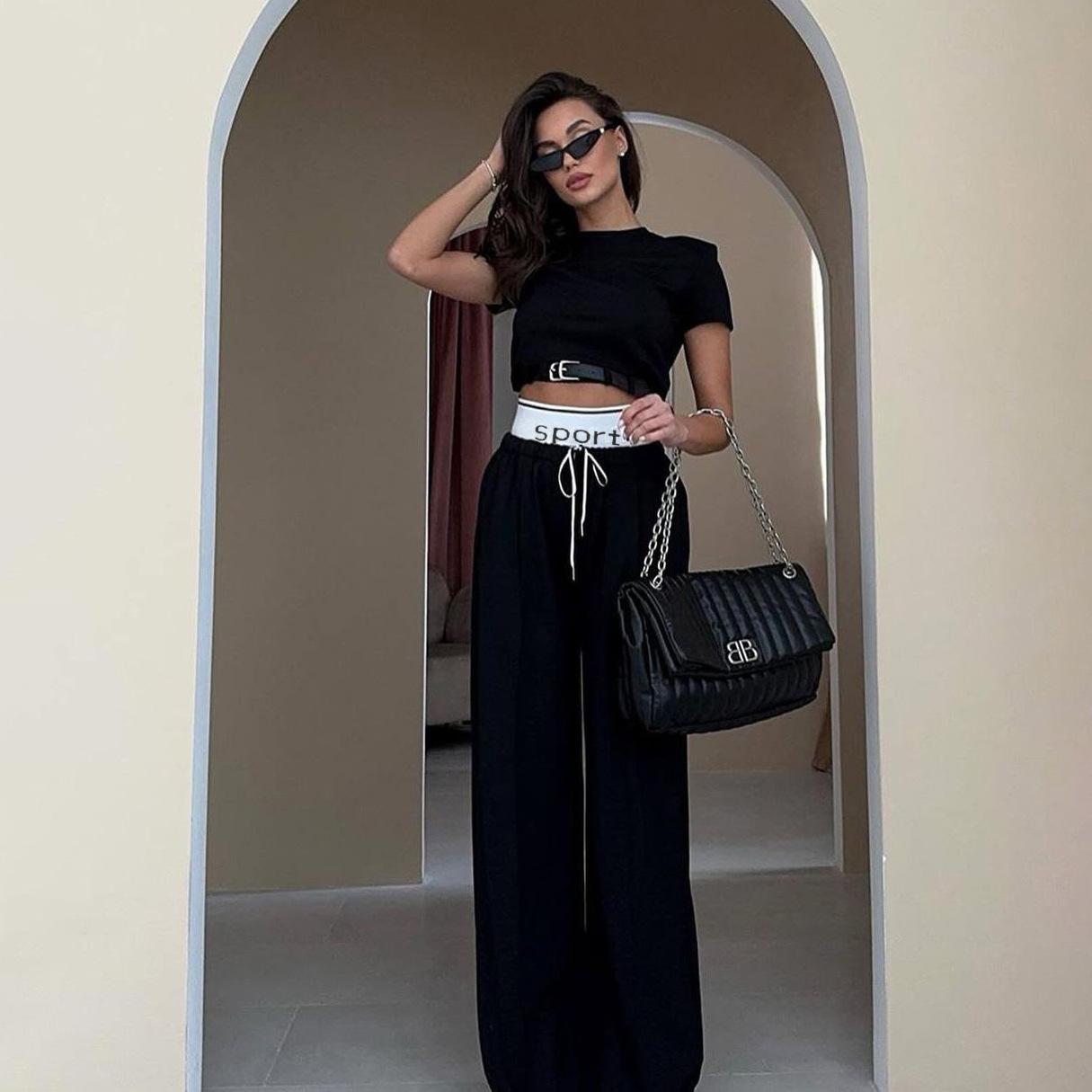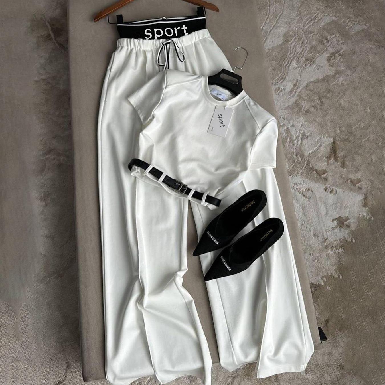 Nombre: Conjunto Europeo y Americano Ropa de Mujer de Alta Gama Primavera Top Corto de Manga Corta Camiseta Cintura Alta Pierna Recta Holgado Adelgazante Pantalón Largo Mujer