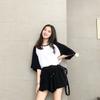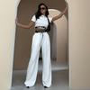 Traje europeo y americano ropa de mujer de alta calidad Primavera corto recortado camiseta de manga corta pantalones rectos sueltos adelgazantes de cintura alta para mujer