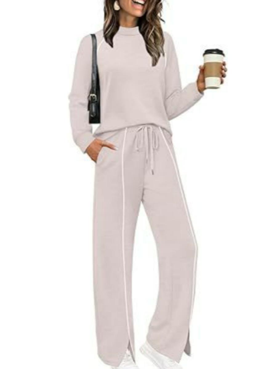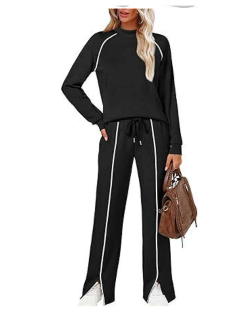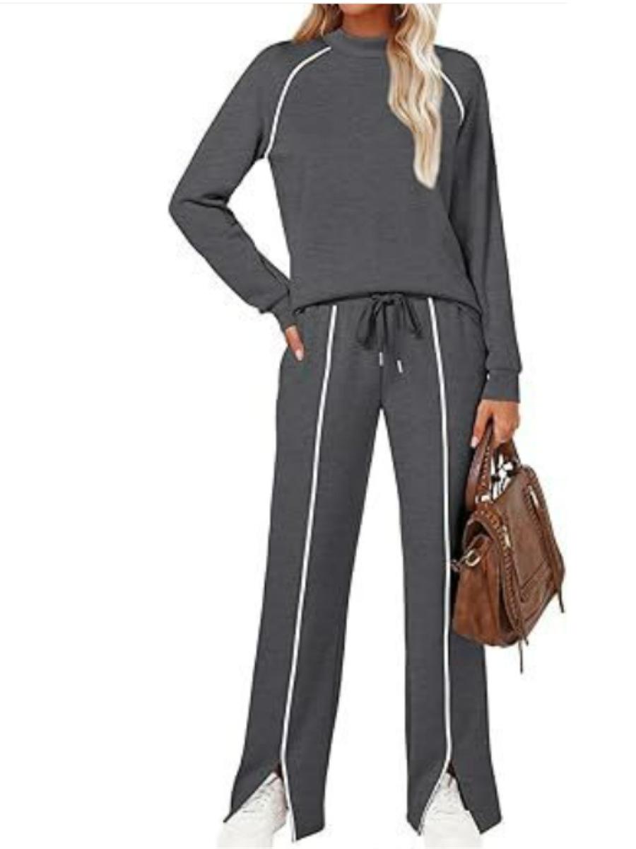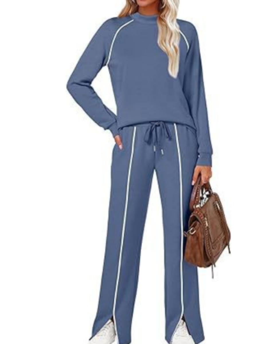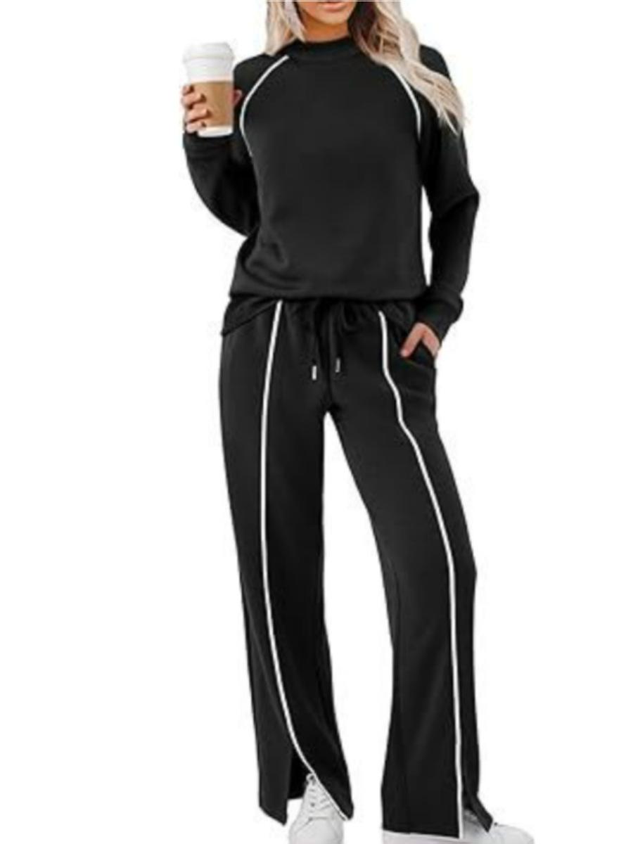 2025 Comercio Exterior Europeo y Americano Transfronterizo Amazon Más Vendido Cuello Redondo Manga Larga Pantalones Elásticos Pierna con Abertura Conjunto Casual de Sudadera Mujer
