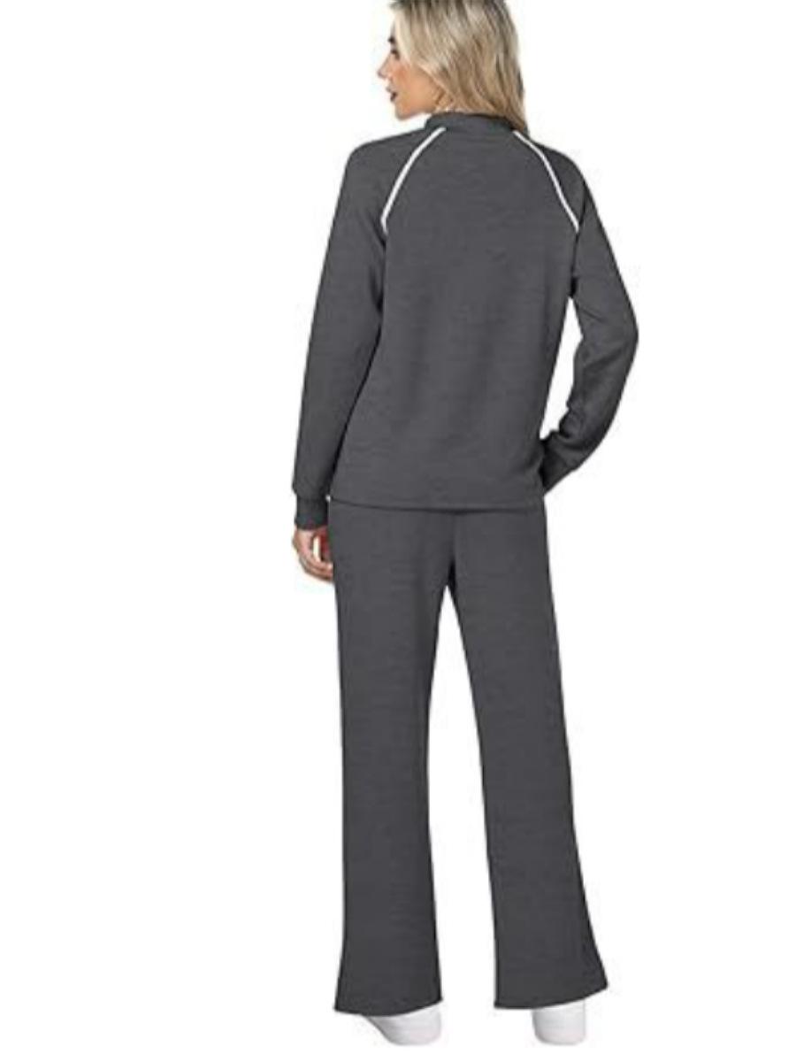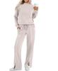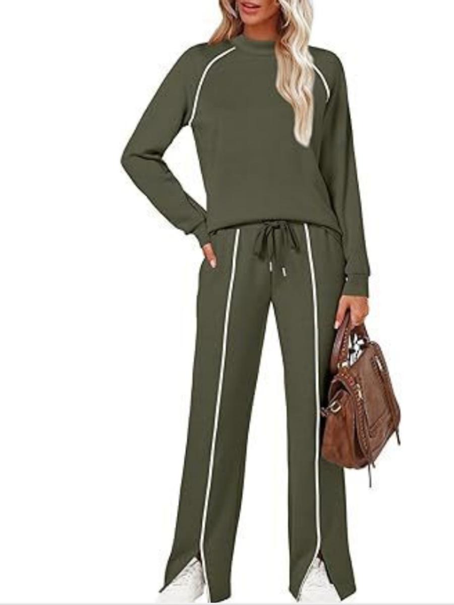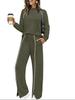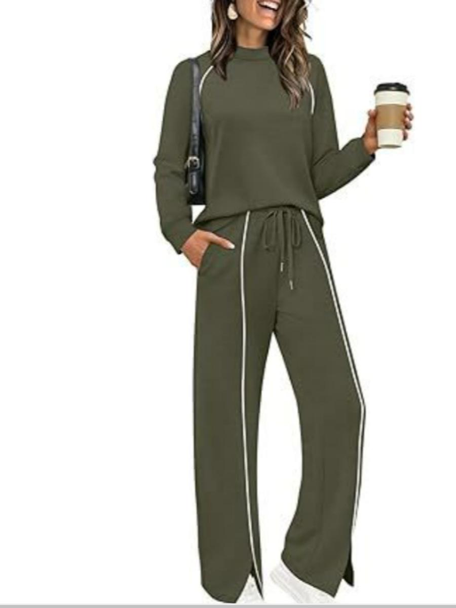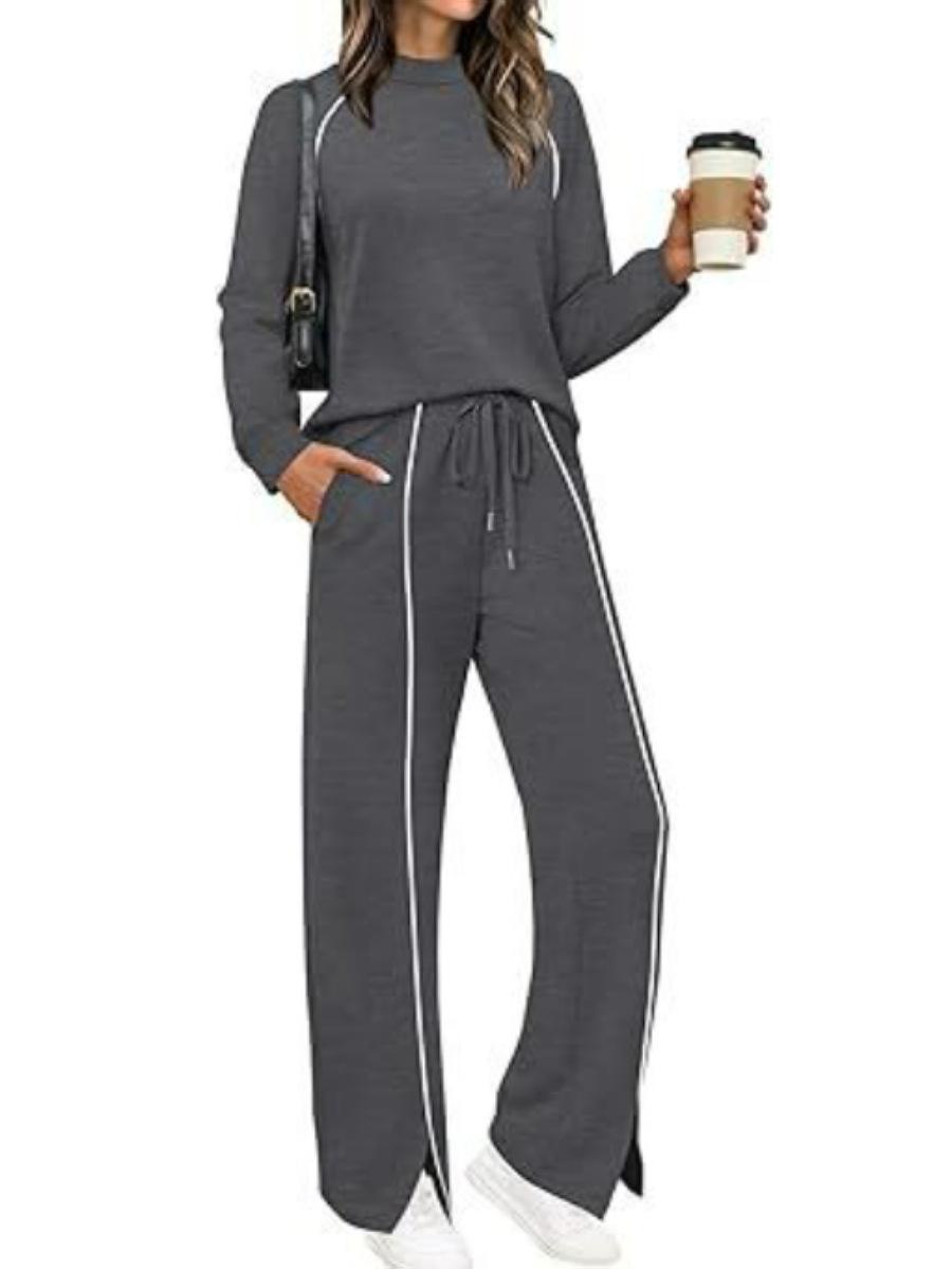 2025 Comercio Exterior Europeo y Americano Transfronterizo Amazon Más Vendido Cuello Redondo Manga Larga Pantalones Elásticos Pierna con Abertura Conjunto Casual de Sudadera Mujer