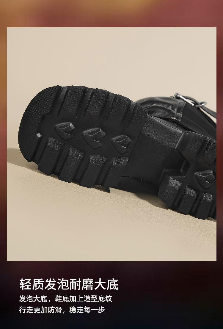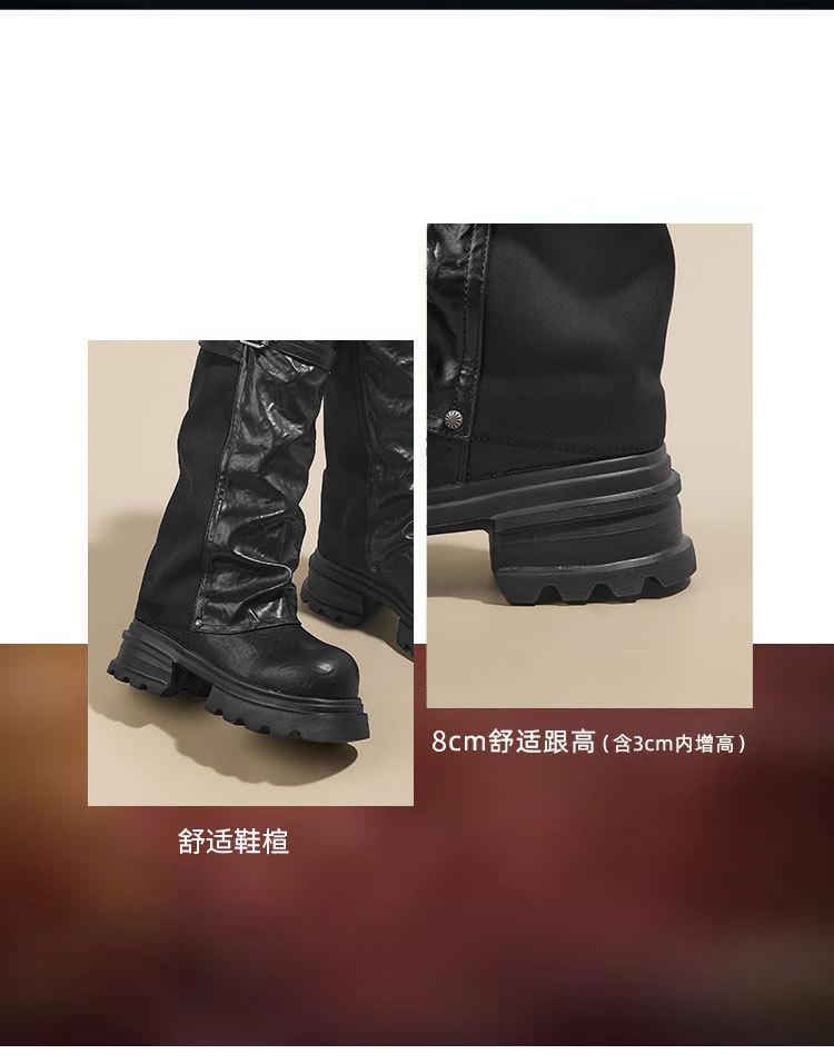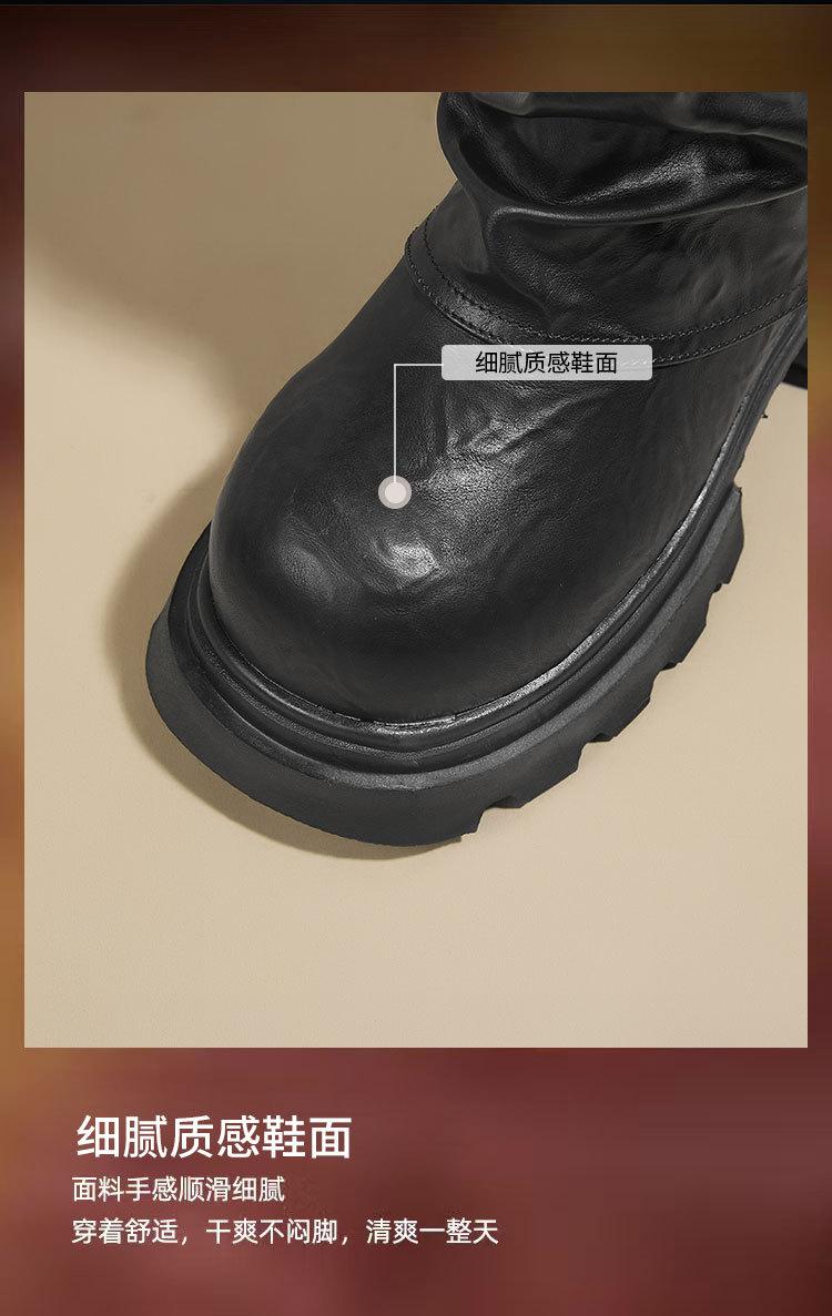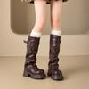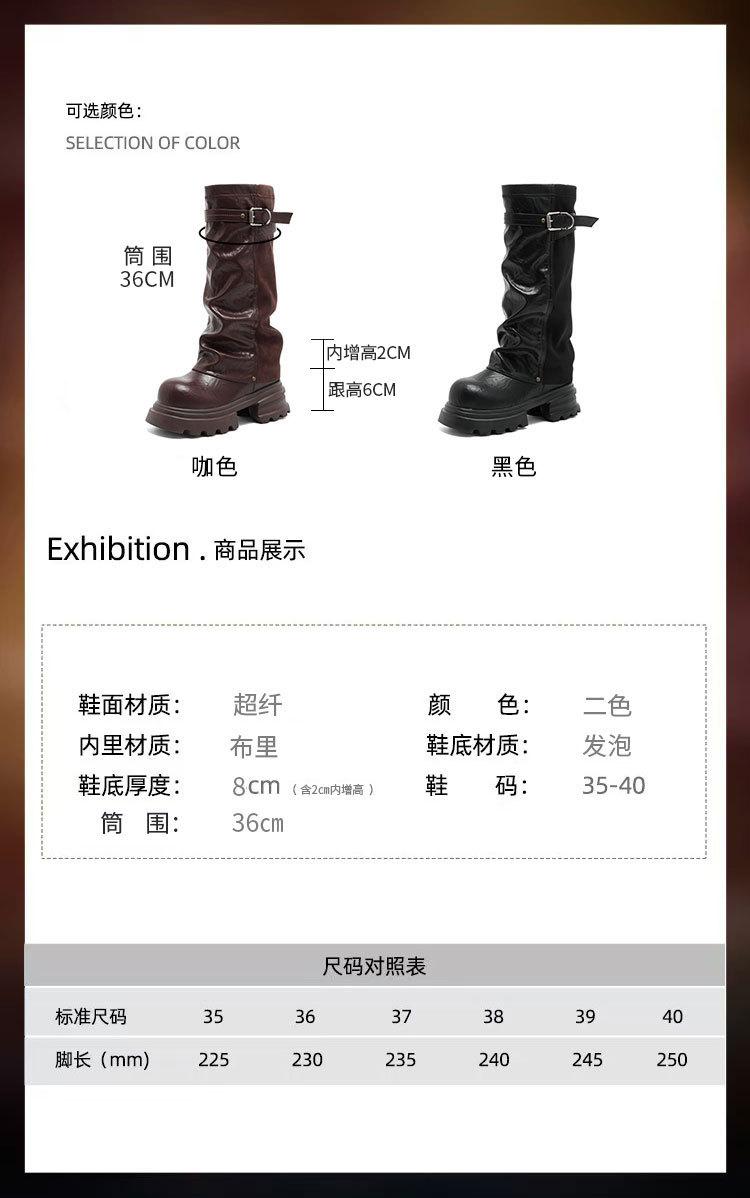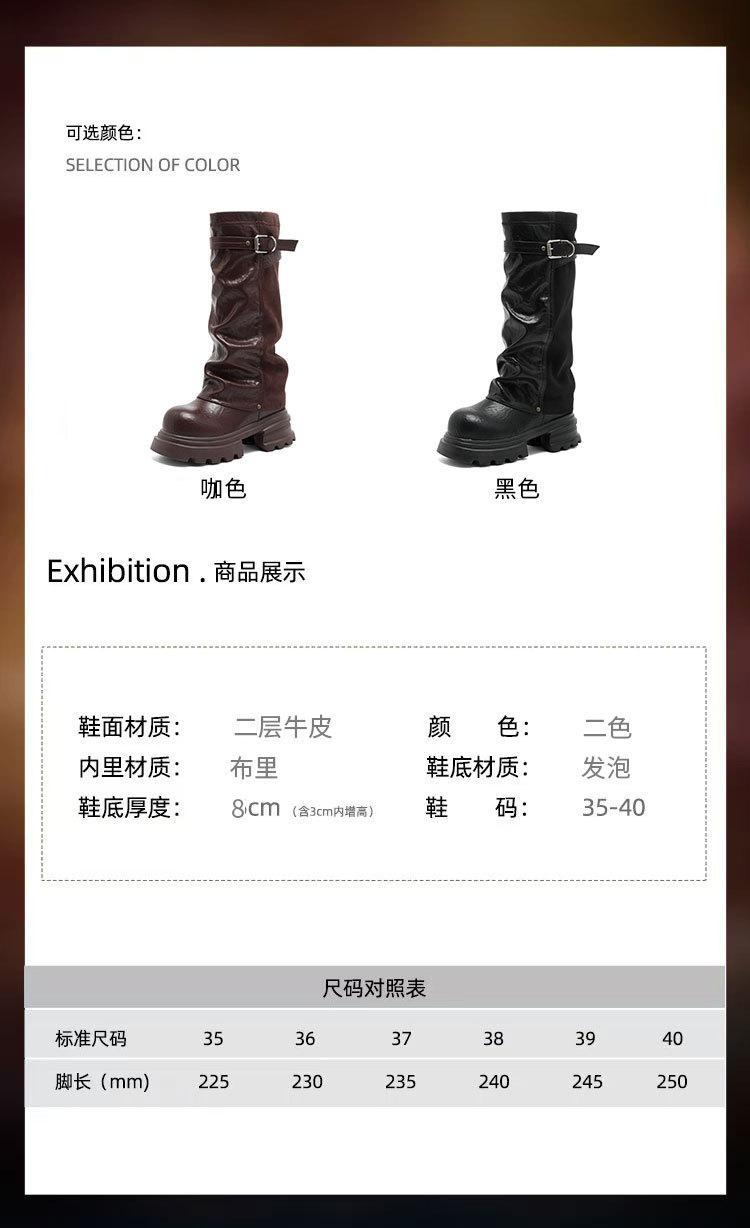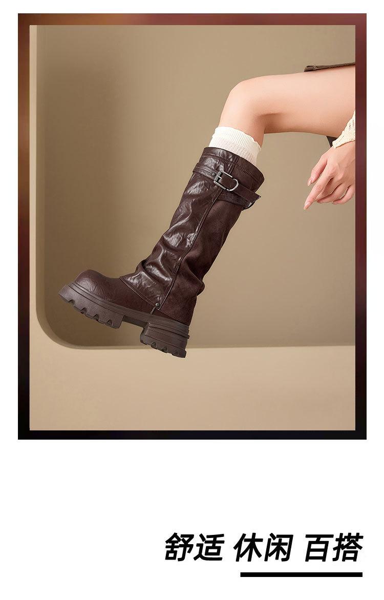 Botas Western de Hebilla de Cinturón de Suela Gruesa para Mujer 2025 Nuevas Botas Versátiles por Encima de la Rodilla Botas Arrugadas Caídas Botas de Caña Media