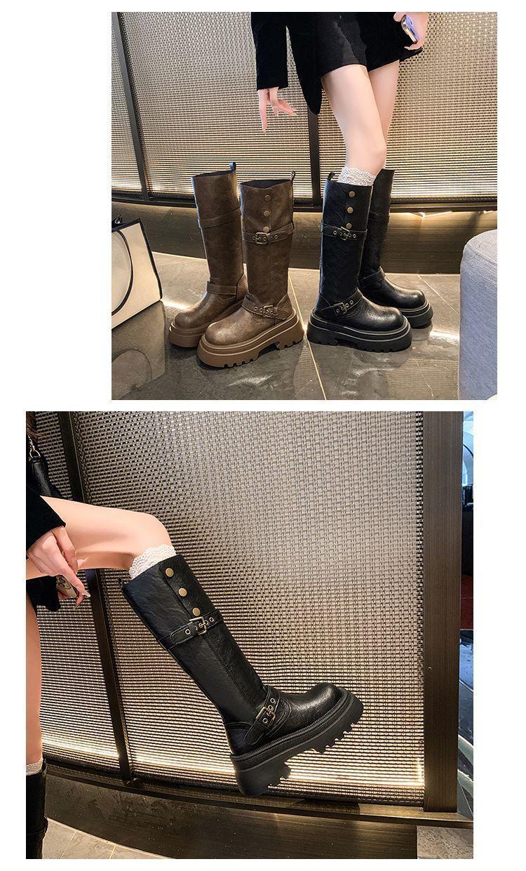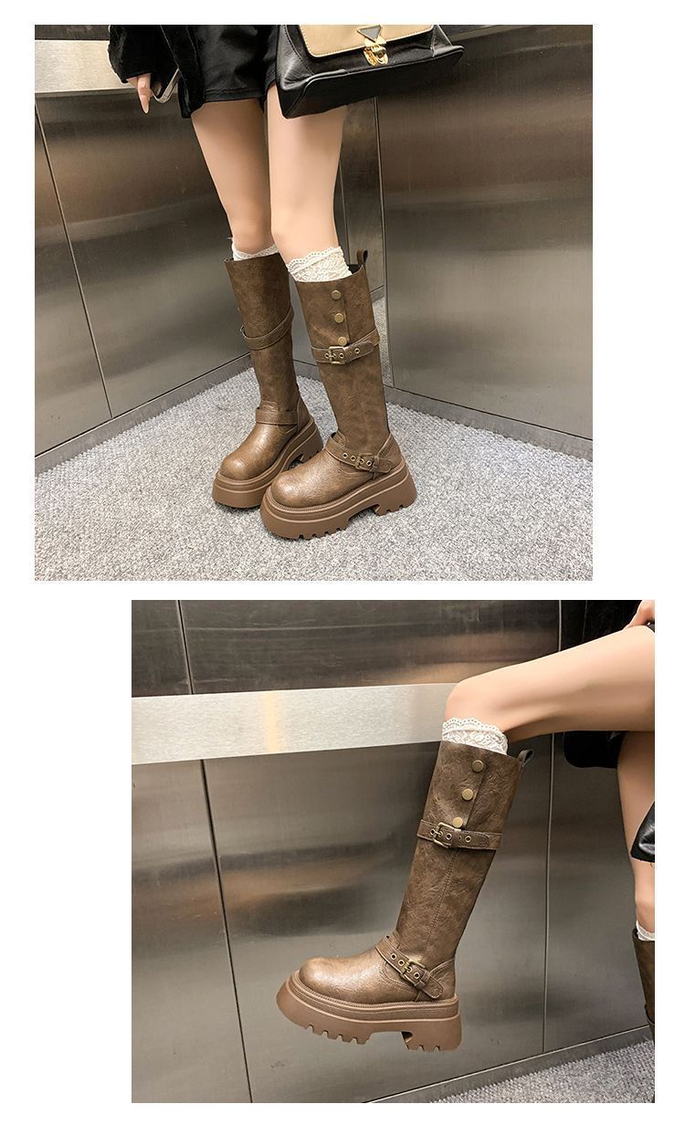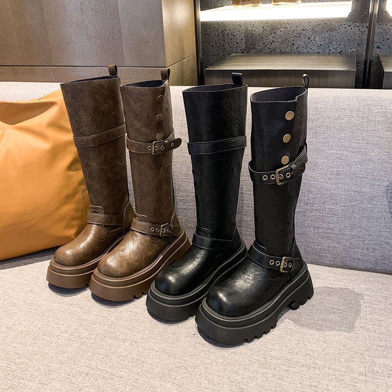 Botas Martin Casuales 2025 Otoño/Invierno Nueva Moda Versátiles Persona Pequeña Estilo Retro Suela Gruesa Botas de Caña Alta Mujer