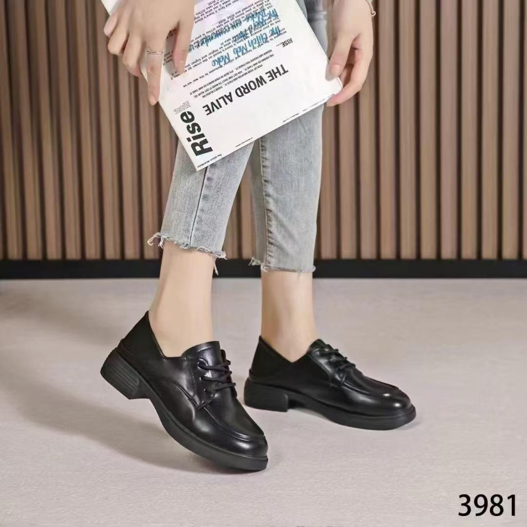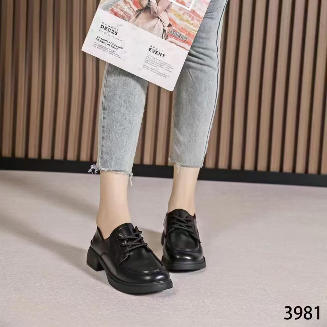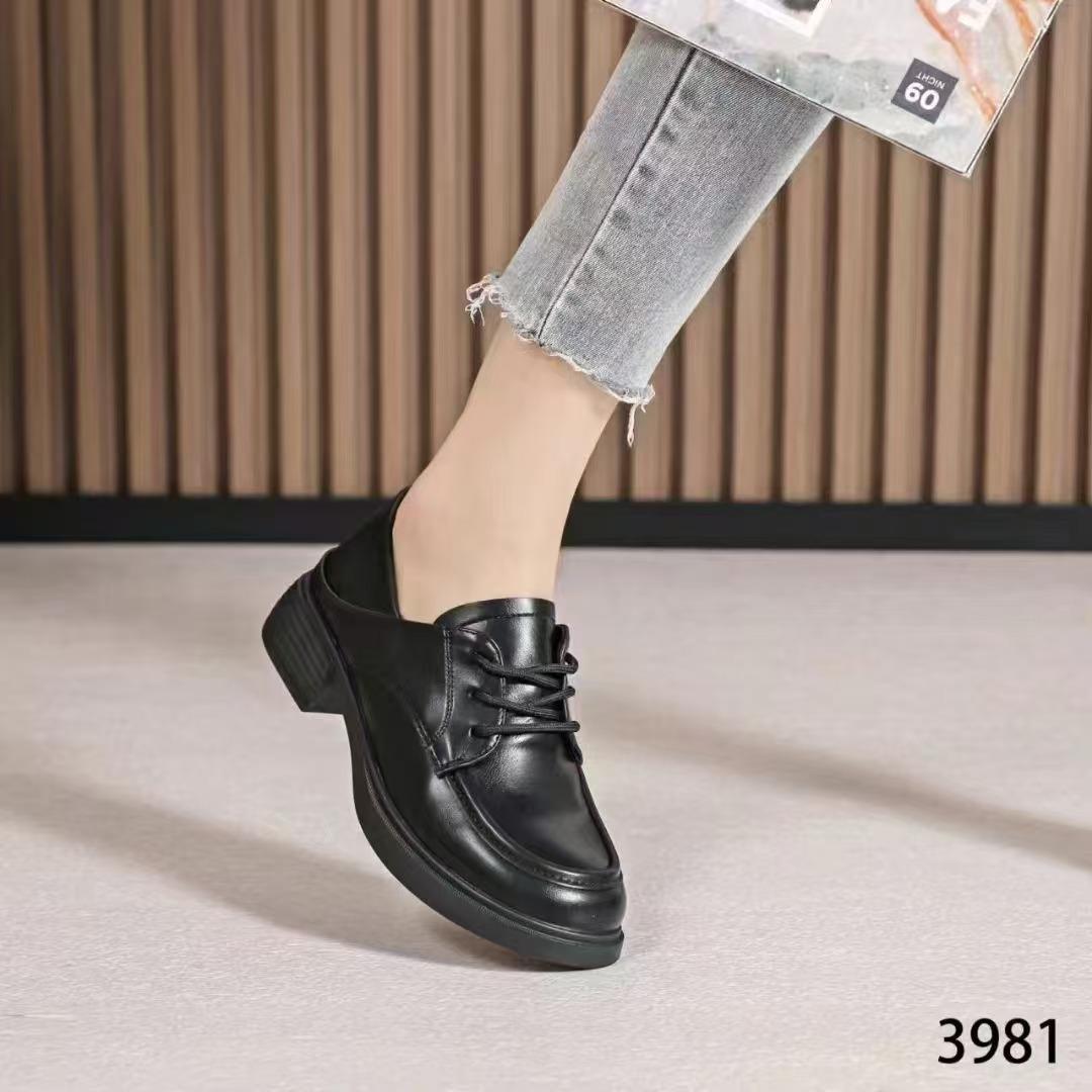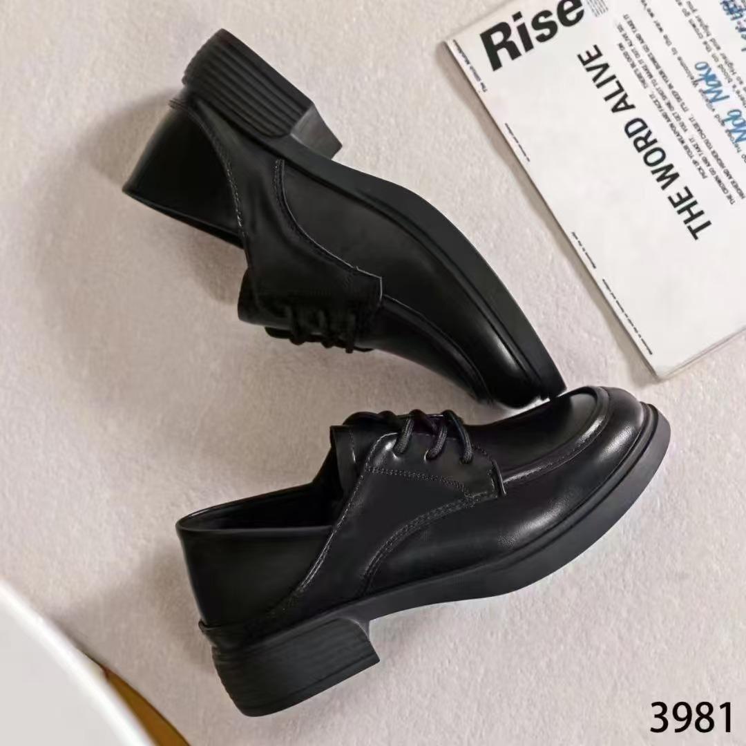 Mocasines Mate de Tacón Grueso Slip-On Zapatos Pequeños de Cuero 3981 Ropa de Trabajo