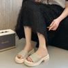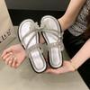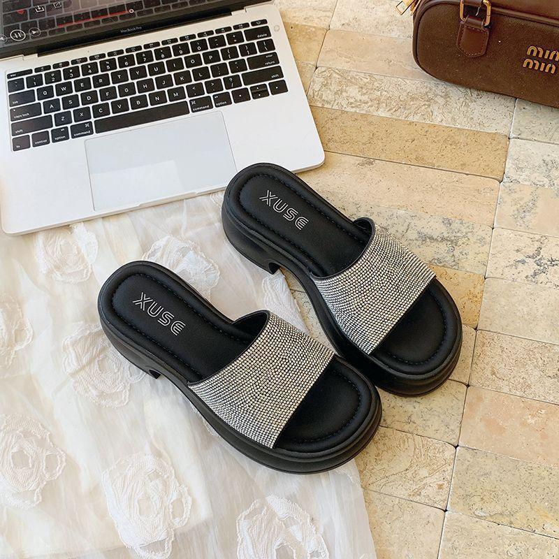 Sandalias de Playa de Moda con Pedrería de Una Tira y Punta Descubierta 2025 Verano Nuevas Sandalias de Pedrería de Suela Gruesa para Uso Exterior
