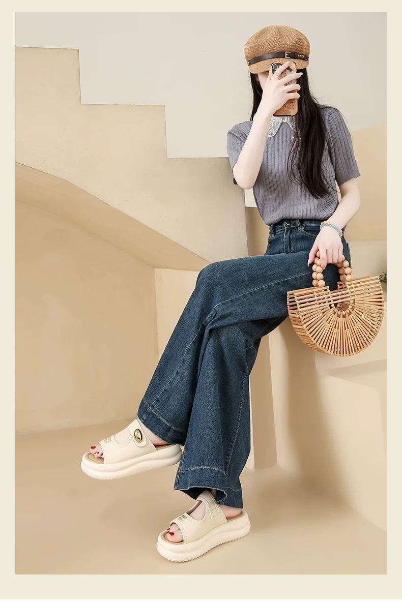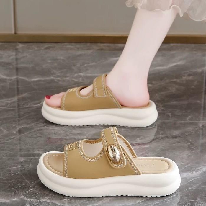 Pantuflas Antideslizantes de Suela Gruesa para Moda de Exterior para Mujer 2025 Verano Nuevo Casual Versátil Pantuflas de Playa Pantuflas con Altura