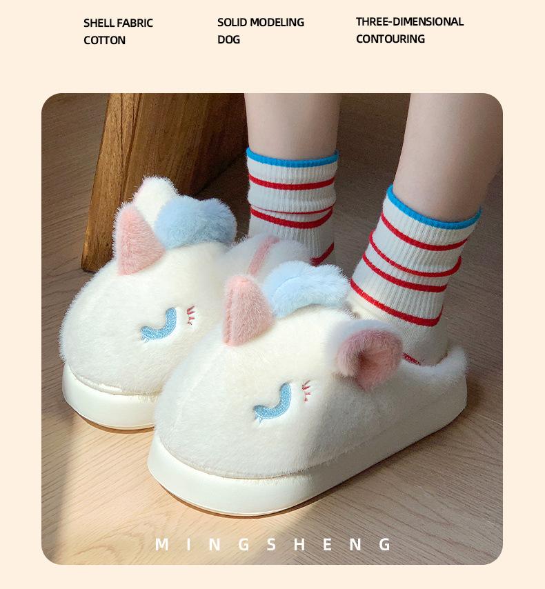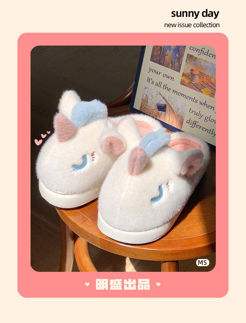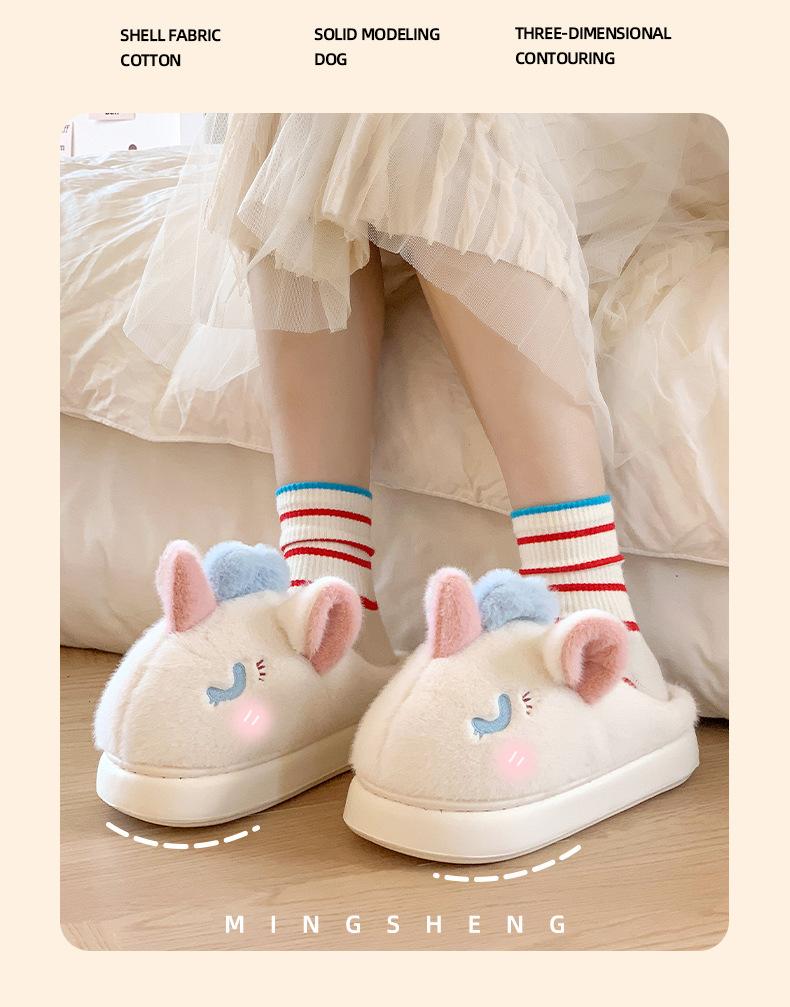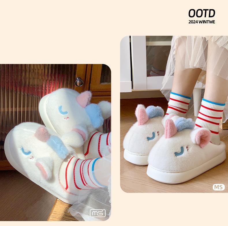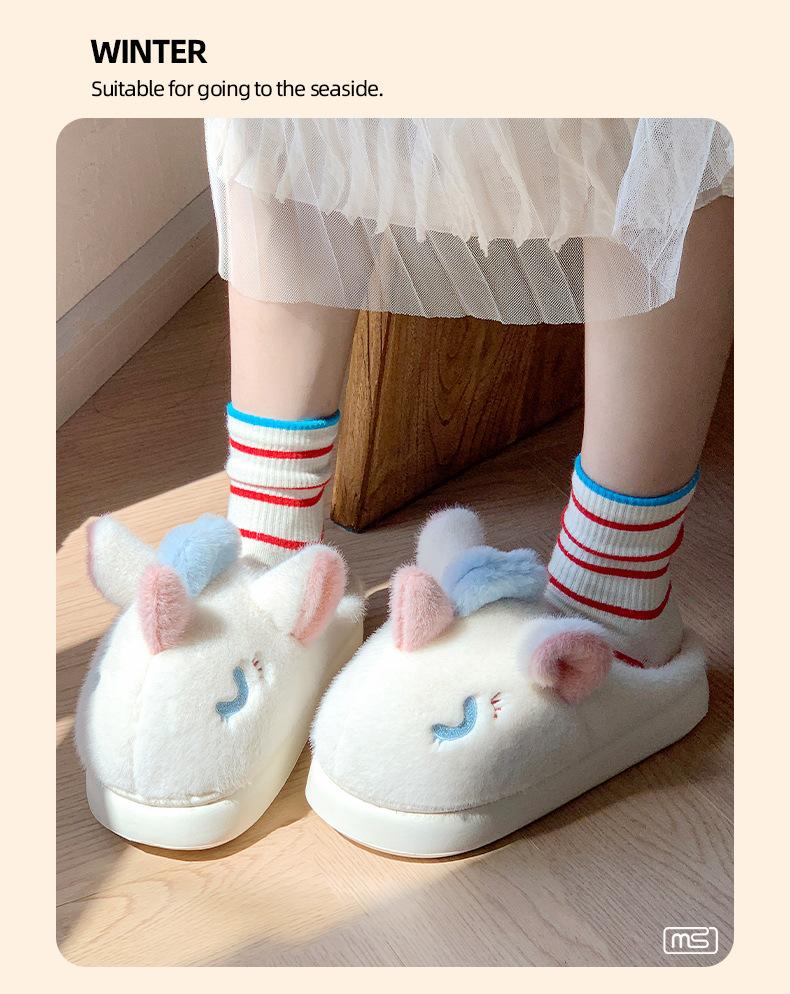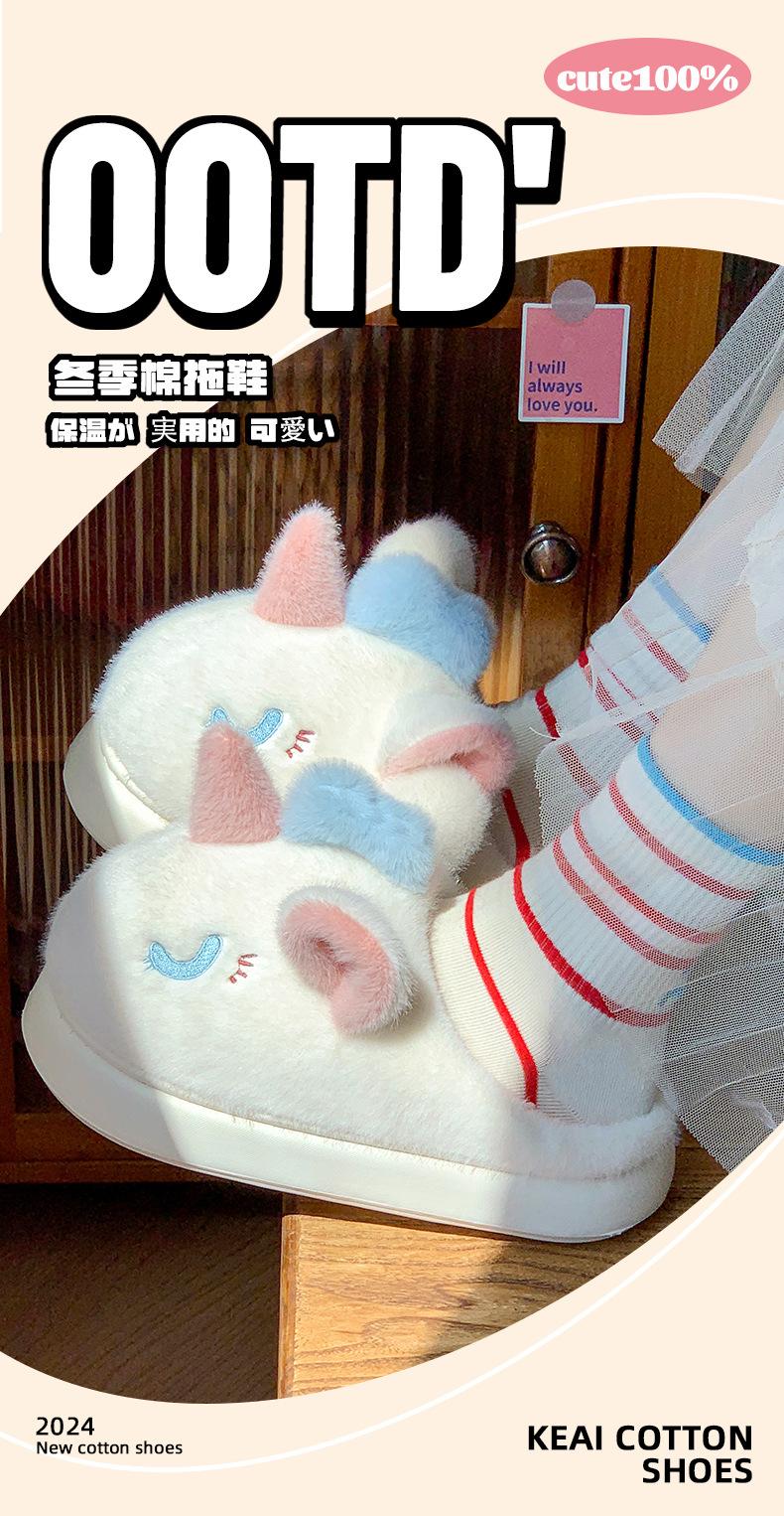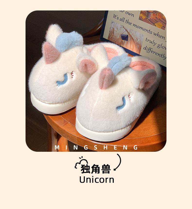 Pantuflas de Algodón de Unicornio para Mujer Otoño/Invierno Cubiertas del Talón para Exterior 2025 Nuevas para Casa Cálidas Esponjosas de Felpa Zapatos de Maternidad para Mujer