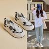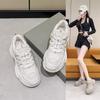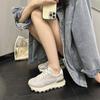 Tenis deportivos y casuales retro de piel genuina suave con bloques de color para mujer, versátiles zapatos de entrenamiento moral con pequeño aumento de altura interior, zapatos blancos de suela gruesa