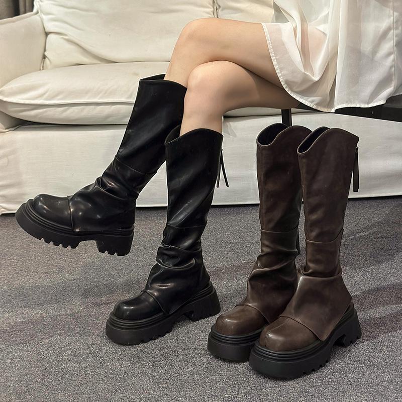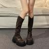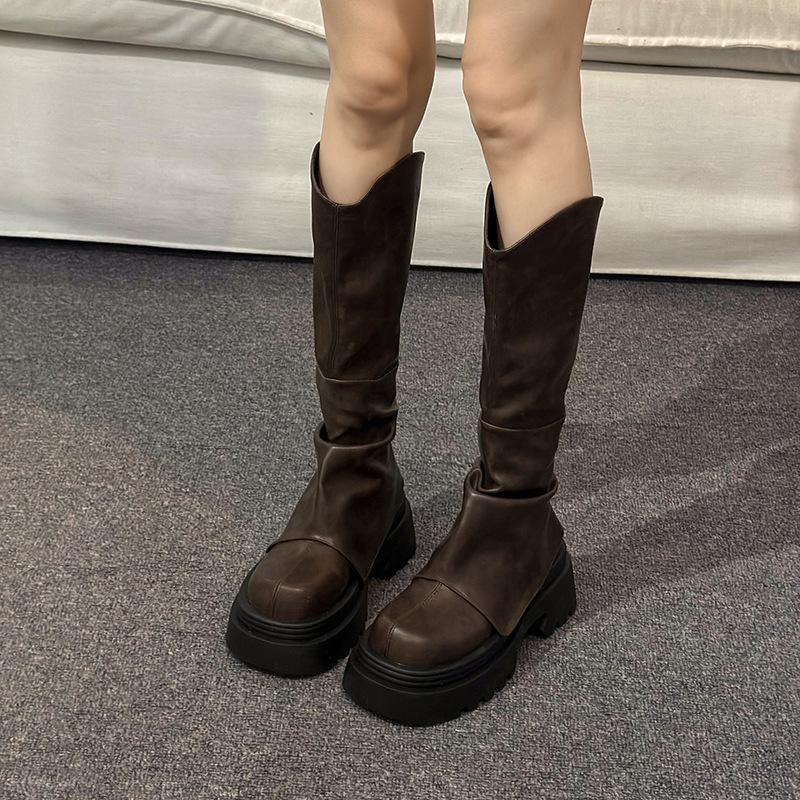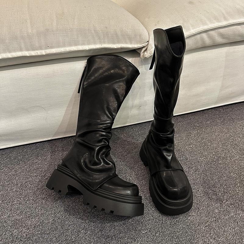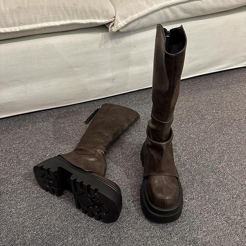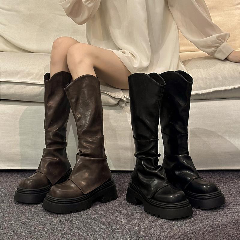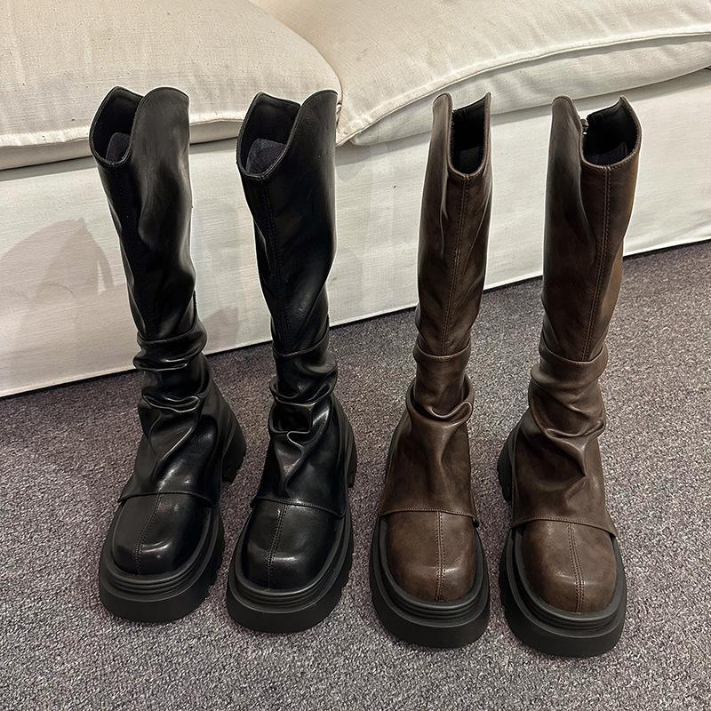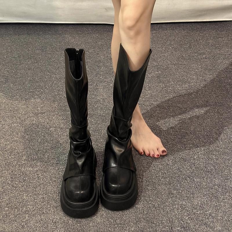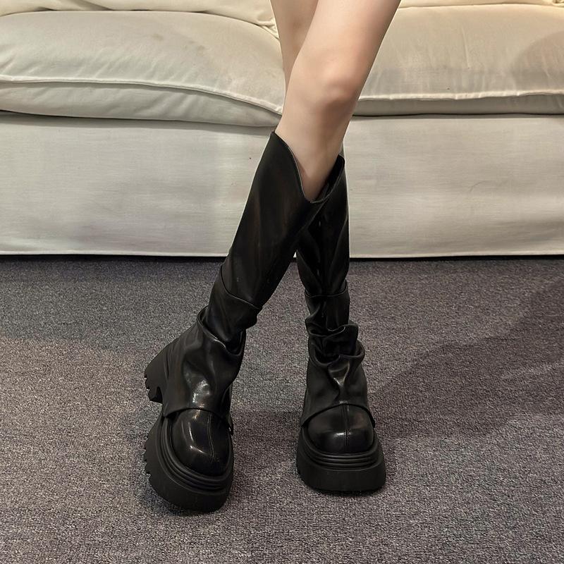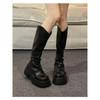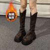 Botas altas hasta la rodilla de suela gruesa para mujer 2025 nuevo otoño e invierno más terciopelo adelgazantes botas altas corte en V botas pantalón botas de caballero holgadas
