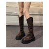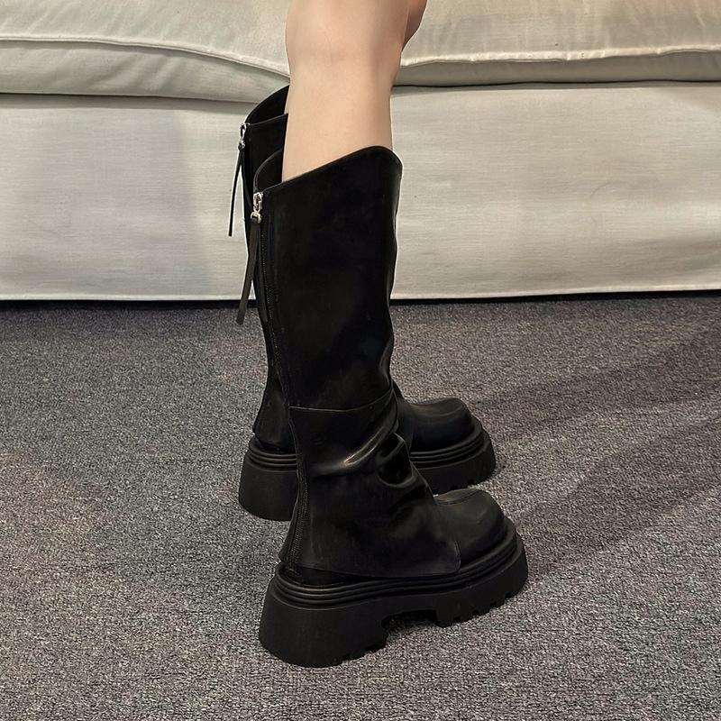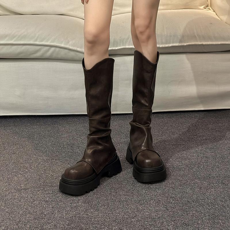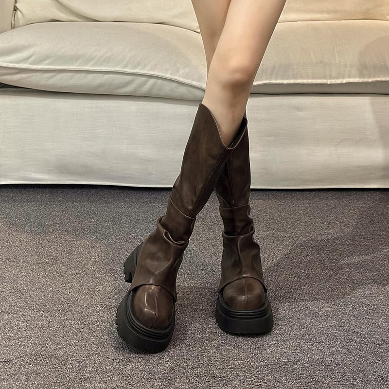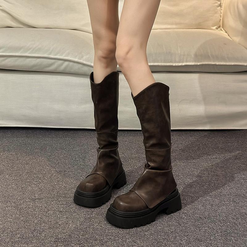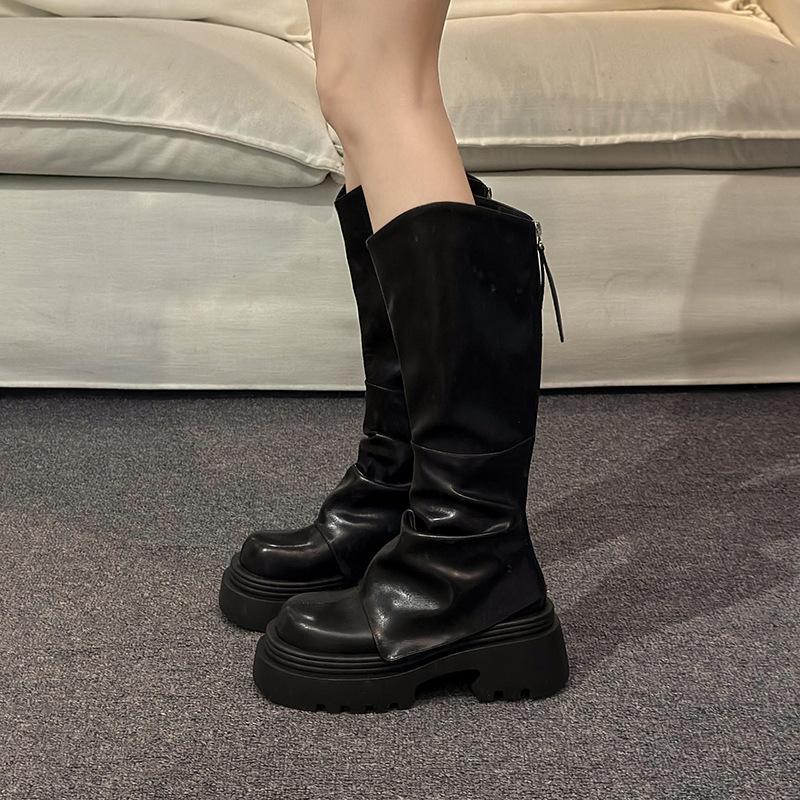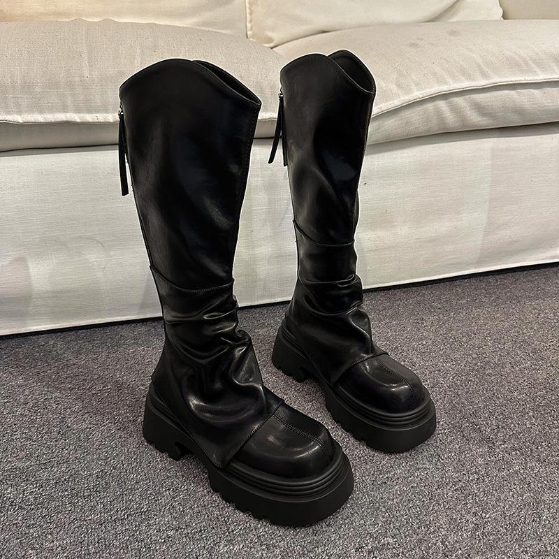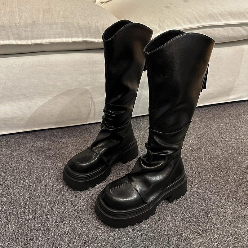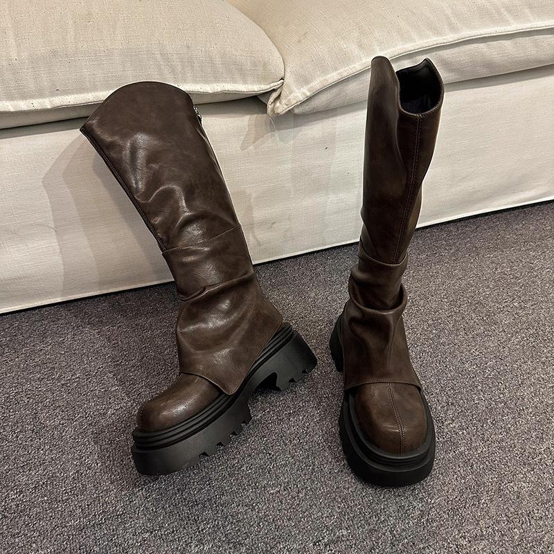 Botas altas hasta la rodilla de suela gruesa para mujer 2025 nuevo otoño e invierno más terciopelo adelgazantes botas altas corte en V botas pantalón botas de caballero holgadas